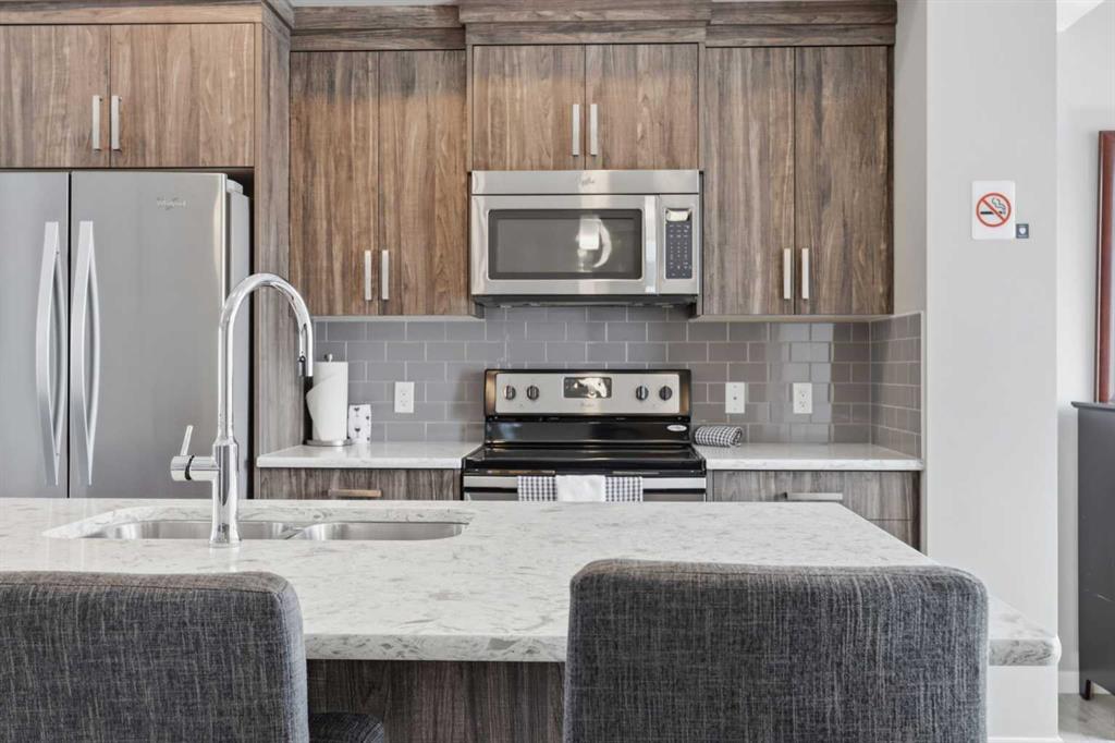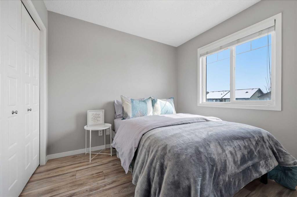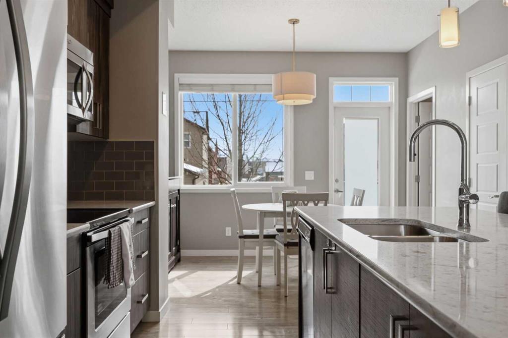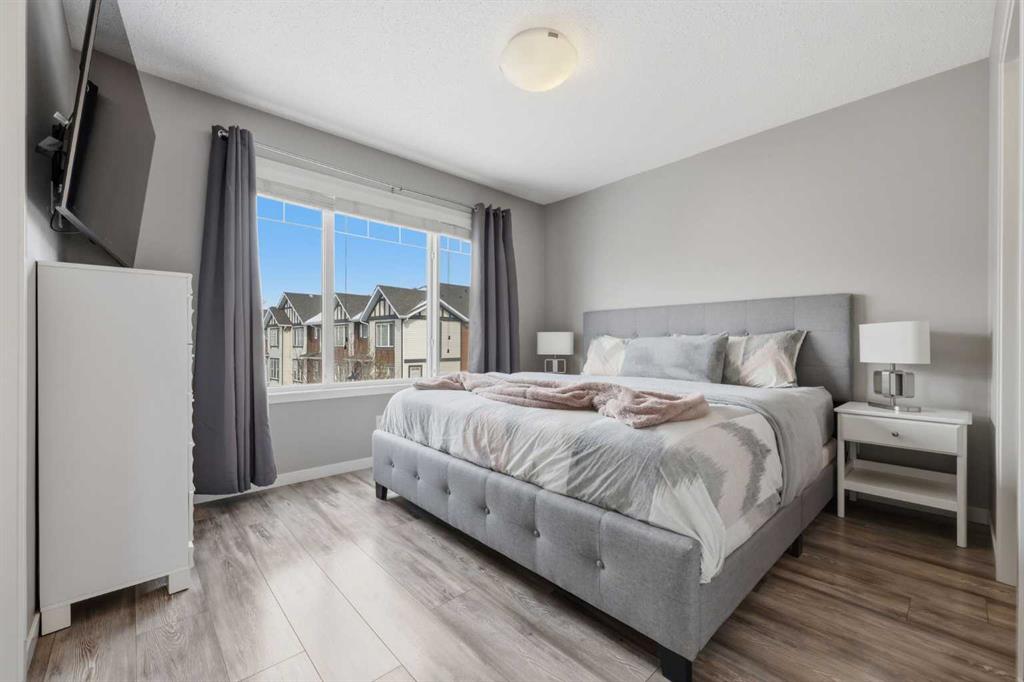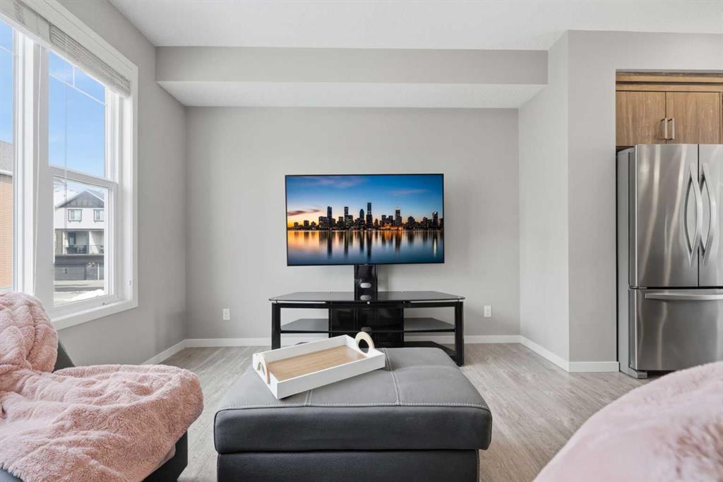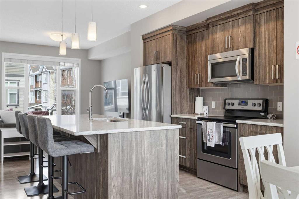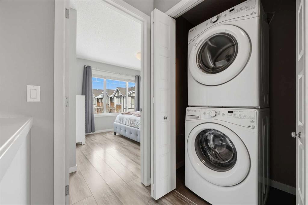 Located in the vibrant and family-oriented community of New Brighton, you’re surrounded by parks, playgrounds, top-rated schools, scenic pathways, and convenient shopping, all just minutes away. This townhome is set up for day-to-day convenience—walking distance to schools of all levels, pathways, parks, ponds, playgrounds, medical offices and shopping. Quick access to Stoney Trail makes getting around the city simple. The community also offers added value with amenities, including tennis courts, a summer camp for kids, fitness/yoga studio space, a splash park, and an outdoor rink. The home has been well-maintained, with thoughtful upgrades throughout. These include a Central A/C unit with smart thermostat, August smart lock and video doorbell. The main floor features 9' ceilings and plenty of natural light. The open-concept layout connects the kitchen and living area, with full-height cabinetry, quartz countertops, stainless steel appliances, and a large island with extra storage. There’s also a convenient half bath on this level. Step out onto the back deck for coffee or easy BBQ access. Upstairs, the primary bedroom comfortably fits a king-sized bed and includes a 3-piece ensuite. Two additional bedrooms offer flexibility—ideal for kids' rooms, home offices or guest space. You’ll also find a full 4-piece bathroom and upper-level laundry. This home includes a tandem attached garage with extra length, driveway parking, nearby visitor stalls, and a paved rear alley for additional options. If you’re looking for a low-maintenance home in a well-connected community, this one checks the boxes.