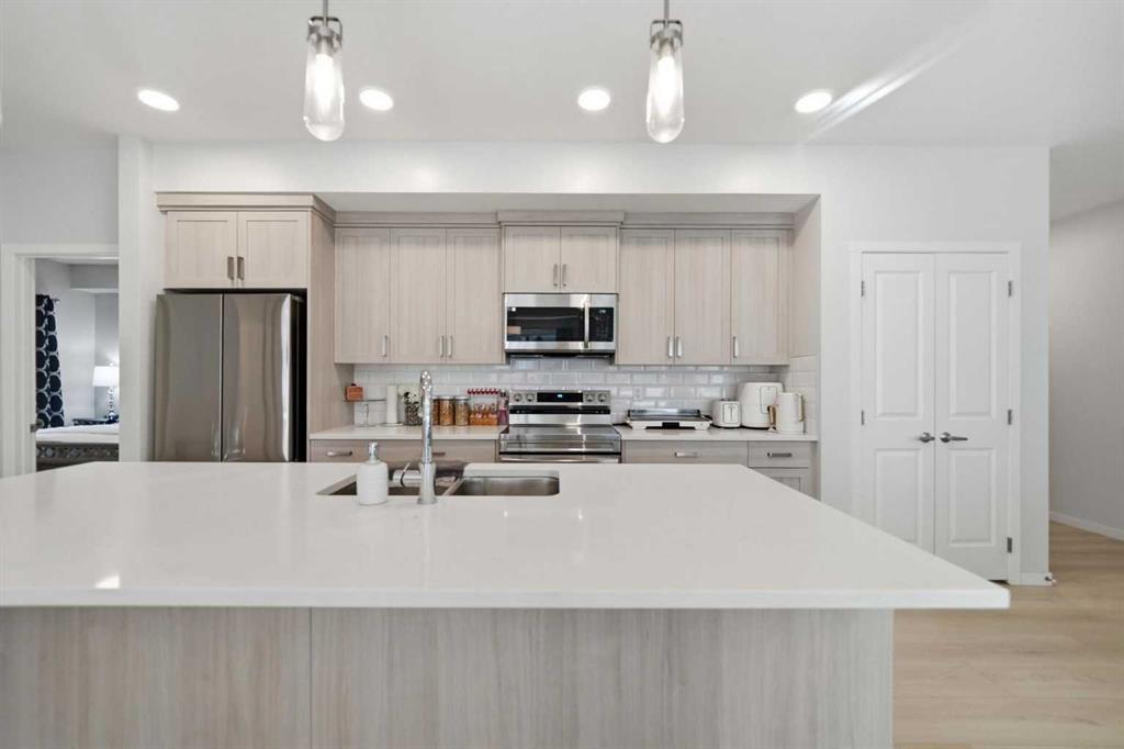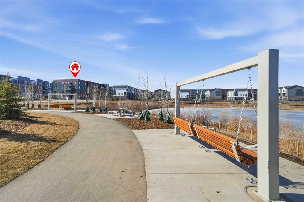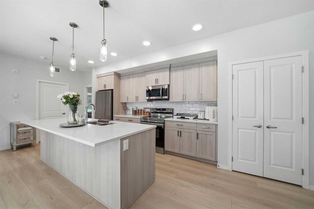No elevator wait, no lobbies – just step right in! This 2-bedroom, 2-bathroom GROUND-FLOOR condo in Seton Serenity offers the kind of everyday convenience that's hard to find. A secondary exterior entrance leads you directly into your unit. Thoughtfully designed – featuring 9FT CEILINGS, AIR CONDITIONING, DURABLE LVP FLOORING throughout, and a bright, open-concept layout. As you step inside, you’re greeted by a spacious foyer with a large closet – perfect for keeping everything organized year round. The living, dining, and kitchen areas flow seamlessly together, creating a comfortable space for both everyday living and entertaining. The kitchen is well-appointed with CEILING-HEIGHT CABINETRY, STAINLESS STEEL APPLIANCES, QUARTZ COUNTERTOPS, and a generously sized PANTRY. The primary bedroom offers a relaxing retreat, complete with a 4-PIECE ENSUITE BATH that leads into a LARGE WALK-IN CLOSET. A second bedroom and full bathroom provide flexibility for guests, a home office, or additional living space. The laundry room also offers a STACKED WASHER AND DRYER adding more in-suite storage. Enjoy plenty of natural light thanks to the SOUTH-FACING EXPOSURE, along with a spacious patio – perfect for your morning coffee or unwinding in the evening. Additional highlights include a TITLED UNDERGROUND PARKING STALL located just steps from the unit, and a conveniently located ASSIGNED STORAGE LOCKER on the ground level. Situated just steps from Seton’s urban district, walking paths, schools, and the South Health Campus, this home offers a great balance of comfort and convenience, ideal for first-time buyers, down-sizers, or investors. Book you private tour today!