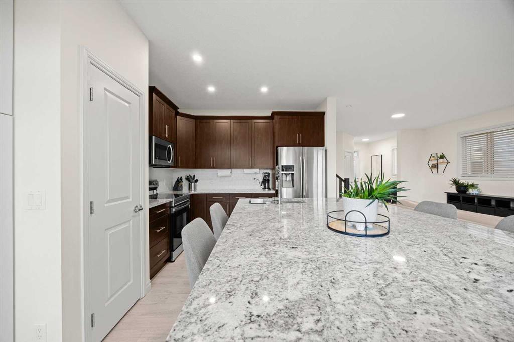 It’s not often a single home checks this many boxes — fully finished WALK-OUT basement, A/C, turf backyard, double attached garage with 220V power, ANDDD a heated single detached garage (15W x 21L x 12H) with alley access. Perfect for extra storage, a man cave, workshop, she-shed or golf simulator. Step inside and you’re immediately greeted by an abundance of natural light flooding the main floor. The kitchen features two-tone cabinetry, a pantry, stainless steel appliances, and a massive island with built-in seating and countertop power, plus direct access to the rear deck. The open-concept layout flows seamlessly into the living room, anchored by a cozy gas fireplace — ideal for everyday living and entertaining. Upstairs is where this home really shines. The spacious primary bedroom offers a functional ensuite with double vanity, soaker tub, and glass shower. The walk-in closet connects directly to the laundry room for next-level convenience. A bonus room separates the primary from the two additional bedrooms and full bathroom, creating a layout that just makes sense. The fully finished walk-out basement adds even more living space with a third full bathroom, large family room with wet bar, generous storage, and direct access to the backyard — complete with turf, dog run, and the detached heated garage. Located right across from park/green space, and minutes to amenities like Costco, Home Depot and Save On Foods - this one is hard to beat!