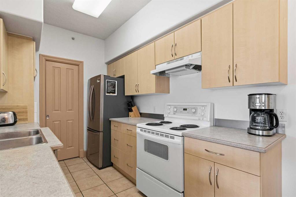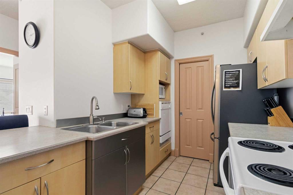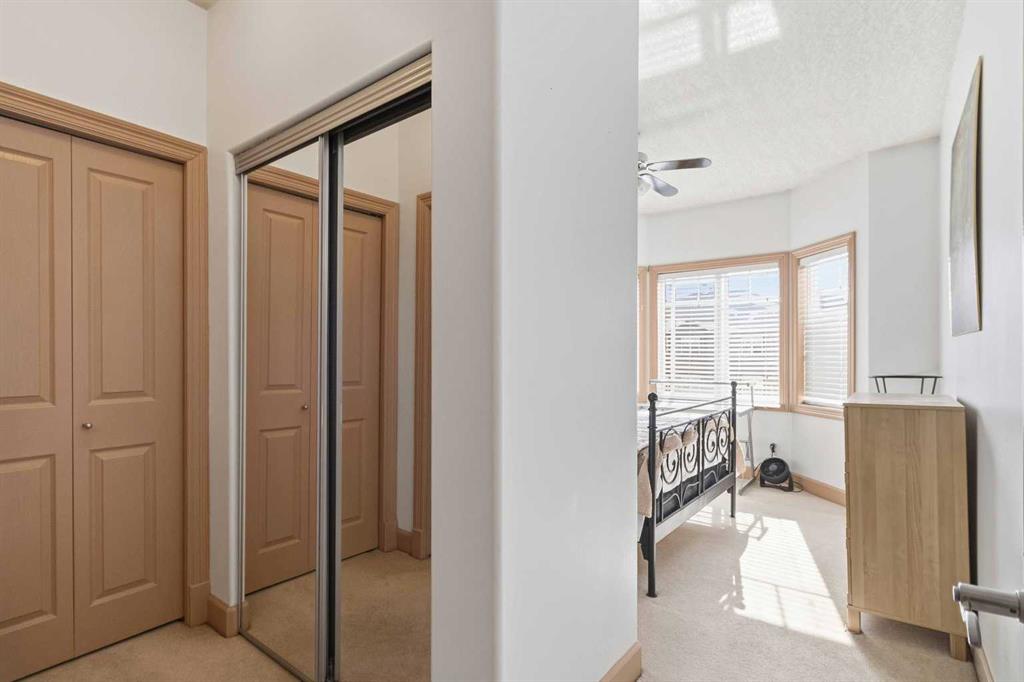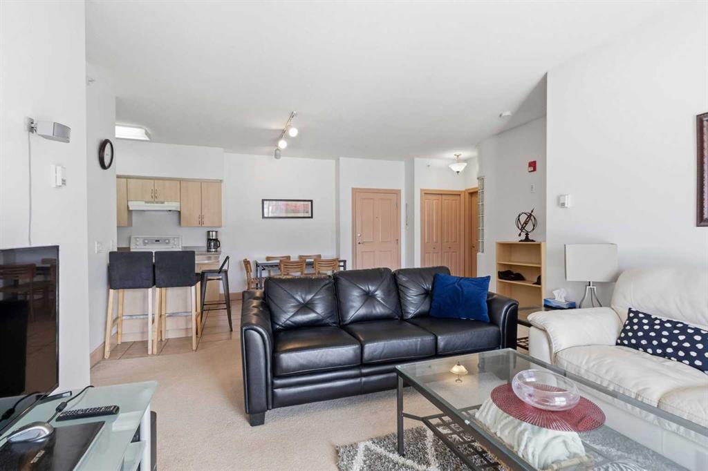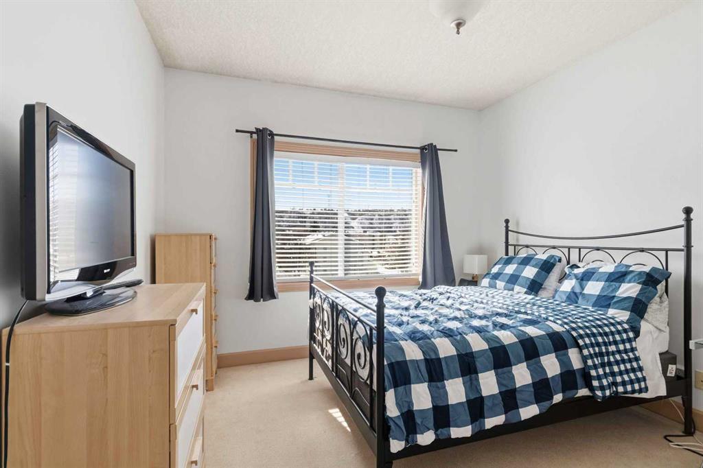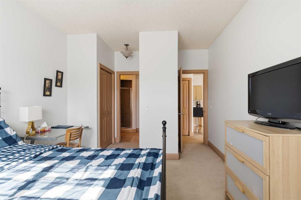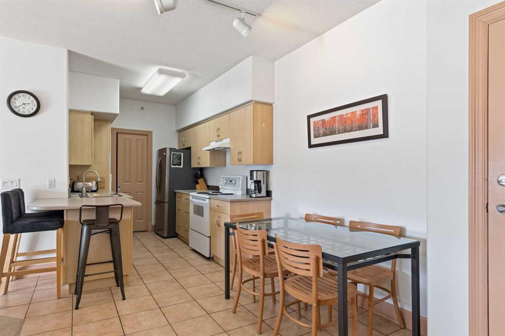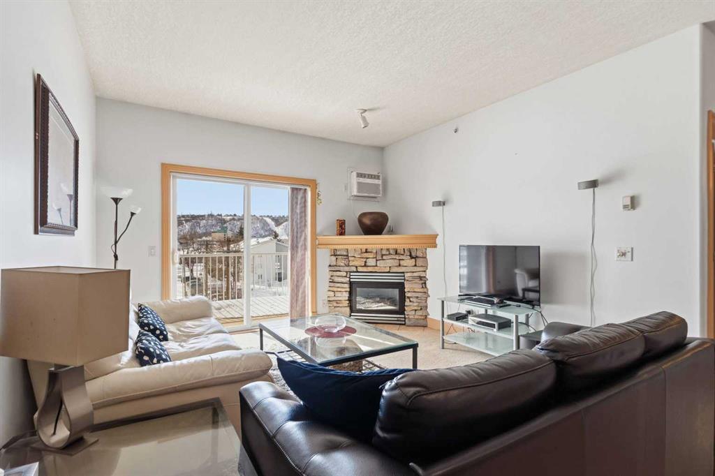 Welcome to this spacious TOP FLOOR 2-bedroom, 2-bathroom condo offering comfort, style, and convenience! This bright and well-designed unit features an open-concept layout filled with natural light, highlighted by a generous living room complete with a cozy corner fireplace and a wall A/C unit (new in 2025) with in-floor heat for the winter months. The kitchen and dining area flow seamlessly together, boasting ample counter space, an eat-up bar, and a convenient pantry - perfect for both everyday living and entertaining. Enjoy the added functionality of a dedicated laundry room with a stackable washer and dryer plus extra storage. The large primary bedroom offers an L-shaped closet and a private ensuite featuring both a soaker tub and a separate stand-up shower. On the opposite side of the unit, the second bedroom includes a walk-through closet and direct access to the main bathroom with a shower - ideal for guests or roommates. Step outside to your private balcony to enjoy the long summer evenings and don’t forget to take advantage of the included heated underground parking stall. As an added bonus, the furniture is negotiable. Located just steps from scenic parks, golf, and an extensive network of biking and hiking trails, this home also offers quick access to shopping, dining, and other amenities. Monthly condo fees of $643.93 cover a comprehensive list of services, including heat, water, gas, professional management, reserve fund contributions, and more - ensuring a low-maintenance lifestyle. Don’t miss this incredible opportunity to own in a highly sought-after building!