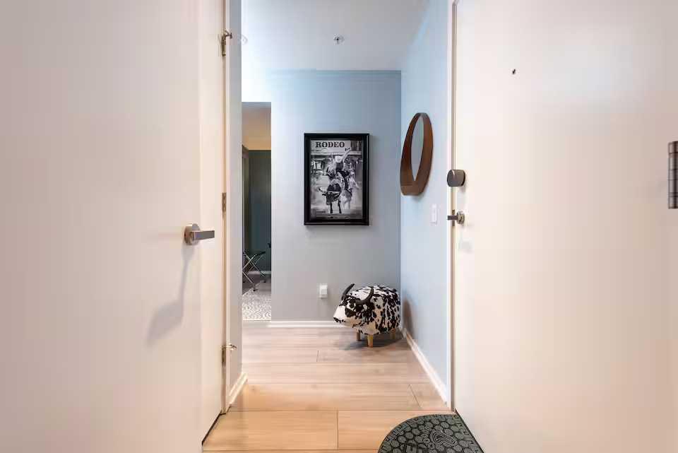 Welcome to an exceptional opportunity to own a turn-key, fully furnished downtown condo offering the perfect blend of style and functionality. Ideally situated in the heart of Calgary, this beautifully appointed residence places you just steps from vibrant dining, shopping, transit, and the city’s most sought-after amenities, delivering an unbeatable urban lifestyle. Thoughtfully designed with both comfort and versatility in mind, the open-concept layout is complemented by contemporary finishes and an abundance of natural light. The unit comes fully outfitted with all furniture and furnishings, making it completely move-in ready. A standout feature is the multi-functional den equipped with a built-in Murphy bed, effortlessly transforming the space into an additional sleeping area—perfect for maximizing both livability and flexibility. The well-appointed kitchen flows seamlessly into the living and dining areas, creating an inviting space for entertaining or relaxing after a day in the city. Additional highlights include a brand new in-suite washer and dryer, adding everyday convenience and value, along with access to sought-after building amenities (varies by building, such as fitness or pool where applicable). This is a rare opportunity to own a fully equipped, professionally curated condo in a prime downtown location.