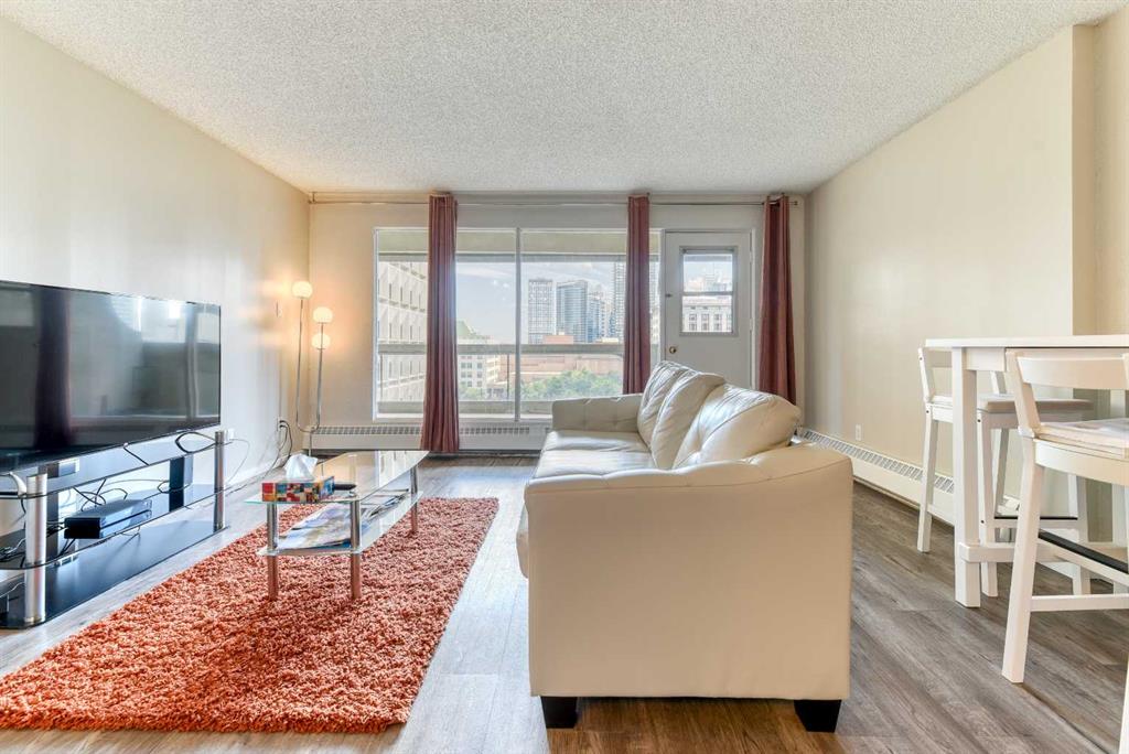 Newly renovated ***This downtown one-bedroom condo is a great find. South-facing balcony with great view towards the Calgary Tower. Rocky Mountain Court . close to all the amenities of downtown, parks, steps to the LRT for easy access everywhere in the city. Walking distance to the Bow River and Princess Island Park. Concrete building. Open concept from the kitchen to the living room area. The kitchen features lots of cabinet space, 4 pce bath and a large storage room in the unit. Assigned underground parking stall. Enjoy the sauna, exercise room, common area outdoor patio, indoor post boxes, and 3 elevators. Condo fees include everything except electricity. Great for investor or first-time buyer that works downtown. This is a must to see.