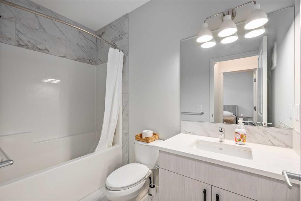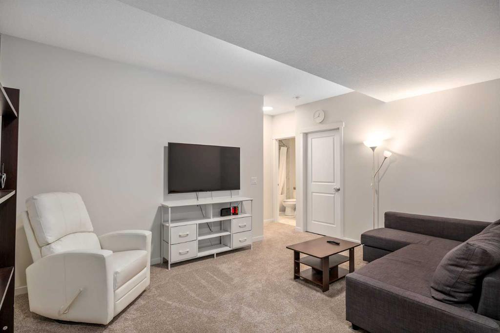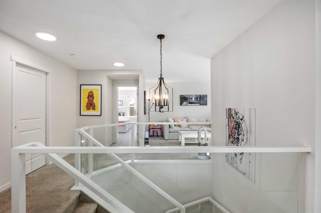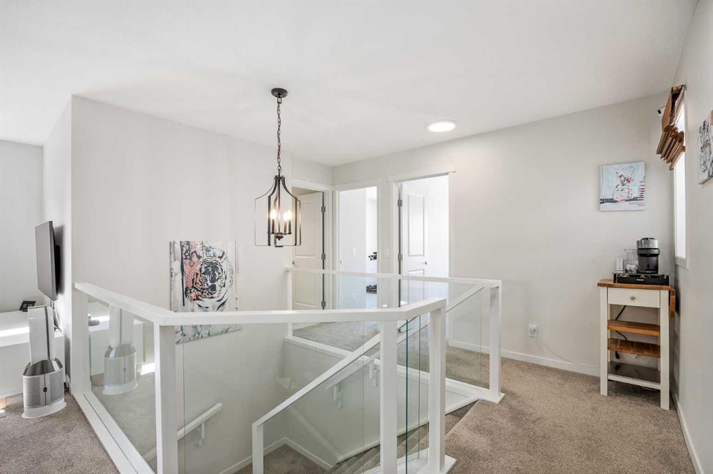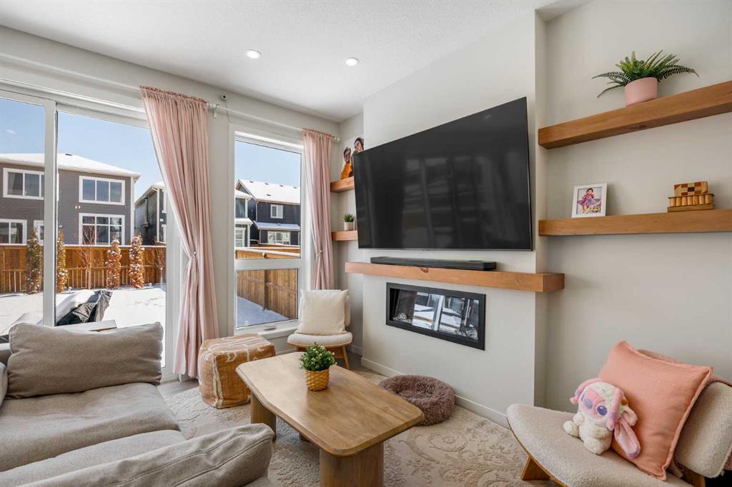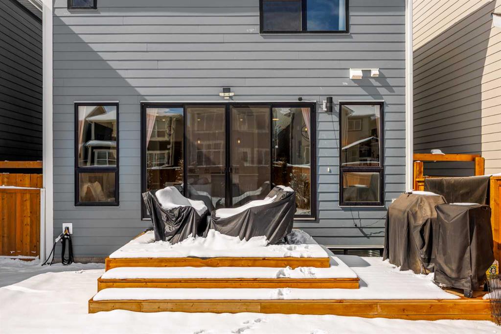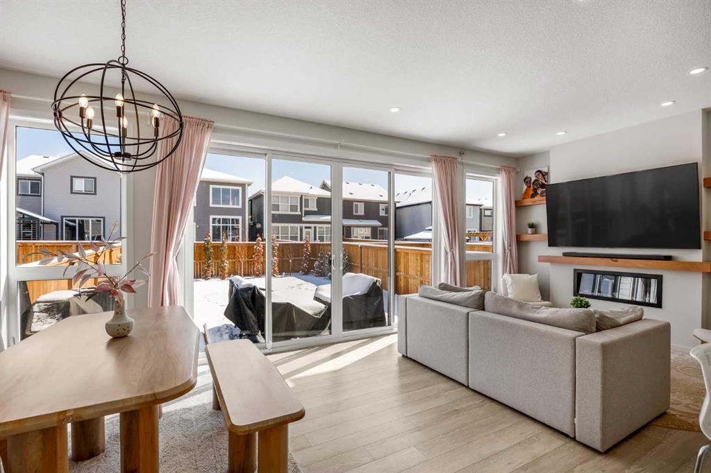 Welcome to this beautifully finished, fully developed home in Mahogany, offering over 1,700 sq ft above grade plus a builder finished basement for a truly turnkey opportunity. Thoughtfully designed in warm, modern tones, this home stands out with an airy Scandinavian inspired feel, a functional family layout, and one of its most compelling features: an exceptional indoor-outdoor living experience that is rarely found in the area. From the moment you step inside, the home makes a strong first impression with a spacious front entry, complete with a front closet and convenient access to both the upper and lower levels. As you move into the heart of the home, the layout opens up beautifully with a central kitchen that anchors the space while overlooking the back dining area and living room, creating the kind of connected main floor that works just as well for daily life as it does for entertaining. The kitchen is a true showpiece, finished with stylish white oak-inspired cabinetry, black hardware, raised cabinetry to the bulkhead, stainless steel appliances, a gas stove, elongated white subway tile backsplash, and white quartz counters with soft grey veining. A large central island offers plenty of prep space and casual seating, while the walk-through pantry connects seamlessly to the back mudroom and double attached garage. At the rear of the home, the living and dining spaces are filled with natural light through the wall to wall windows and patio doors, designed to make the most of the backyard setting (but don't worry the central A/C will keep you cool all summer long). The living room is warm and inviting, highlighted by an electric fireplace with a wood mantle and built-in wood shelving. The dining area is generously sized with a modern light fixture above, while dual central sliding patio doors create a standout feature, opening the home to the deck and oversized backyard beyond. With more outdoor space than many homes in the area and trees along the back, this setting creates a rare and highly desirable indoor-outdoor lifestyle. Upstairs, a central bonus room with a transom window creates a bright and versatile second living space, while glass railing wraps the upper level and enhances the open feel throughout. The primary suite is a relaxing retreat with a walk-in closet complete with organizers and a beautifully finished 5 piece ensuite featuring dual sinks, a soaker tub, a standalone shower, and marble look vinyl tile flooring. Two additional bedrooms, a full 4 piece bathroom, and a separate laundry room complete the upper level. The fully finished basement adds even more value, offering a central rec room, a full bedroom, a 4-piece bathroom, and a mechanical room that still provides excellent storage. Located close to two playgrounds and in one of Calgary’s most sought-after lake communities, Mahogany offers an unmatched lifestyle with lake access, beaches, pathways, parks, schools, shops, and restaurants all nearby.