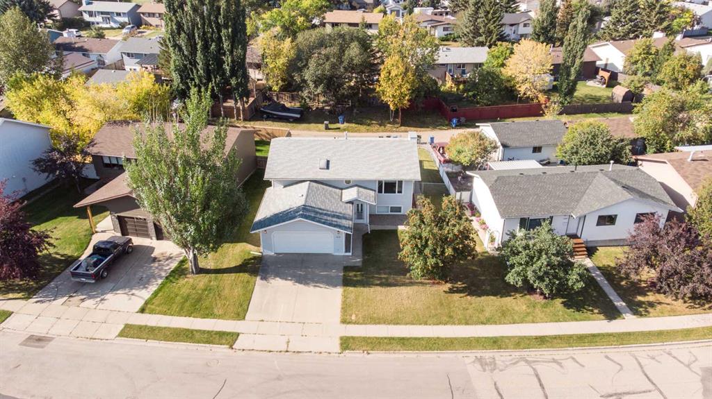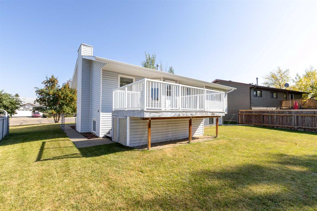 This well-maintained Bi-Level offers the flexibility and convenience that both downsizers and families will appreciate. Located in a quiet, established area close to Raspberry Park, schools, and walking paths, it’s a peaceful spot that’s still minutes from Innisfail’s shopping, restaurants, and quick highway access for an easy commute to Red Deer or Calgary. Inside, the bright and open Kitchen features a large eat-in Dining Area and oversized windows that overlook the backyard, filling the space with natural light. The main floor offers 2 Bedrooms plus a Den/Office, perfect for a home workspace or hobby room, along with 2 Bathrooms, including a private 3 Piece Ensuite off the Primary Suite. This home has flexible living areas with the lower level that could be ideal for shared family households or for entertaining, with a spacious Rec Room, a handy Kitchenette, 2 additional Bedrooms, a 3 Piece Bath, and a dedicated Laundry Room and tons of storage space. The fully-fenced backyard offers back-lane access, making it easy to park an RV, add a garden, or simply enjoy the private outdoor space. Nearby amenities include schools, playgrounds, grocery stores, coffee shops, and several of Innisfail’s recreation areas – arena, curling rink, ball diamonds etc., all within a short drive. A quiet location, thoughtful layout, and plenty of storage make this home a smart choice for those wanting comfort and flexibility in a family-friendly neighbourhood. Some photos have been virtually staged.