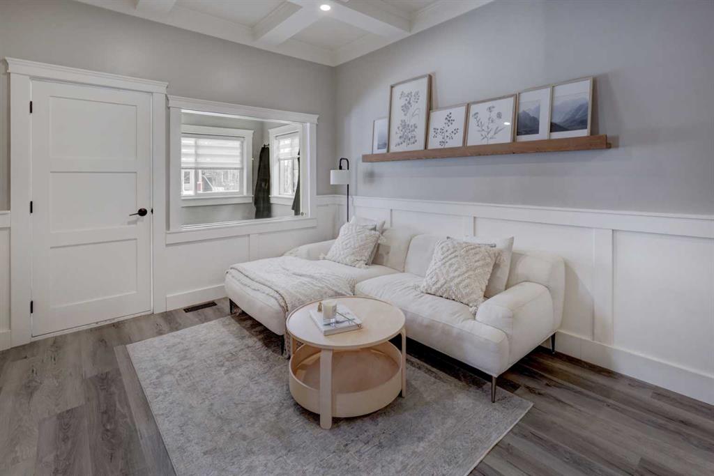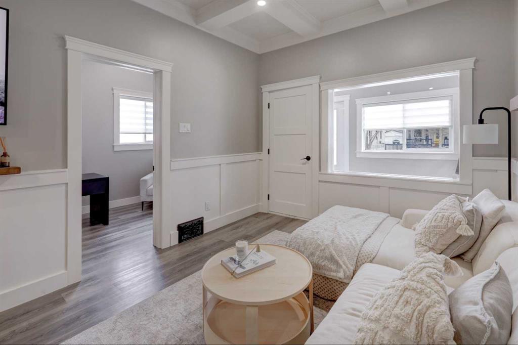 Cherished for over a century, this truly unique home seamlessly blends historic character with modern upgrades and conveniences. The residence has been lovingly updated ensuring the best elements of its past remain preserved while introducing features that enhance comfort and functionality. The kitchen stands out as a focal point, offering dramatic floor-to-ceiling, two-tone custom cabinetry, quartz countertops, and a stainless steel appliance package that includes a stunning gas range. Subway tile accents the space, complemented by a convenient pantry and dedicated microwave/appliance coffee station for added organization and enjoyment. Easy-care vinyl plank flooring, updated paint, and trim further brighten the open plan, making every square foot count. The living/dining area features a built-in library, wainscoting, and a coffered ceiling—details reminiscent of days gone by that contribute to the home’s enduring charm. Natural light streams through updated windows, highlighting the high ceilings. Modern touches such as pot lights and ceiling fans have been added for comfort and ambience. The primary bedroom includes a cheater door to an exquisitely renovated bathroom showcasing beautiful tile flooring, a refinished clawfoot tub, tiled shower, and a custom vanity with quartz countertop. The second bedroom, currently serving as an office, offers a custom closet with a barn door closure. The porch has been updated with electric heat, lighting, and outlets, making it a flexible space to personalize according to your lifestyle. Additional upgrades include a 60-gallon hot water tank, Lennox high-efficiency furnace, updated shingles, and eavestroughs, providing peace of mind. In 2023, an oversized, fully insulated, heated, and fully finished double detached garage (22’ 2” x 23’3”) was constructed with all required permits. The garage features 100-amp service, is pre-wired and plumbed for a gas heater, and offers extra electric outlets—including a switched plug facing the street for block heaters or chargers. This space is ideal for car enthusiasts, adding unexpected value and convenience. The home is situated on a picturesque, tree-lined street in one of Calgary’s oldest and most iconic communities, known for its walkability and bike-friendliness. Whether you enjoy walks along the River, peaceful moments at the Inglewood Bird Sanctuary, or the vibrant atmosphere of local shops and restaurants, you will find it nearby. For those who desire the excitement of downtown living without the constraints of apartment life, this home is an ideal choice. This substantially updated home, rich in character and modern amenities, offers a rare opportunity in a sought-after Calgary neighborhood. Book your private viewing with your favorite agent and discover the unique charm and value of this special property.