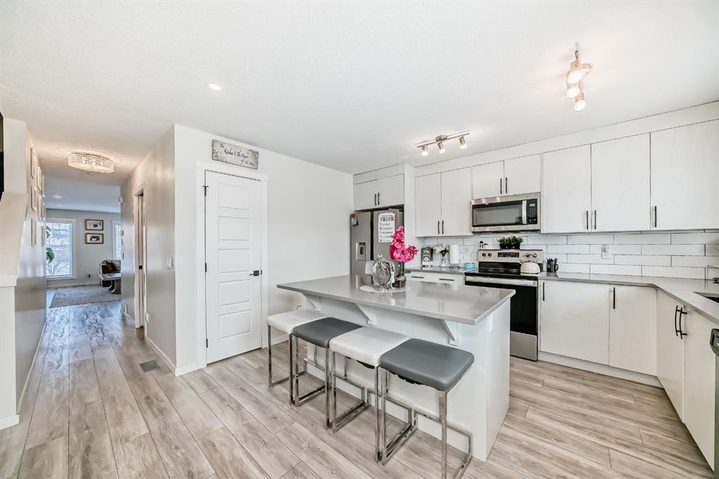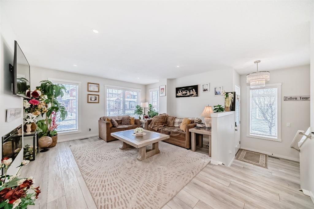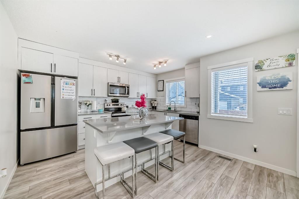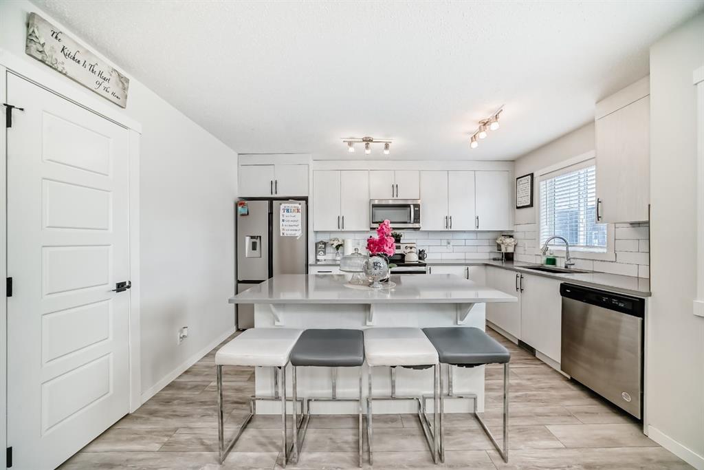 Step into the vibrant lifestyle of Chinook Gate, where community, convenience, and comfort come together perfectly. This family-friendly neighborhood offers everything you need just steps from your door — beautiful parks, scenic pathways, schools, and everyday shopping — making it an ideal place to call home. Welcome to a stunning, sun-filled **end-unit townhome** designed for modern living. This home immediately impresses with a dramatic **lofted entryway** and expansive west-facing windows that bathe the space in natural light. Just a few steps up, the main living area unfolds into a bright, open-concept layout with seamless sightlines from front to back. At the heart of the home is a gourmet kitchen featuring a large central island, sleek quartz countertops, and stylish modern finishes — the perfect space for cooking, hosting, and gathering with family and friends. The adjoining dining area and inviting living room, complete with a cozy fireplace, create a warm and welcoming atmosphere for both everyday living and entertaining. Step outside to your **private, landscaped backyard**, ideal for relaxing summer evenings or weekend get-togethers. Upstairs, you’ll find **three generously sized bedrooms**, including a serene primary retreat with its own private ensuite. The fully finished basement expands your living space even further, offering a **fourth bedroom**, a full bathroom, and a versatile recreation room — perfect for guests, a home gym, or movie nights. With **3.5 bathrooms**, thoughtful design throughout, and the ease of **maintenance-free living**, this home checks every box. Located just minutes from all the amenities of **Airdrie**, this is more than a home — it’s a lifestyle upgrade. ?? **Don’t miss your opportunity — book your private showing today!**