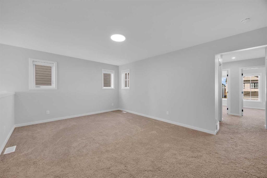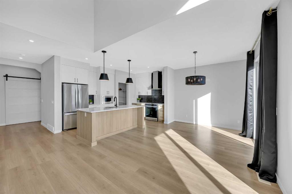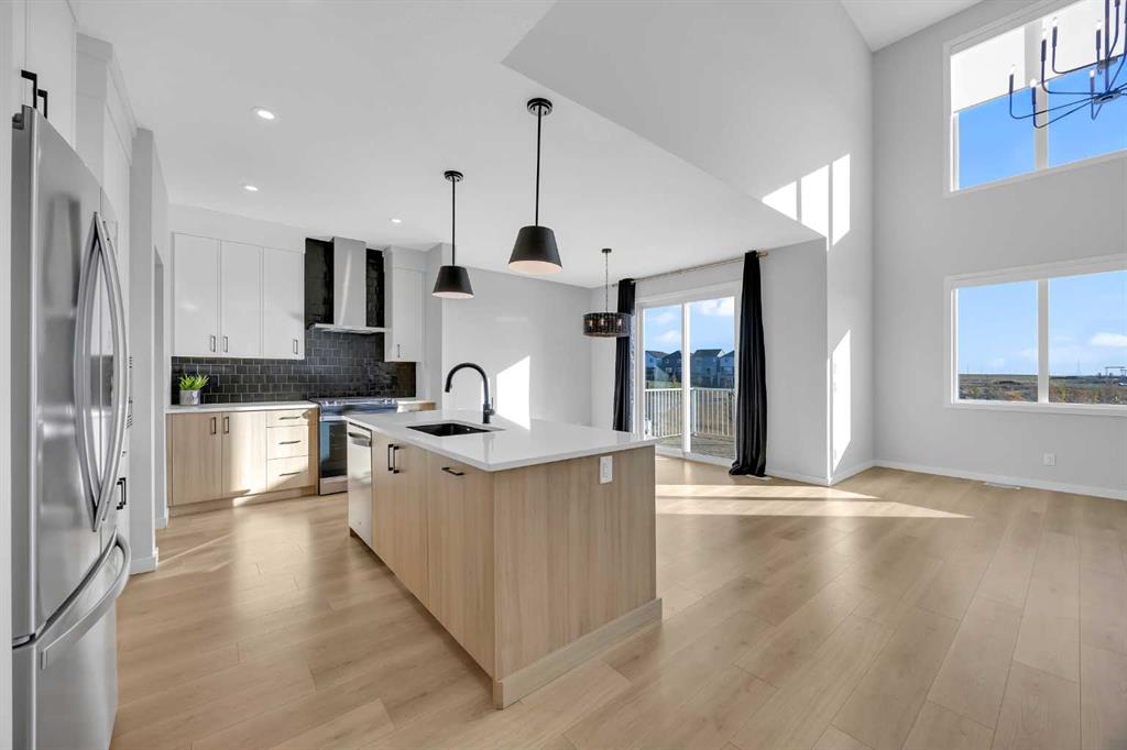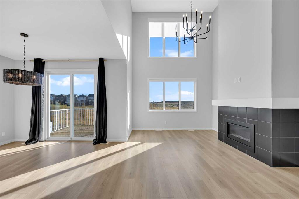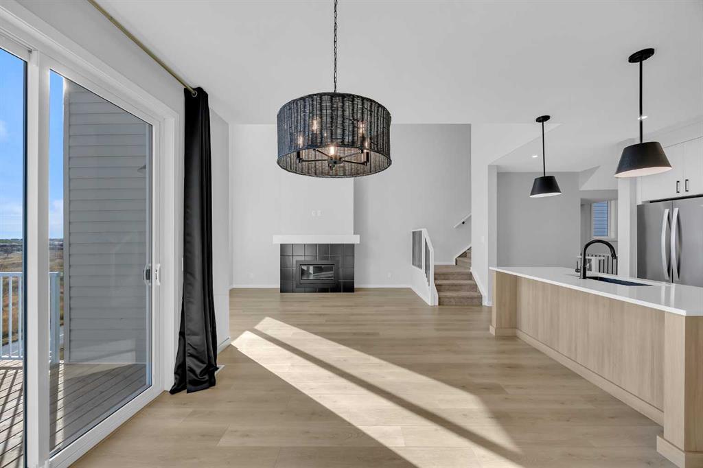 Rangeview community of southeast Calgary. This stunning walkout Dalia by Baywest Homes backs onto a serene pond with scenic pathways and features a large deck - perfect for relaxing or entertaining. Boasting 2,322 sq. ft., the main floor showcases a rare open-to-below layout with soaring ceilings, tall windows, and abundant natural light. The chef-inspired kitchen includes a walk-through pantry and flows seamlessly into the dining and living areas with a gas fireplace. High-end blinds throughout add both convenience and modern comfort. Upstairs, the primary suite impresses with a walk-in closet and a spa-like ensuite featuring a soaker tub, double vanity, and separate shower. Two additional bedrooms, a central bonus room, and a conveniently located laundry room complete the upper level. The garage is wired for an EV charger and offers ample shelving for extra storage and organization. Enjoy easy access to Deerfoot Trail and Stoney Trail, just minutes from the YMCA, South Health Campus, shopping, and dining. Rangeview, Alberta’s only garden-to-table community, offers shared gardens, a greenhouse, and an urban village, creating a truly unique, amenity-rich lifestyle.