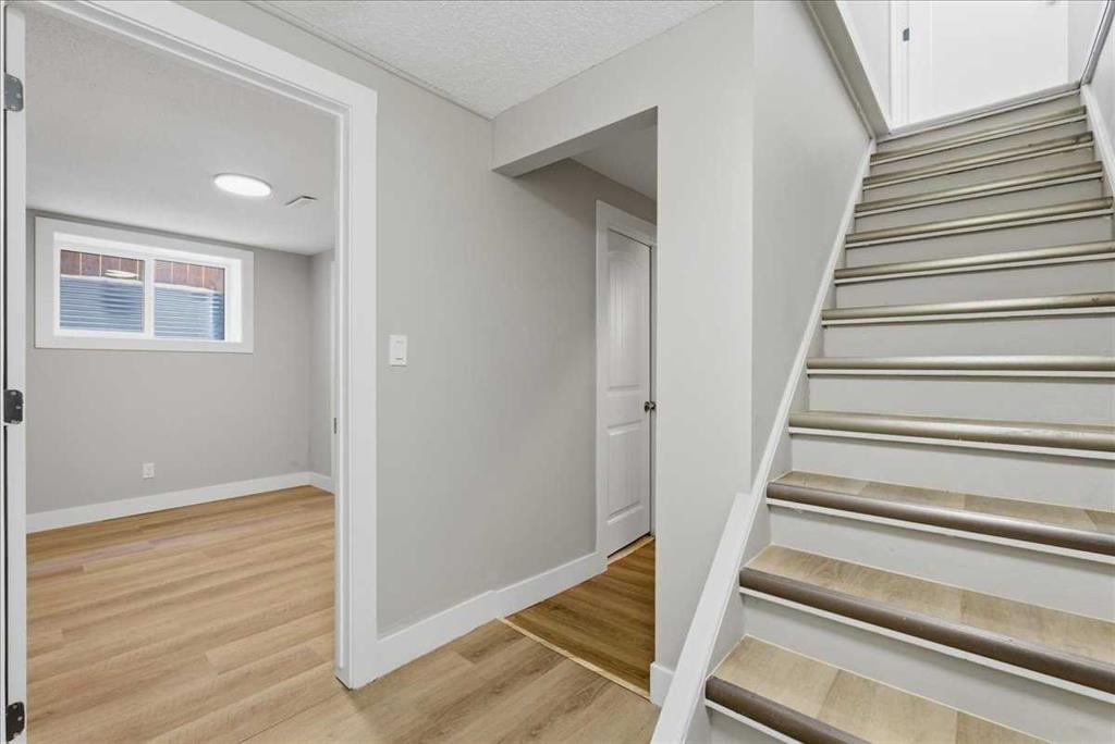 FULLY RENOVATED HOME | ILLEGAL BASEMENT SUITE | NEW FURNACE & WINDOWS | BACKING ONTO GREEN SPACE — Thoughtful updates throughout this home introduce a fresh, modern feel while maintaining everyday functionality for growing households or multi-generational living. A completely separate illegal basement suite with private entry and its own laundry enhances flexibility for extended family or future possibilities. A charming front porch welcomes guests while setting the tone for quiet morning coffee or relaxed evenings unwinding. Durable LVP flooring stretches across the main level, complemented by added recessed lighting that brightens each space beautifully. Effortlessly, prepare meals in the beautifully renovated kitchen showcasing stone countertops, stainless steel appliances, sleek cabinetry and a stylish backsplash, all arranged for both efficiency and visual appeal. Gather in the adjacent dining area where bayed windows frame the space and encourage connection over shared meals. Relax comfortably in the living area where a gas fireplace anchors the room and custom built-ins add both character and practical storage. Oversized windows paired with patio sliders draw in natural light while creating a seamless transition to the backyard for simplified indoor and outdoor living. A refreshed powder room completes the main level with clean, modern finishes. Head upstairs where LVP flooring continues without any carpet, supporting easy maintenance and a cohesive look. Enjoy the convenience of upper laundry while 3 bright bedrooms accommodate family or guests with ease. Refresh daily routines in the updated 4-piece bathroom finished with contemporary styling. Discover additional living space downstairs where the illegal suite presents an open layout, full kitchen with full-height cabinetry, separate laundry, a spacious bedroom and a modern 3-piece bathroom, all designed for comfort and independence. Step outside to a west-facing backyard where mature landscaping surrounds a fully fenced yard, offering ample room for kids and pets to play. Backing directly onto green space with sports fields and an outdoor skating rink extends recreational options while eliminating rear neighbours. Take advantage of off-street parking via the front driveway for added convenience. Situated in the established and family-oriented community of Abbeydale, this location places schools, parks, pathways, transit, tennis courts and a vibrant community centre within easy reach, while nearby shops and major routes simplify daily errands and commuting.