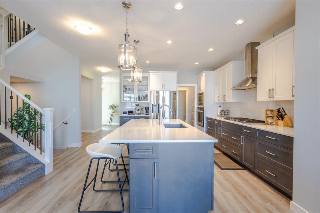 Welcome to this beautifully maintained and thoughtfully designed home, offering a perfect blend of comfort, style, and functionality for modern living. From the moment you step inside, you’re greeted by a versatile nook just off the front entrance—ideal for a home office, children’s play area, or cozy reading space tailored to your lifestyle needs. The main floor features a bright and open layout with the heart of the home boasting a stunning kitchen, complete with sleek quartz countertops, stainless steel appliances, and a gas range cooktop that will delight any home chef. A large central island with breakfast bar seating provides the perfect gathering spot for family and friends, while the walk-through pantry ensures ample storage and seamless organization. Adjacent to the kitchen, the eating nook is filled with natural light and offers direct access to the back deck—perfect for morning coffee or summer barbecues. The living room flows effortlessly from the kitchen and nook, creating an inviting space for entertaining or relaxing. Here, you’ll find a charming electric fireplace with a wooden mantle, adding warmth and charm to the space. Upstairs, you’ll discover a spacious bonus room, ideal for a secondary family room, media space, or quiet retreat. Two generously sized bedrooms share a well-appointed 4-piece bathroom, while the primary suite serves as a private oasis. This impressive retreat features a luxurious 5-piece ensuite with dual vanities, a stand-alone shower, and a deep soaking tub, along with a well-sized walk-in closet. The convenience of an upper-level laundry room adds to the home’s thoughtful design. The basement offers incredible potential for future development, boasting large windows that bring in natural light, 9-foot ceilings, and walk-out access to a lower-level patio—perfect for creating additional living space tailored to your needs. Outside, the fully fenced backyard provides both privacy and scenic views, as it backs directly onto a peaceful walking path—ideal for outdoor enthusiasts and those who enjoy a tranquil setting. Further enhanced by central air conditioning for year-round comfort and the added convenience of a water softener system. This home truly combines elegance, practicality, and future potential in a desirable setting—ready for you to move in and make it your own.