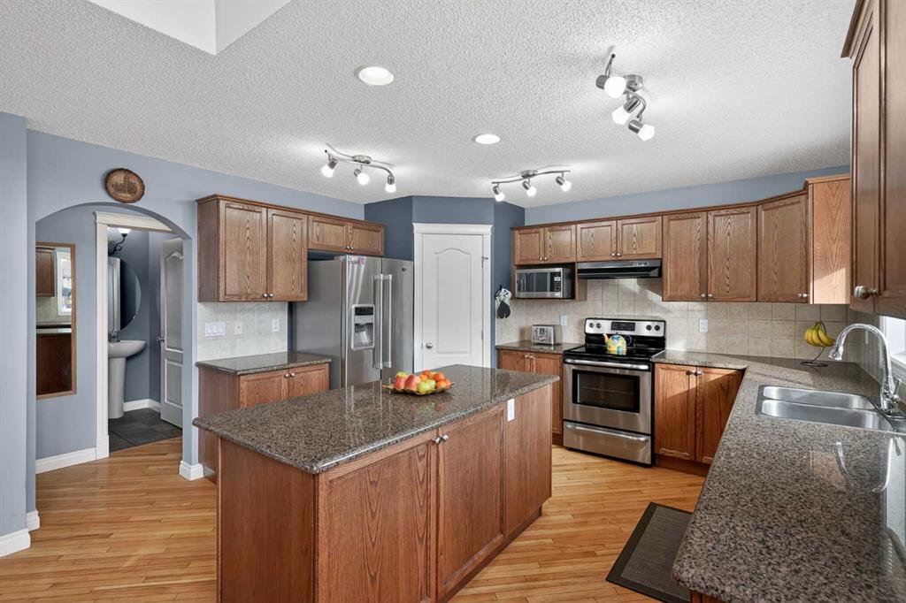 Welcome to this beautifully maintained home in the heart of Chestermere, offering over 3,000 sq ft of thoughtfully designed living space just a short 10-minute walk to the lake. Featuring 5 bedrooms, 3 full bathrooms, and 1 half bath, this home is perfect for growing families or multi-generational living. The bright and functional layout is highlighted by a stunning open-to-below dining area that fills the space with natural light, while the main floor flows seamlessly between the living room and a well-appointed kitchen with ample cabinetry and counter space, ideal for everyday living and entertaining. Upstairs, you’ll find a spacious bonus room along with 3 generously sized bedrooms, including a primary retreat with a private ensuite and ample closet space. The fully developed basement offers 2 additional bedrooms and incredible versatility for guests, extended family, or extra living space. A double attached garage provides everyday convenience and storage. Major updates include a new roof (2022), furnace (2023), and air conditioning (2023), giving you peace of mind. Pride of ownership is evident throughout, making this move-in ready home an incredible opportunity to enjoy space, comfort, and the Chestermere lake lifestyle.