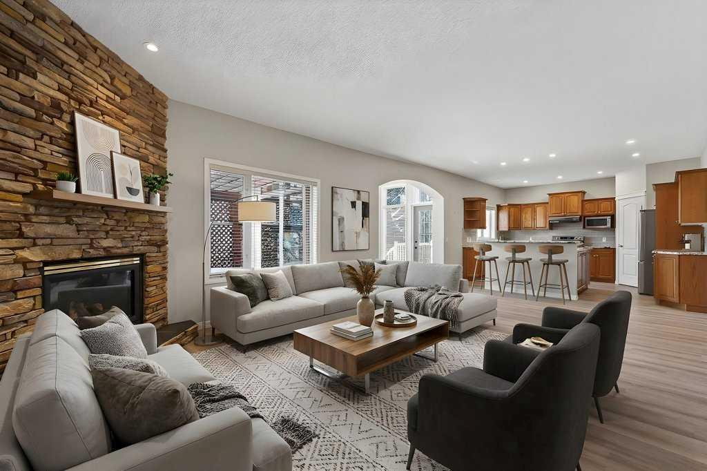 Perfect location on a family-friendly, quiet cul-de-sac in the prestigious Simcrest Estates of Signal Hill. Minutes to schools, Westside Rec-Centre, 69 Ave C-train station, shopping & transit lines. Quick commute to City Centre! Large corner lot affords additional privacy plus access to an R.V. parking pad in the backyard. These original owners custom built this home with Shane Homes & have maintained and updated it to perfection over the years! Open spacious rooms featuring newer luxury vinyl plank flooring & designer carpets upstairs. Formal living & dining rooms offer a comfortable space to entertain. The main floor den is perfect for those who work from home. The kitchen features loads of gorgeous oak cabinetry, natural granite counters, convenient island with appliance bar, & updated stainless steel appliances. Large dining nook overlooks the yard & allows the light to shine in through expansive windows. The Family room features a gas fireplace & is open to the kitchen making it the perfect lay-out to entertain friends or enjoy family time. Main floor laundry, updated bathroom & access to the triple garage. Upstairs you’ll discover 3 bedrooms plus the large Primary bedroom & spa like ensuite bathroom. Enjoy mountain views from the front bedrooms plus a cozy window seat to enjoy a good book. The basement is fully finished offering a fifth bedroom, full bath, a spacious rec-room wired for surround sound to enjoy your favorite movie. The games room features a custom built-in, pub style game table seating area. Loads of room for a pool table or ping pong table! Lots of features including air-conditioning, water softener, reverse osmosis tap in kitchen, newer top of the line appliances, upgraded flooring, newer toilets, updated lighting, fresh paint, new roof shingles, downspouts, facia, new front door & side light windows. The beautifully manicured yards have numerous mature trees & shrubs plus an automatic sprinkler system offering a green oasis to relax in. Have a soak in the hot tub enclosed in its custom pergola for added privacy. Nothing to do to this house except to move in and enjoy!