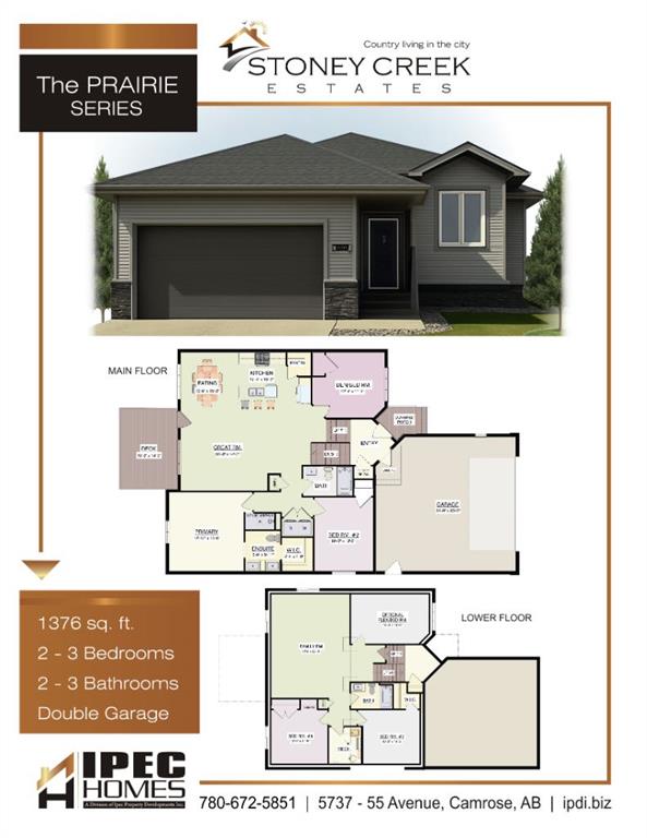 SHOWHOME NOW AVAILABLE FOR PURCHASE – IMMEDIATE POSSESSION! Make this beautiful Prairie Series Showhome your own. This brand-new 1,376 sq. ft. home in Stoney Creek Estates is complete and ready for you to move right in. Built by IPEC Homes, it offers a bright open-concept layout filled with natural light, featuring a spacious kitchen, dining and great room area that is perfect for entertaining or simply enjoying everyday life. The primary suite includes a walk-in closet, dual sinks and a separate water closet, while 2 additional bedrooms and a second full bathroom provide space for family, guests or a home office. Quality details include triple-pane Low-E Argon windows, 9-foot ceilings on both the main floor and lower level, 36-inch upper kitchen cabinets and quartz countertops. Located in newest community in town, Stoney Creek Estates offers the perfect blend of “Country Living in the City.” Thoughtfully planned with complementary home styles, colour palettes and streetscapes, IPEC Homes creates communities that feel like family and homes you will be proud to call your own.