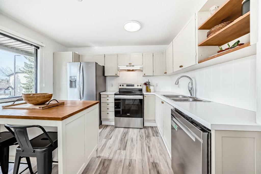A rare opportunity to own a 3 bedroom in West Edge! This stylish, spacious and recently updated home will sure impress! New paint, luxury vinyl plank flooring and LED lighting fixtures throughout have been thoughtfully curated. Step outside to your private yard and notice the newly installed pressure treated fence with access to green space perfect for all the summer activities. Inside, the luxurious kitchen features new storage cabinetry, new stainless steel appliances, refurbished cabinets and hardware, a custom island and generous counter space—perfect for everyday living and entertaining. The open-concept living and dining area creates the perfect ambiance to entertain, with massive windows and sliding glass doors to let in all that natural light. A newly renovated powder room completes the main floor beautifully. The updated wrought iron and custom wood railings leads you to the upper level, where you’ll find an renovated 4 piece bath, two generously sized bedrooms and a West facing primary retreat with double French doors complete with plenty of closet space. The basement provides additional living, utilized as a home office and flex space with ample storage, laundry room and convenient step-free access to the attached garage - perfect for those cold days. All this in an unmatched South West location, close to shopping, transit, Stoney Trail and easy access to the city core. Do not miss this opportunity!