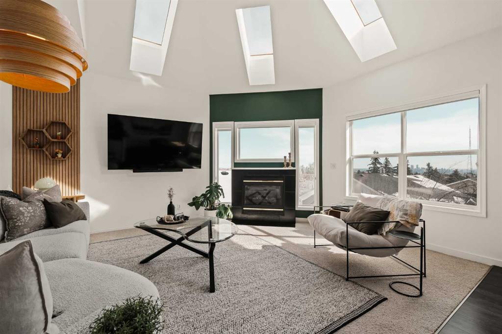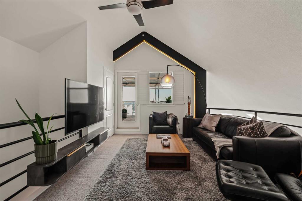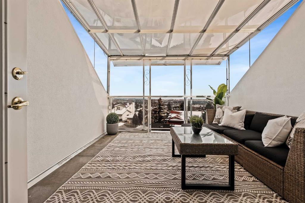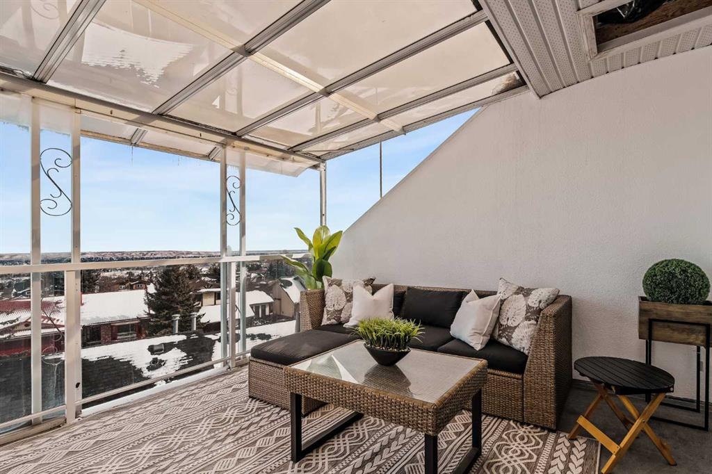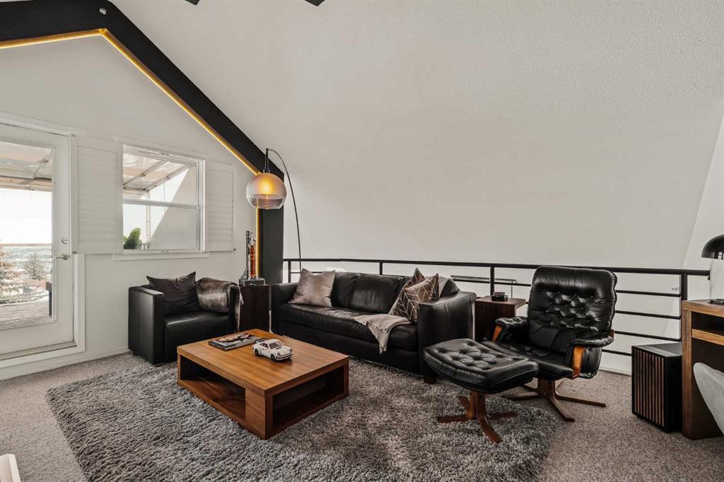 Step inside this Patterson Loft and you can immediately feel the difference. Vaulted ceilings and skylights pull natural light through the entire space, creating an elevated atmosphere that’s hard to replicate. The open concept layout flows effortlessly, anchored by a cozy gas fireplace that adds warmth and intention to the living space. The large dining room allows for a huge table, which makes hosting an easy option for the holidays or game nights. This end-unit penthouse delivers a rare combination of space, light, and uninterrupted city views that genuinely stop you mid-sentence. From sunrise to the evening skyline, this home frames Calgary like a living piece of art—whether you're in the main living area or unwinding in the sunroom, the view is always the main event. With 2 bedrooms, 2 full bathrooms and in suite laundry there’s nothing this condo doesn’t offer! Then there’s the feature that really sets this home apart: A loft space overlooking the main floor—perfect as a home office, creative studio, guest zone, or elevated lounge. It adds that architectural edge and character that can be difficult to find. ?There are two separate entrances one on each level which is an extremely practical solution for moving furniture or hosting guests who can’t do stairs! Off of your loft is a large storage/utility room, and the enclosed sunroom extends your living space (professionally approved and the ONLY one in the building). Morning coffee, evening wine, or even watching fireworks over the city… it’s all better from here. Plus, you have a BBQ gas hookup, making it as functional as it is inviting. With 2 Titled underground parking spots, Visitor parking and the ability to rent a spot outside, it is easy to have guests. And location? Patterson is one of Calgary’s best-kept secrets—quiet, elevated, and just minutes to downtown via Old Banff Coach Road, giving you the perfect balance of convenience and escape.