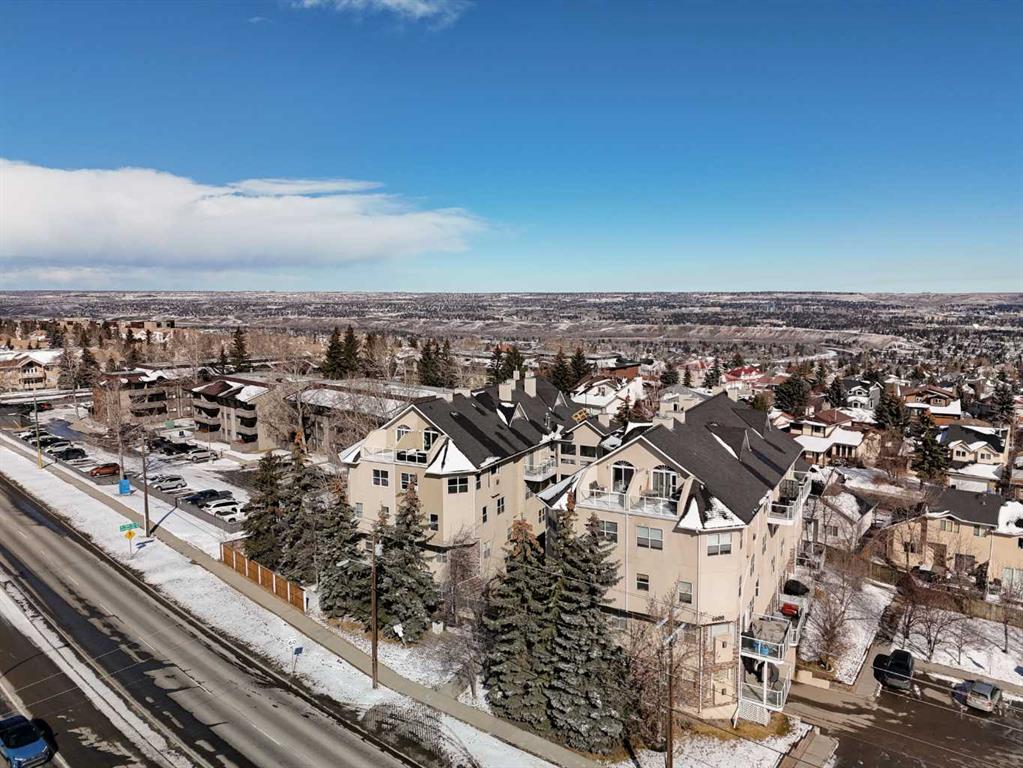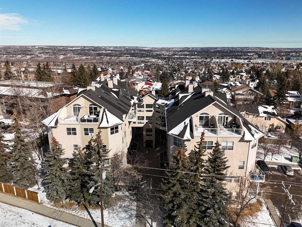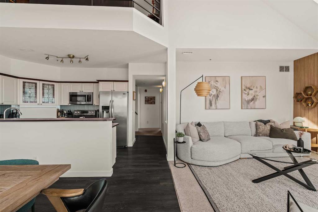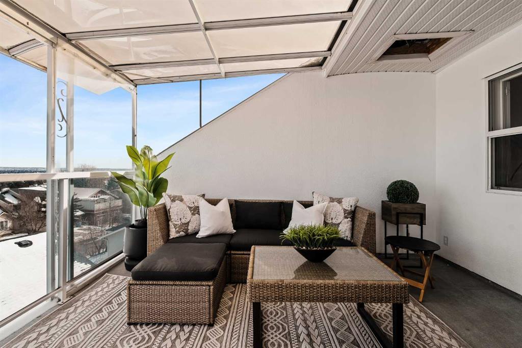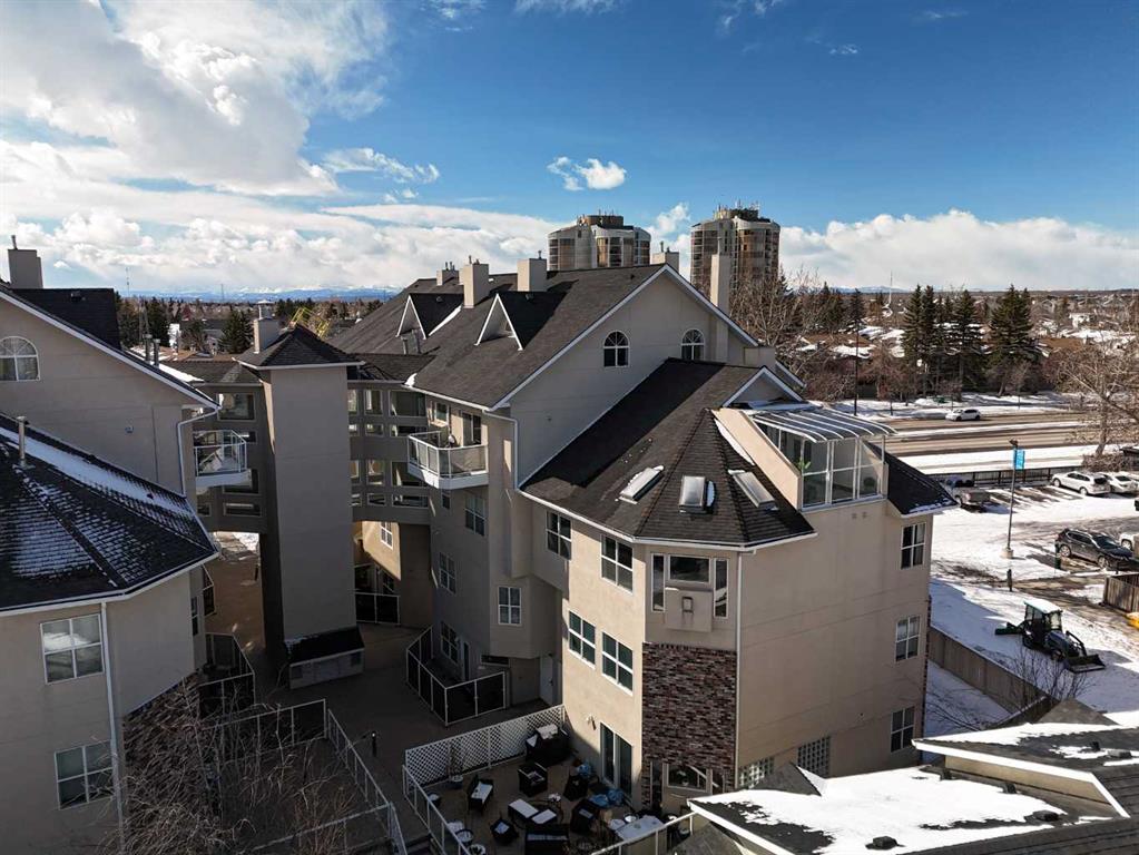 Step inside this Patterson Loft and you can immediately feel the difference. Vaulted ceilings and skylights pull natural light through the entire space, creating an elevated atmosphere that’s hard to replicate. The open concept layout flows effortlessly, anchored by a cozy gas fireplace that adds warmth and intention to the living space. The large dining room allows for a huge table, which makes hosting an easy option for the holidays or game nights. This end-unit penthouse delivers a rare combination of space, light, and uninterrupted city views that genuinely stop you mid-sentence. From sunrise to the evening skyline, this home frames Calgary like a living piece of art—whether you're in the main living area or unwinding in the sunroom, the view is always the main event. With 2 bedrooms, 2 full bathrooms and in suite laundry there’s nothing this condo doesn’t offer! Then there’s the feature that really sets this home apart: A loft space overlooking the main floor—perfect as a home office, creative studio, guest zone, or elevated lounge. It adds that architectural edge and character that can be difficult to find. ?There are two separate entrances one on each level which is an extremely practical solution for moving furniture or hosting guests who can’t do stairs! Off of your loft is a large storage/utility room, and the enclosed sunroom extends your living space (professionally approved and the ONLY one in the building). Morning coffee, evening wine, or even watching fireworks over the city… it’s all better from here. Plus, you have a BBQ gas hookup, making it as functional as it is inviting. With 2 Titled underground parking spots, Visitor parking and the ability to rent a spot outside, it is easy to have guests. And location? Patterson is one of Calgary’s best-kept secrets—quiet, elevated, and just minutes to downtown via Old Banff Coach Road, giving you the perfect balance of convenience and escape.