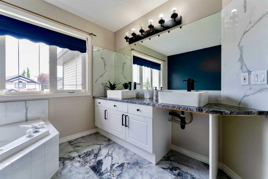 Welcome to 276 Fairways Bay NW, Airdrie!! This recently renovated 2-storey backs onto the GOLF COURSE, offering stunning views and a peaceful lifestyle, featuring a bright open layout with a CHEF’S KITCHEN, MAIN FLOOR OFFICE, and spacious living areas. Upstairs features a BONUS ROOM and three bedrooms, including a luxurious primary suite. The NEWLY FINISHED BASEMENT adds a Big Living Area, a bedroom, a BAR, and a full bath. Enjoy an insulated ATTACHED DOUBLE GARAGE, School at Walking Distance, parks, and shopping — all in the sought-after Fairways community!