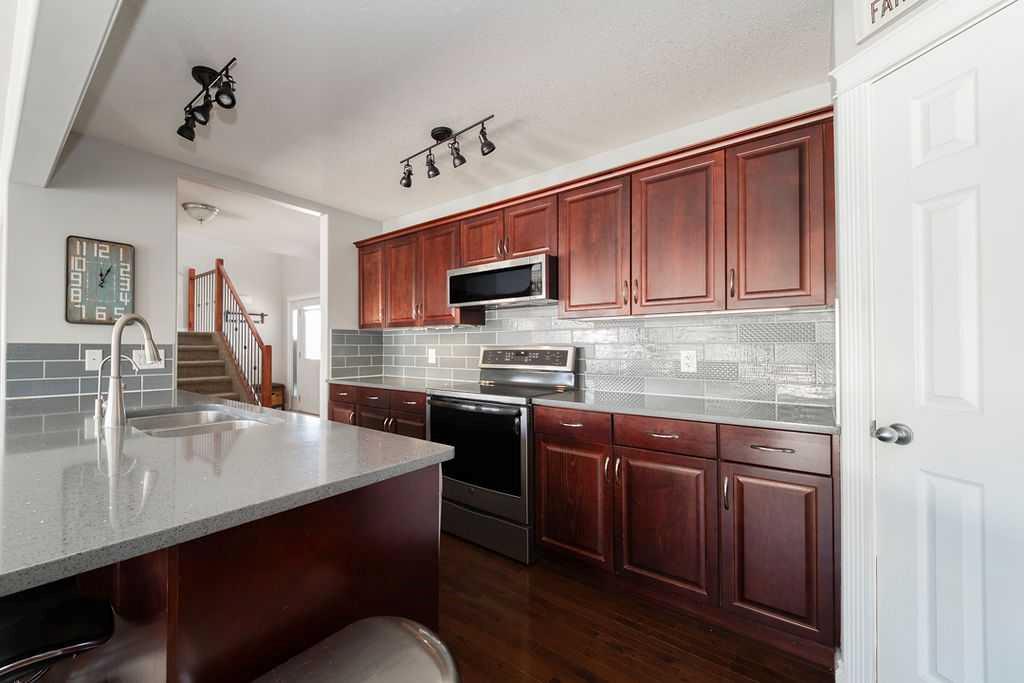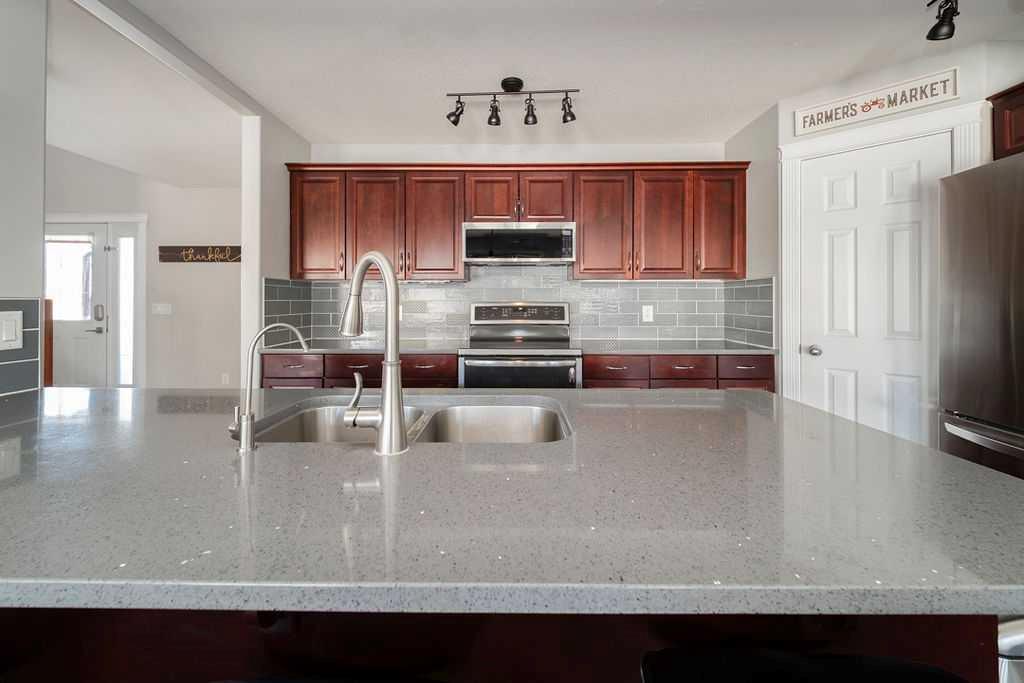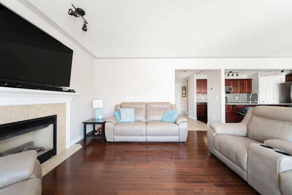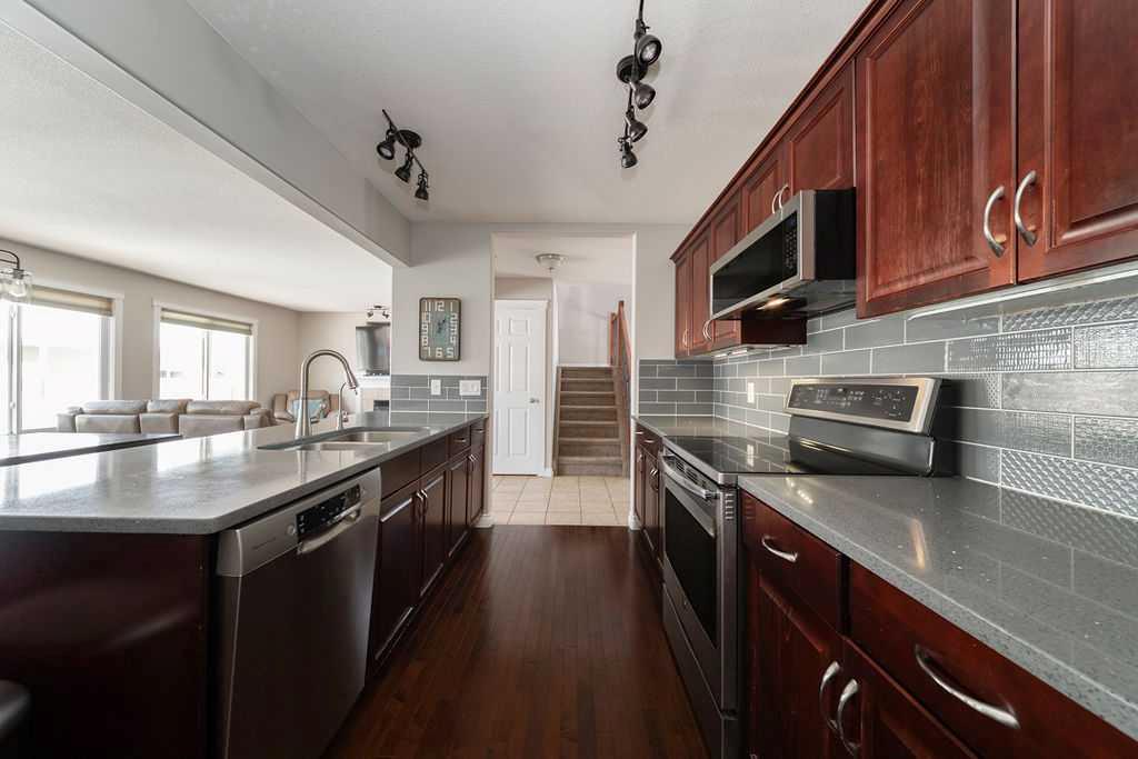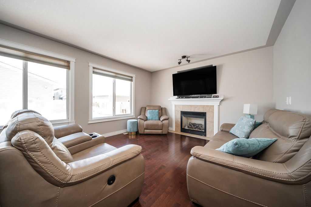 Welcome to 272 Swallow Way; Set directly across from the pond in the highly desirable Eagle Ridge neighbourhood, this beautifully maintained two-storey home blends thoughtful updates with a warm, welcoming feel in a location that’s hard to beat. With walking paths, bike trails, playgrounds, and schools just steps away, it’s a setting that truly embraces the best of community living. Inside, the open-concept main floor is bright and inviting. Large windows pull in plenty of natural light, hardwood runs through the living areas, and the whole space has a flow that just makes sense. The kitchen is both stylish and functional, featuring Bordeaux cabinetry, newer appliances, new countertops, and an oversized grey tile backsplash that ties it all together nicely. The adjoining dining area is highlighted by upgraded lighting and framed by large windows and double French doors that open directly to the backyard, creating an effortless connection between indoor and outdoor living. The living room offers a cozy gas fireplace and connects easily to the dining space, so whether you're hosting or just hanging out, it all works together naturally. The main floor also has a spacious tiled foyer when you walk in, a front half bathroom, and main floor laundry with built-in shelving, a large window with two-way blinds. Upstairs there are three bedrooms, including a primary that gives you real space to unwind, featuring a walk-in closet, private ensuite with a dual-sink vanity and deep soaking tub. The other bedrooms are comfortable and well-sized, with a shared 4 piece bathroom that completes the upper level. The fully developed basement offers exceptionally high ceilings and creates the perfect family hangout space. A fourth bedroom and bathroom with heated tile floors provide comfort for guests or older kids, while two utility rooms offer excellent storage solutions. Outside, the sunny backyard enjoys all-afternoon sun and is fully fenced with a large deck, gas line for a BBQ, a hot tub that stays, and clever covered storage tucked away neatly beside the deck. At the rear of the property you’ll find an oversized double detached garage with a gas heater, along with a rear asphalt driveway that provides additional parking and space large enough for RV storage, with a removable fence for easy access. With its pond views, sunny yard, and a layout that just feels right from the moment you walk in, this home offers the kind of space people stay for. Schedule your private tour today!