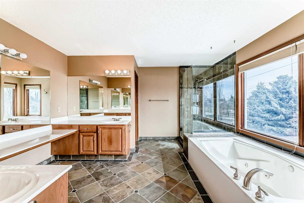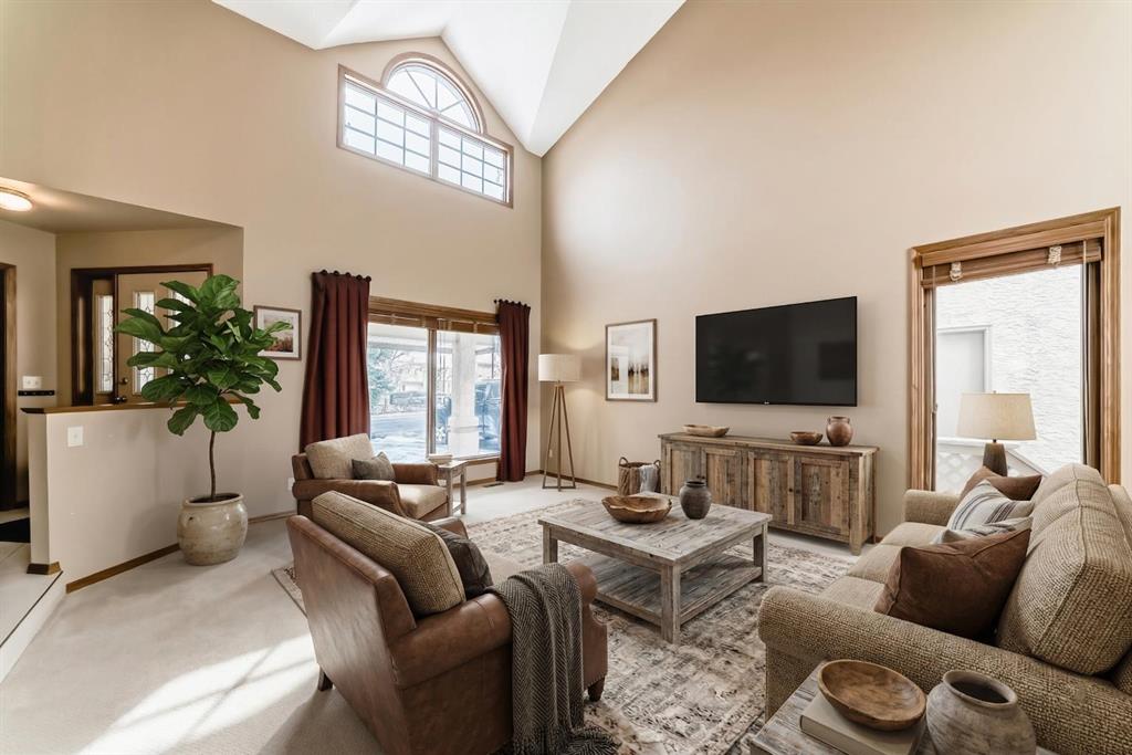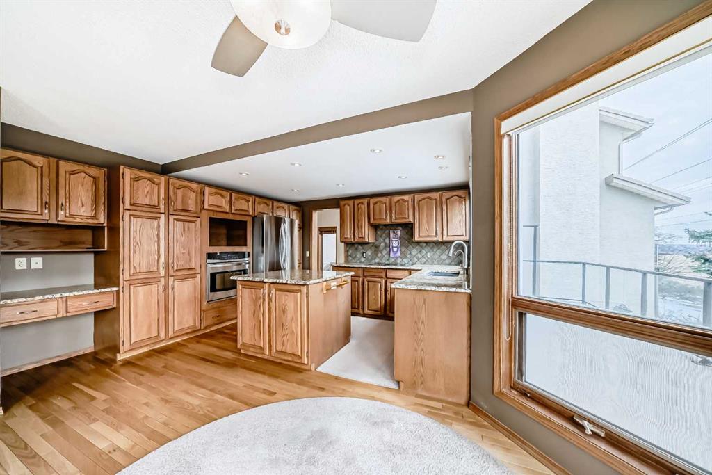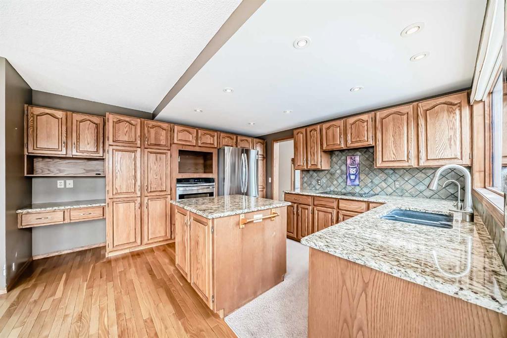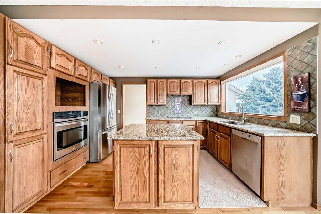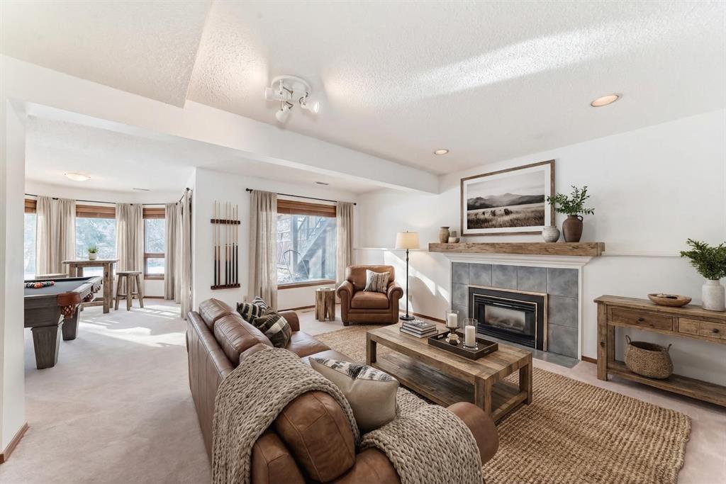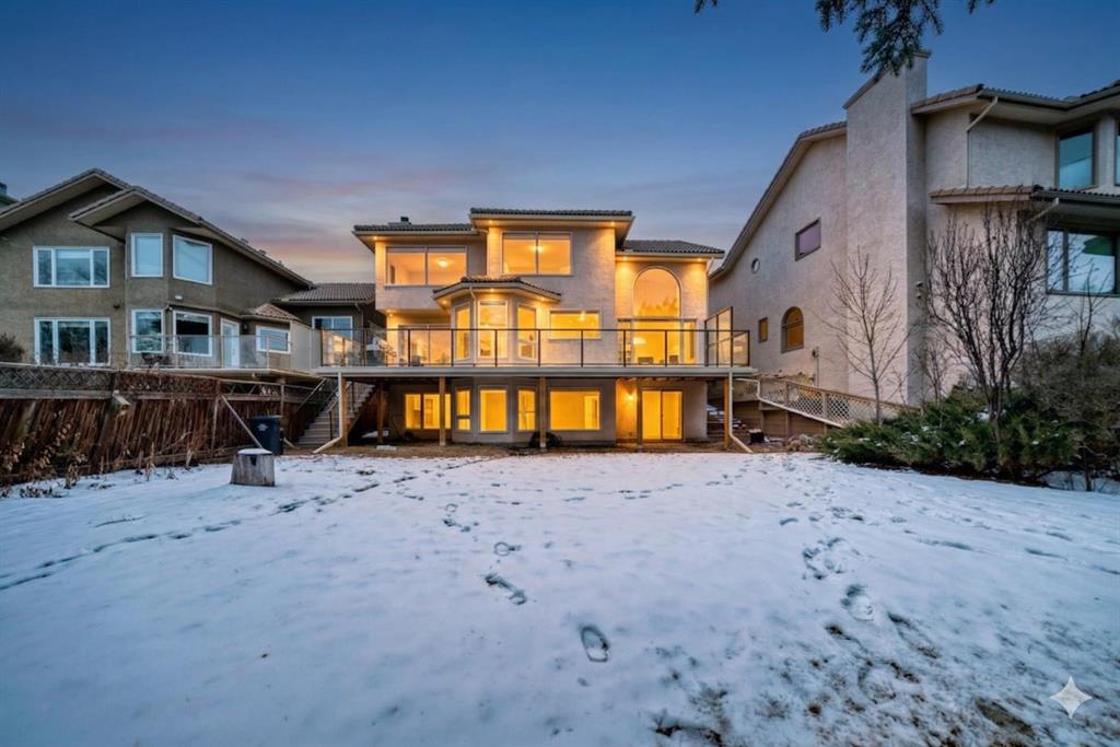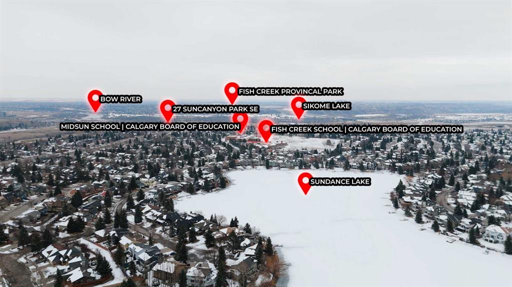 Incredible 4 bedroom 3 bathroom home with walk out basement and prime crescent location in prestigious estates area of Sundance - Welcome home to 27 Sun Canyon Park SE! The main level showcases a front living room with dramatic vaulted ceilings, formal dining room, & family room with custom built-ins and classic wood-burning fireplace - perfect for everyday living & entertaining! The bright & spacious kitchen features granite countertops, stainless steel appliances, and breakfast nook with direct access to the brand new expansive upper deck, flowing effortlessly into the casual dining area. Located just off the garage, the practical laundry and mudroom includes a dedicated dog door leading to a small, private fenced run. A two piece bathroom completes the main level. Upstairs, the primary suite is built for relaxation, offering a spacious walk-in closet with reconfigurable storage and 5-piece ensuite complete with dual vanities, jetted tub, & a glass-enclosed slate-tiled shower. Three additional bedrooms—one with a convenient 5-piece dual access ensuite—complete this level, providing plenty of space for a growing family. The fully developed walk-out basement provides versatile extra living space, featuring a family room with gas fireplace and a dedicated recreation area, all with easy access to the yard through the sliding doors. Step outside to find the expansive, sunny south-facing yard which offers total privacy with no neighbours behind. Enjoy the view from the newer upper composite deck with glass railings, or head out the back gate for direct access to the vast trail system of Fish Creek Provincial Park. Recent property upgrades include dual furnaces, dual hot water tanks, and a water softener all replaced in 2021, new upper patio in 2024, and central air conditioning for year-round comfort. For those with multiple vehicles or hobbies, the oversized triple attached garage is a major standout. This prime location is just a short walk to schools, Sikome Lake, and the historic Bow Valley Ranche, while providing full Sundance Lake privileges for year round recreation. It’s more than a house; it’s a rare lifestyle opportunity in a premier lake community. Book your viewing today!