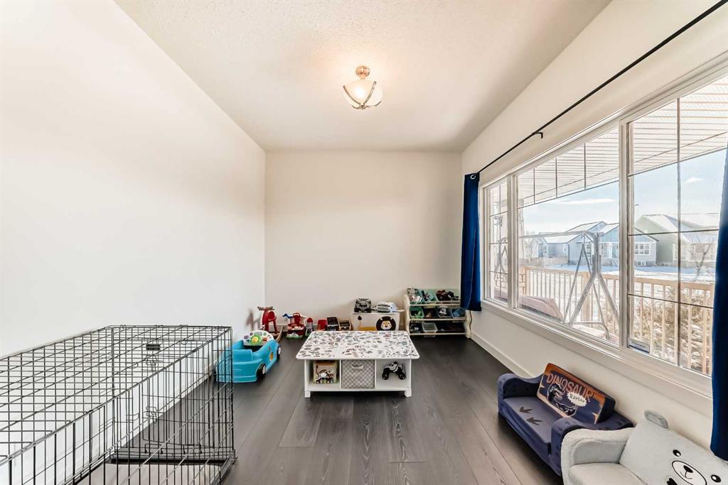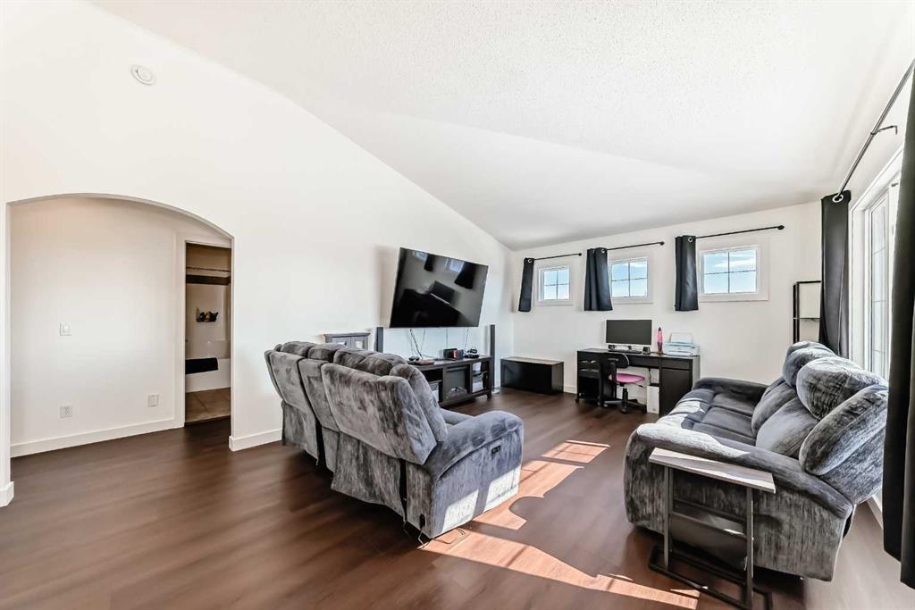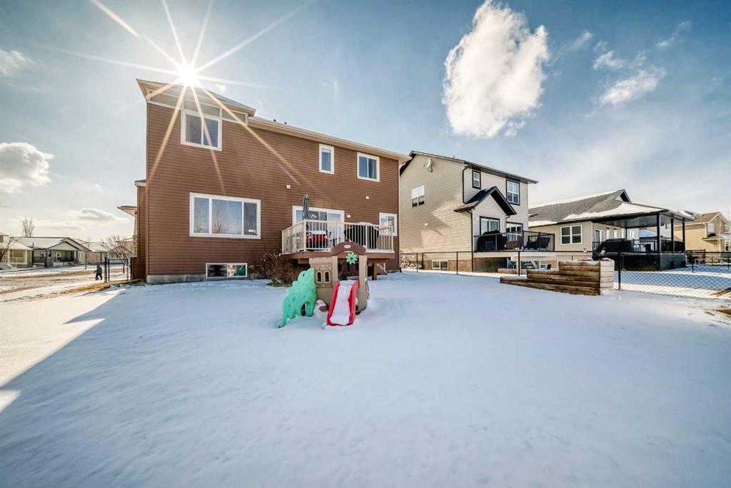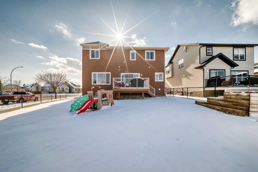 Welcome to this beautifully updated, freshly painted and AIR CONDITIONED former show home in Highwood Village, perfectly located on a quiet street and backing directly onto a park. Set on a large corner lot with a huge yard, this home offers direct access to a playground, bike pump track, and spray park — an ideal setup for families. The school bus conveniently stops right outside the front door. Inside, the home is bright and inviting with an abundance of windows throughout. The main floor features a sunny front flex room, a functional mudroom off the double attached garage, and an open-concept living space anchored by a well-appointed kitchen with stone countertops, a large pantry, and extra windows. Upstairs includes three bedrooms, convenient upper laundry, and a spacious bonus room with vaulted ceilings. The primary suite offers a generous layout, a double vanity, soaker tub, separate shower, and a large organized closet. Recent updates include fresh paint and new flooring throughout, with carpet only on the stairs and in the bedrooms. Additional features include air conditioning, irrigation system blown out and ready to go, water softener, humidifier, and a wrap-around porch. A rare opportunity to own a move-in ready home in a family-focused community with parks, pathways, and golf nearby, along with easy access to Hwy 2 to have you on your way to your next adventure.