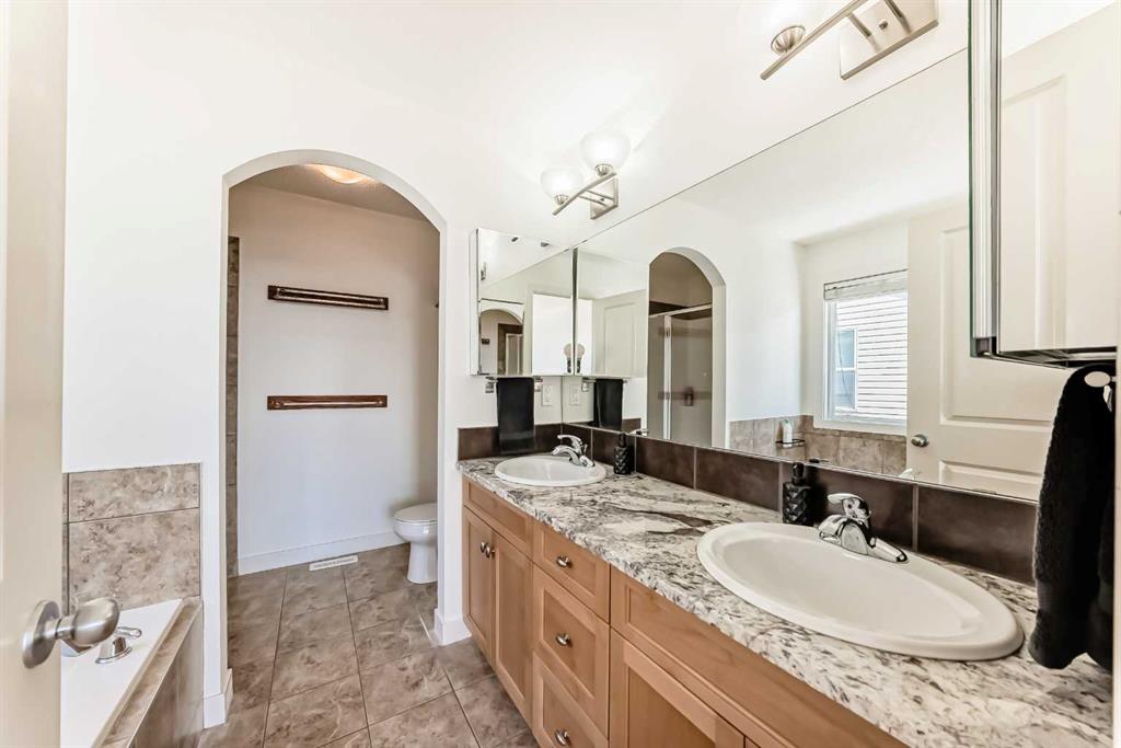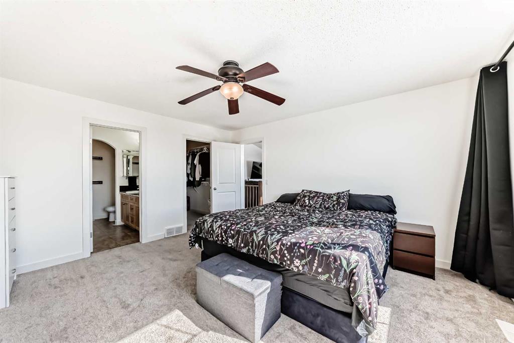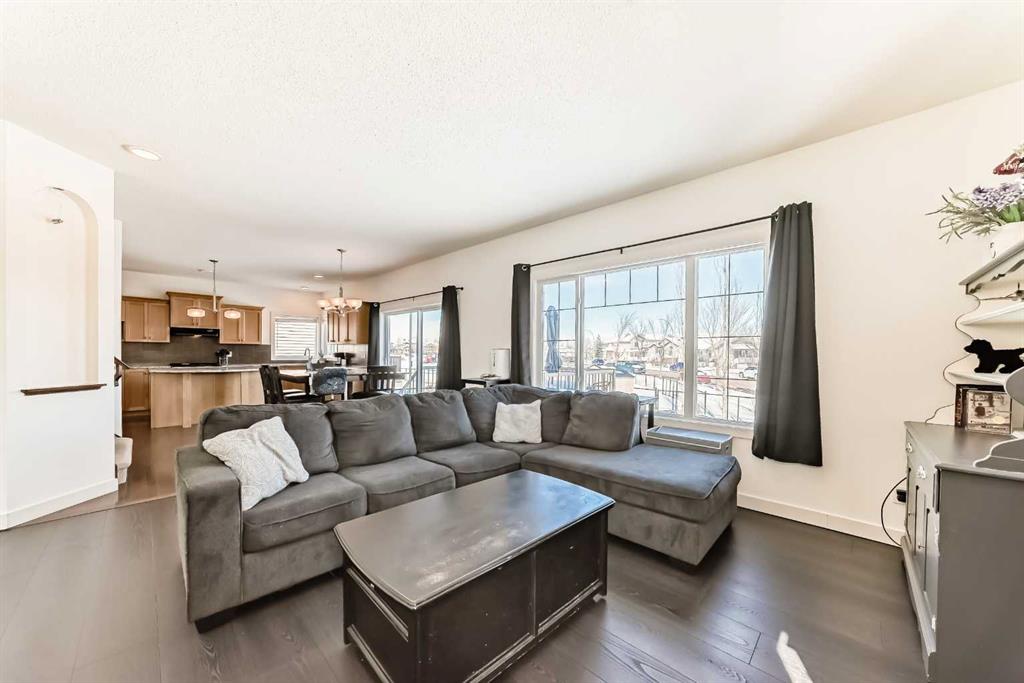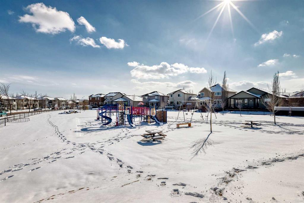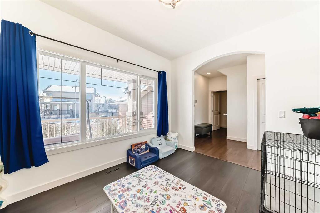 Welcome to this beautifully updated, freshly painted and AIR CONDITIONED former show home in Highwood Village, perfectly located on a quiet street and backing directly onto a park. Set on a large corner lot with a huge yard, this home offers direct access to a playground, bike pump track, and spray park — an ideal setup for families. The school bus conveniently stops right outside the front door. Inside, the home is bright and inviting with an abundance of windows throughout. The main floor features a sunny front flex room, a functional mudroom off the double attached garage, and an open-concept living space anchored by a well-appointed kitchen with stone countertops, a large pantry, and extra windows. Upstairs includes three bedrooms, convenient upper laundry, and a spacious bonus room with vaulted ceilings. The primary suite offers a generous layout, a double vanity, soaker tub, separate shower, and a large organized closet. Recent updates include fresh paint and new flooring throughout, with carpet only on the stairs and in the bedrooms. Additional features include air conditioning, irrigation system blown out and ready to go, water softener, humidifier, and a wrap-around porch. A rare opportunity to own a move-in ready home in a family-focused community with parks, pathways, and golf nearby, along with easy access to Hwy 2 to have you on your way to your next adventure.