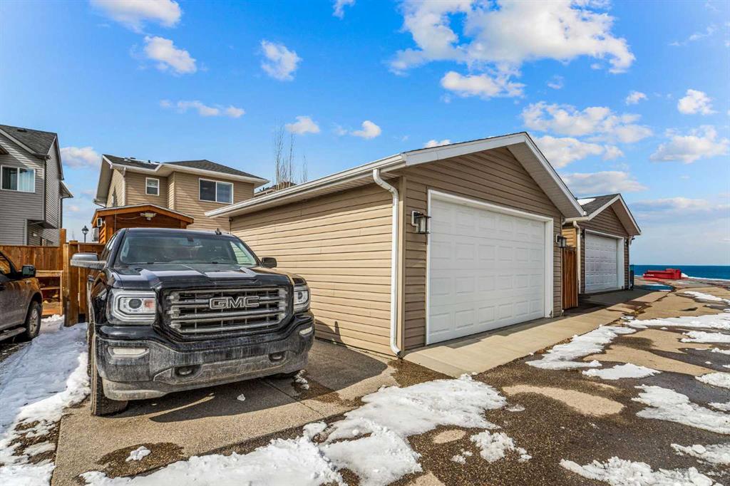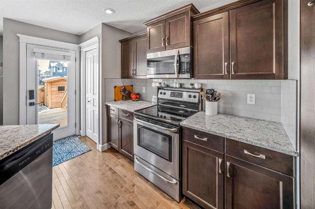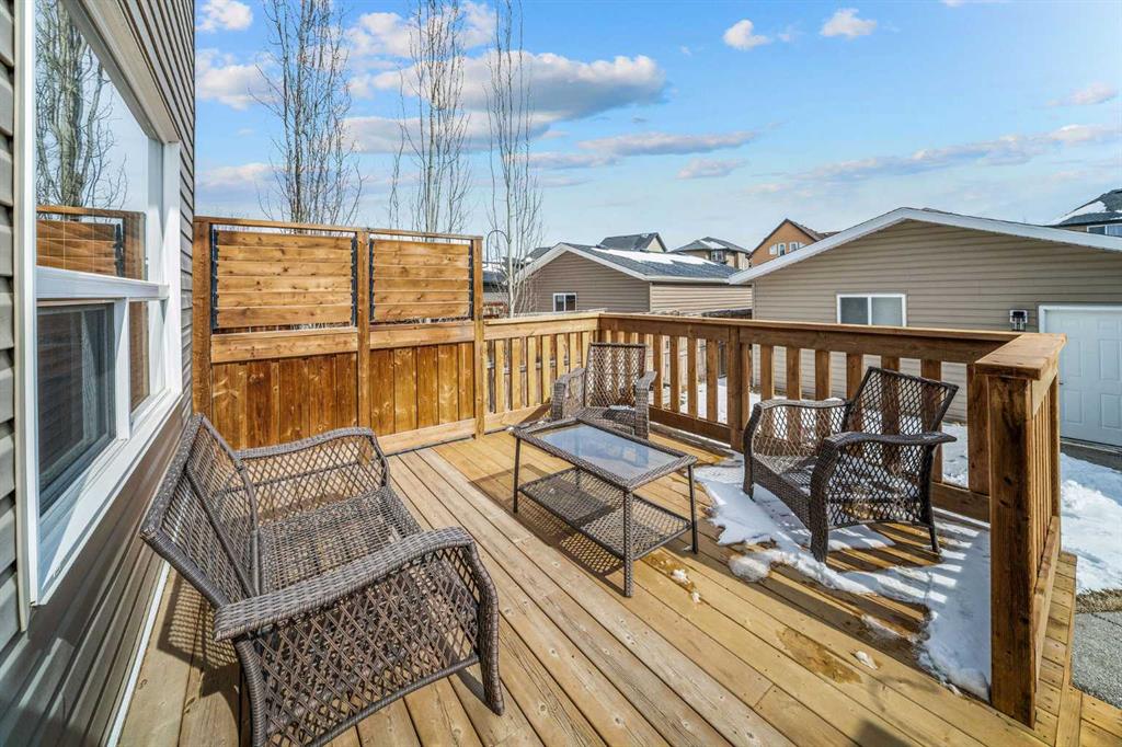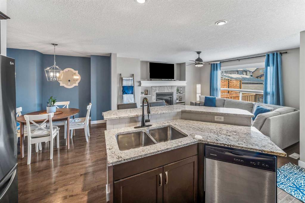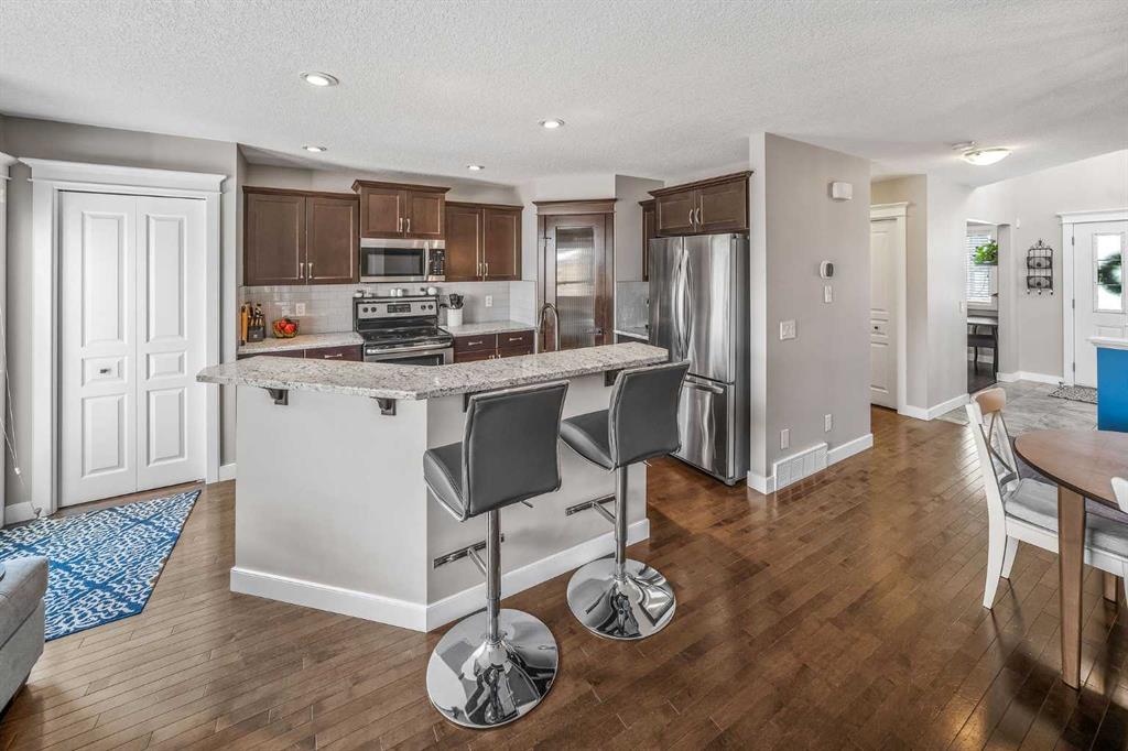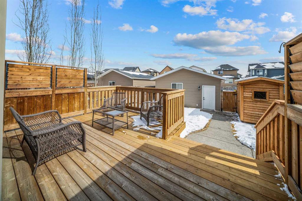 OPEN HOUSE SAT. APRIL 4TH 11AM-2PM!! STUNNING HOME IN DESIRABLE RAVENSWOOD | CENTRAL AC, DOUBLE GARAGE, PLUS 3RD CAR PARKING! Welcome to this beautifully maintained open-concept two-storey home, ideally situated on a quiet street in the highly sought-after community of Ravenswood. Flooded with natural light, this home offers a perfect blend of comfort, style, and functionality for modern living. The main floor features rich hardwood flooring, a versatile den ideal for a home office, convenient main floor laundry, and a stylish powder room. The heart of the home is the kitchen, complete with richly stained cabinetry, a stainless steel appliance package, and thick stone countertops that extend seamlessly onto the island - perfect for entertaining. The inviting family room showcases a cozy fireplace and flows effortlessly into the dining area, creating a warm and welcoming space. Upstairs, you’ll find three spacious bedrooms, including a bright primary retreat with a walk-in closet and private ensuite bath. An additional full bathroom completes the upper level. Step outside to enjoy your private backyard, featuring a newly extended deck - ideal for relaxing or hosting guests. The double garage is great for those looking for shop space, offering a 240V plug for tools or electric vehicle charging, along with a natural gas line. An additional third parking stall adds even more convenience. The undeveloped basement provides excellent future potential, with mechanical thoughtfully tucked away and rough-in plumbing already in place for a future bathroom. Located just steps from parks, walking paths, schools, and a wide range of amenities, this home offers exceptional value in a family-friendly community. Central AC, fully landscaped, Sunny SE facing backyard, and much more A fantastic opportunity you won’t want to miss!
