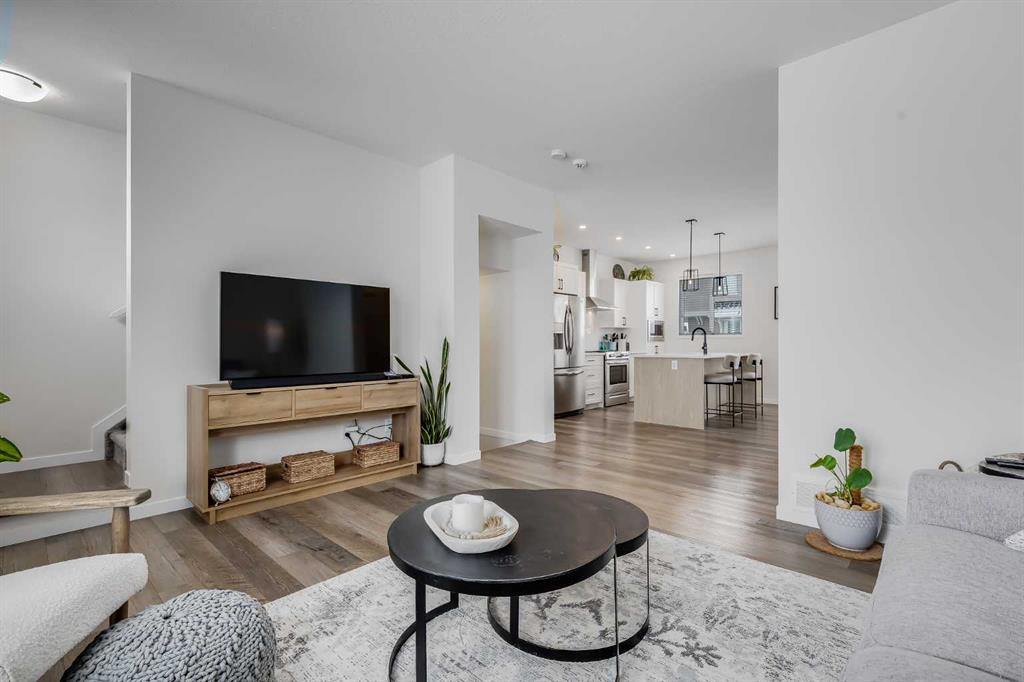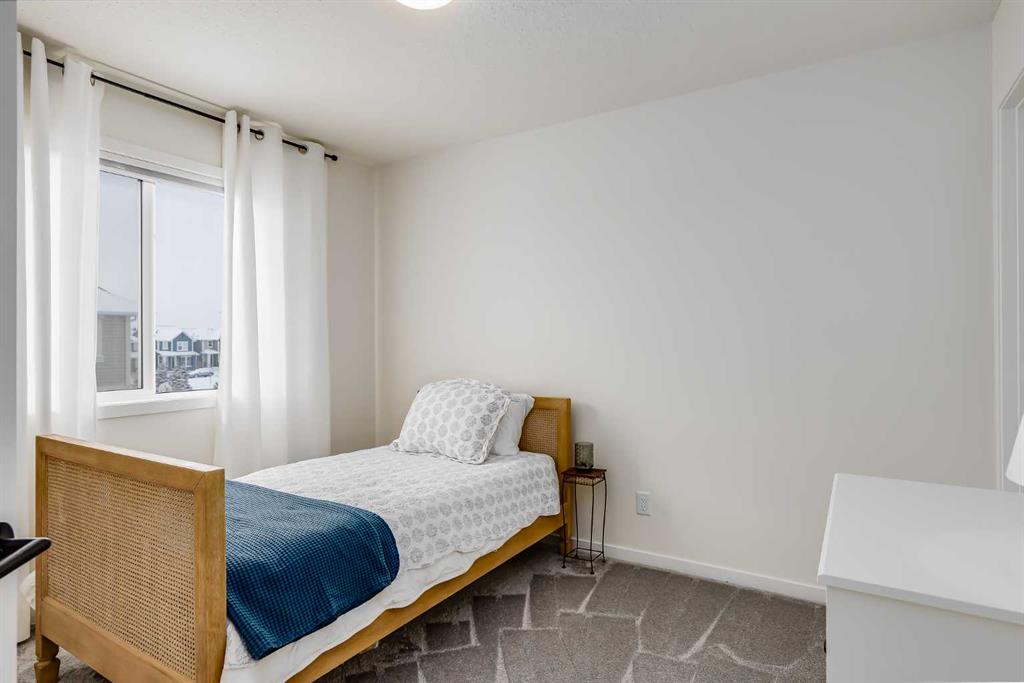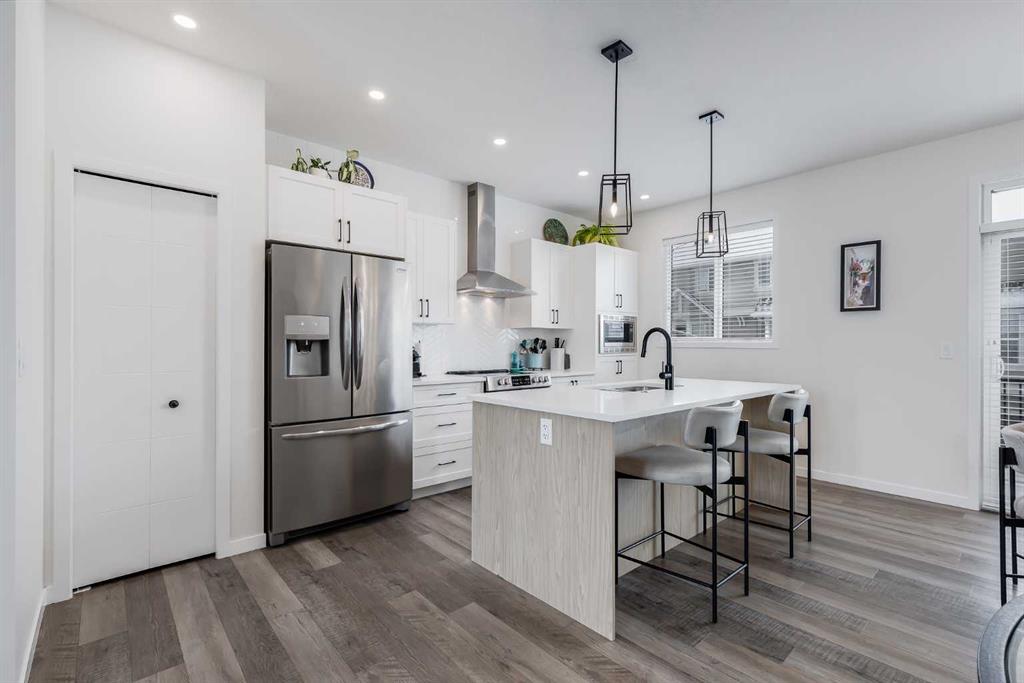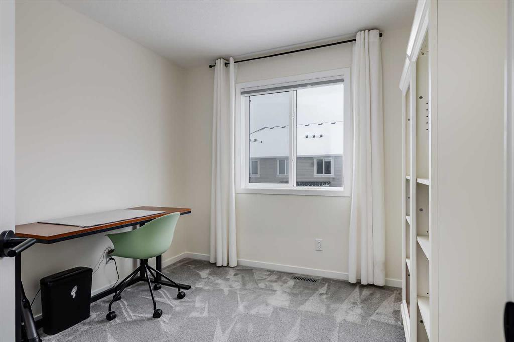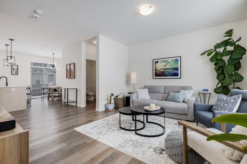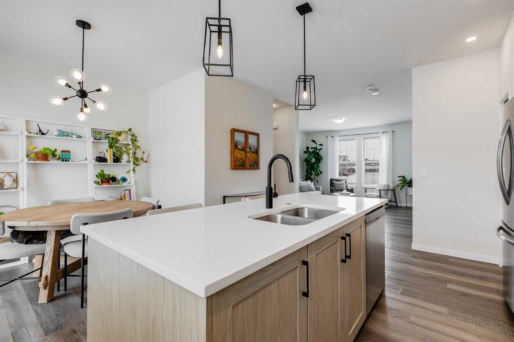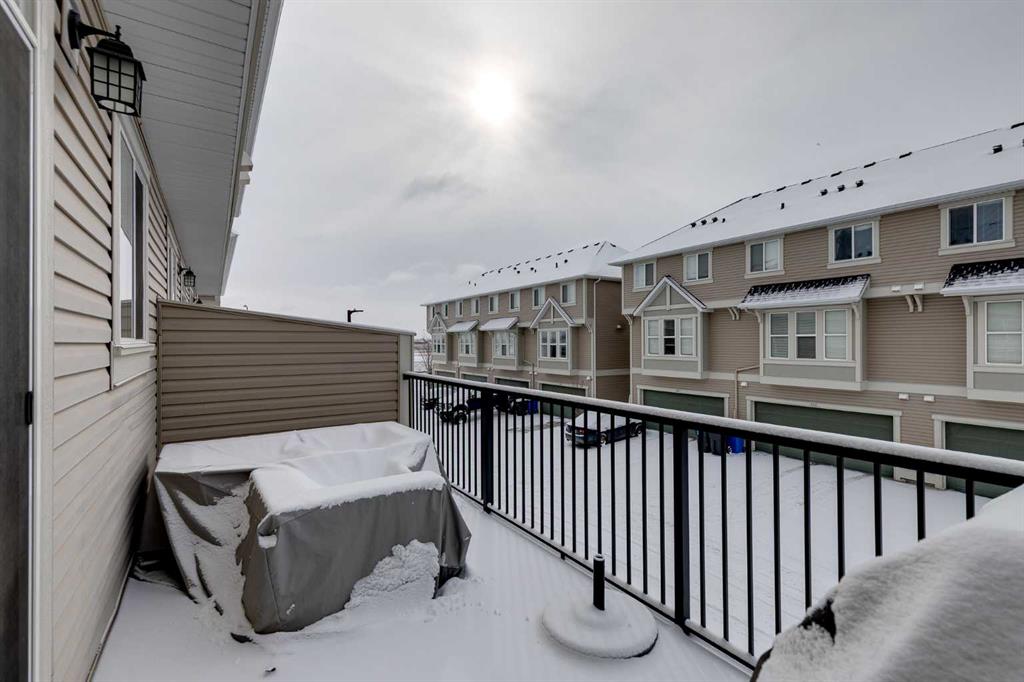 Welcome to where modern living meets everyday ease in one of Airdrie’s most connected communities. This beautifully maintained 3-storey townhome offers almost 1,600 sq ft of thoughtfully designed space, perfect for families, young professionals or anyone seeking a low-maintenance, design-forward lifestyle. From the moment you step inside, the flexibility of the layout is immediately apparent. The entry level features a bright, versatile den—ideal as a home office, fitness space or creative studio— plus direct access to double attached garage. Upstairs, the main living space is open, airy and beautifully balanced. Luxury vinyl runs wall to wall, stretching sightlines and reinforcing gallery-like flow through the living and dining spaces. The kitchen strikes a confident balance between classic and contemporary. Shaker-style cabinetry is paired with quartz countertops, stainless steel appliances, a pantry and a generous island that anchors the space without overpowering it. The palette is clean and disciplined, allowing the proportions and natural light to take the lead. A south-facing balcony extends the living space outward, inviting sunlight in and offering a quiet moment of retreat. A discreet powder room completes this level. The top floor is dedicated to rest, with 3 well-proportioned bedrooms. The primary suite is calm and functional, complete with its own ensuite and ample storage. Brand new carpet adds softness underfoot while new air conditioning unit ensures comfort through every season. Set in a well-managed, family-friendly complex just steps from schools, playgrounds, tennis courts, shopping and quick access to Highway 2. Stylish, functional & perfectly located: this is the one you’ve been waiting for.