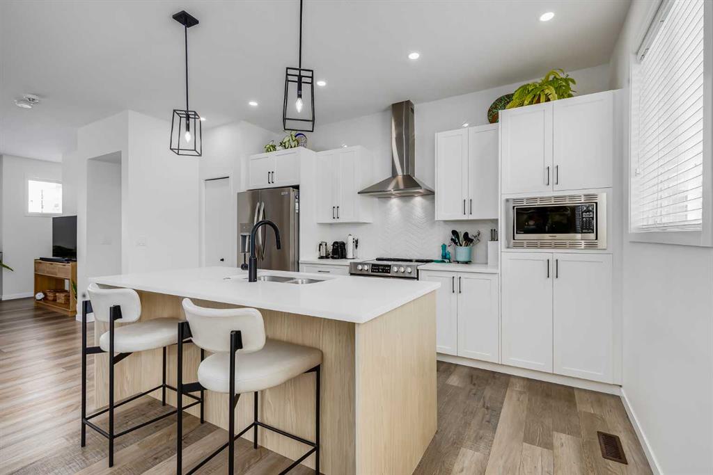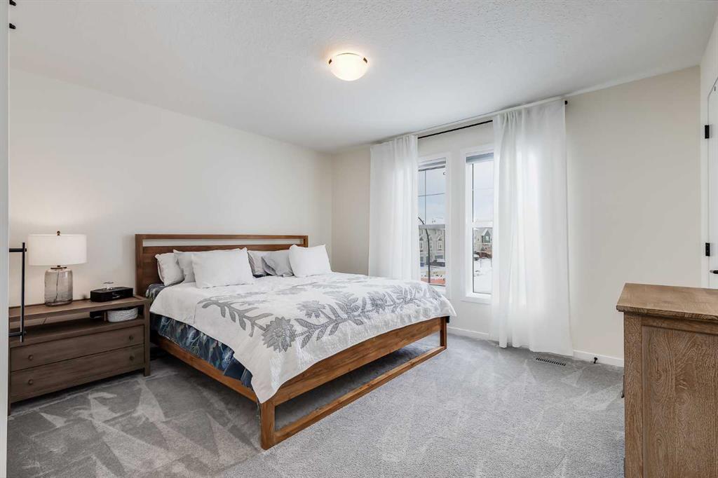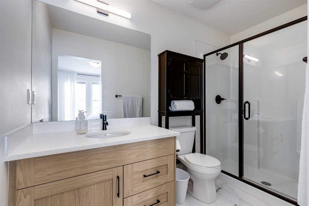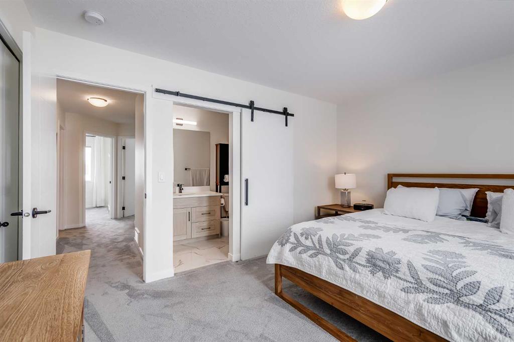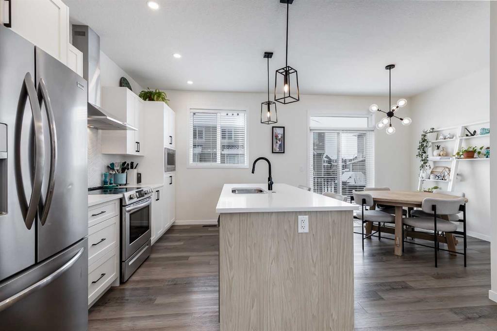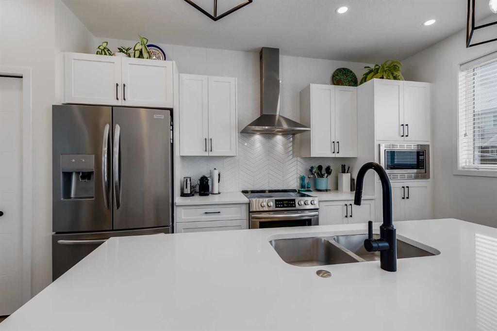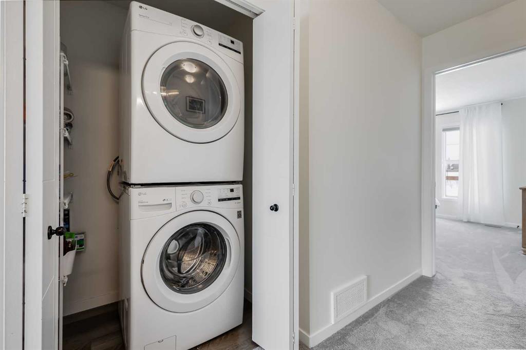 Welcome to where modern living meets everyday ease in one of Airdrie’s most connected communities. This beautifully maintained 3-storey townhome offers almost 1,600 sq ft of thoughtfully designed space, perfect for families, young professionals or anyone seeking a low-maintenance, design-forward lifestyle. From the moment you step inside, the flexibility of the layout is immediately apparent. The entry level features a bright, versatile den—ideal as a home office, fitness space or creative studio— plus direct access to double attached garage. Upstairs, the main living space is open, airy and beautifully balanced. Luxury vinyl runs wall to wall, stretching sightlines and reinforcing gallery-like flow through the living and dining spaces. The kitchen strikes a confident balance between classic and contemporary. Shaker-style cabinetry is paired with quartz countertops, stainless steel appliances, a pantry and a generous island that anchors the space without overpowering it. The palette is clean and disciplined, allowing the proportions and natural light to take the lead. A south-facing balcony extends the living space outward, inviting sunlight in and offering a quiet moment of retreat. A discreet powder room completes this level. The top floor is dedicated to rest, with 3 well-proportioned bedrooms. The primary suite is calm and functional, complete with its own ensuite and ample storage. Brand new carpet adds softness underfoot while new air conditioning unit ensures comfort through every season. Set in a well-managed, family-friendly complex just steps from schools, playgrounds, tennis courts, shopping and quick access to Highway 2. Stylish, functional & perfectly located: this is the one you’ve been waiting for.