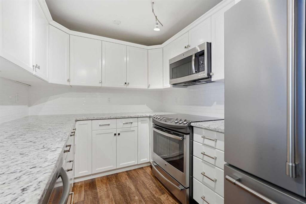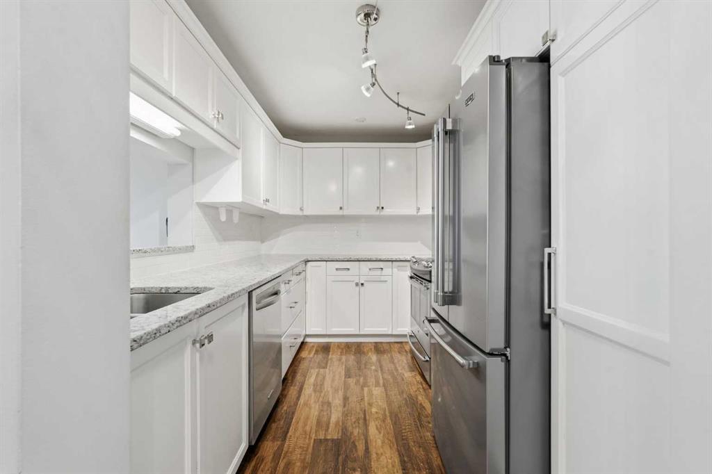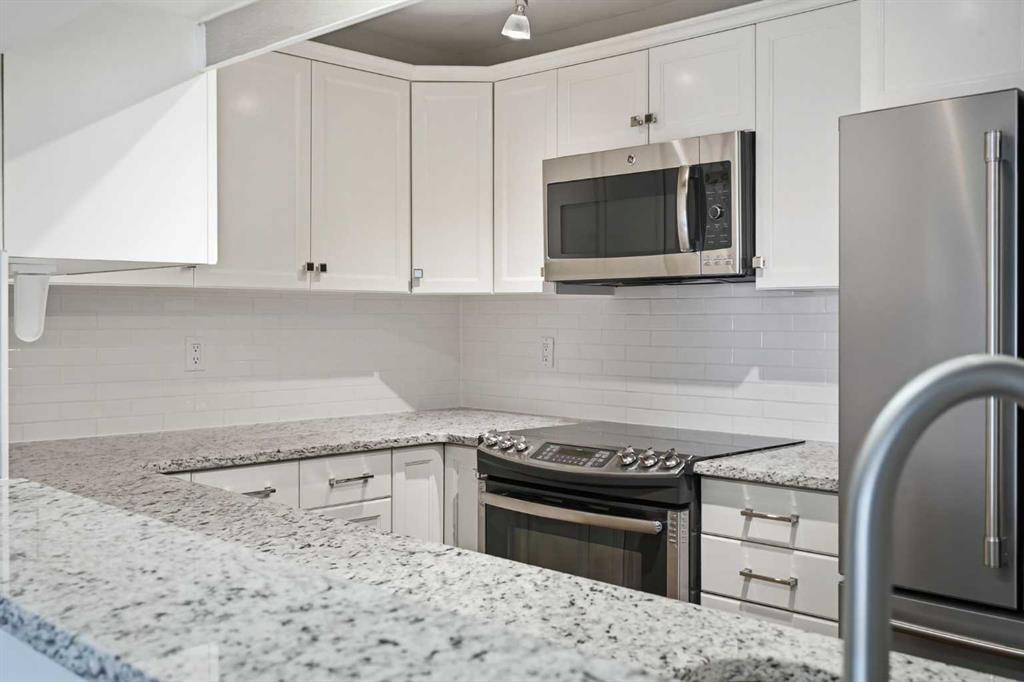 Welcome to this stunning TOP-FLOOR PENTHOUSE SUITE in Cliff Bungalow! This beautifully renovated unit is the largest in the building and offers 2 bedrooms, 2 bathrooms, and two underground parking spots each with its own storage locker. A rare and highly desirable combination. Designed with a smart, functional layout, this condo features South-facing exposure, filling the space with an abundance of natural light throughout the day. The timelessly updated kitchen showcases high-end finishes, including stainless steel appliances, a subway tile backsplash, granite countertops and white cabinetry with ample storage. Hardwood flooring runs throughout the unit adding warmth and elegance. Both bedrooms are generously sized and feature custom California closets and their own bathrooms for privacy and convenience. The spacious primary bedroom easily fits a king sized bed and is complete with a 4pc ensuite bathroom featuring custom tile and a glass enclosed shower. A dedicated laundry room with additional storage further enhances everyday functionality. Step outside onto one of the largest balconies in the building, perfectly positioned to enjoy sunny days year round. Surrounded by mature trees, this outdoor space offers exceptional privacy while maintaining a bright, open feel thanks to its ideal southern exposure. Situated on a quiet, tree-lined street, this PET FRIENDLY building (allowing up to two pets with no breed, height, or weight restriction?s) is just steps away from 17th Ave and minutes to Mission. Enjoy walking access to trendy restaurants, coffee shops, parks, tennis courts and the vibrant 4th street and 17th Ave districts. This neighbourhood brings the best of inner city living right to your doorstep.