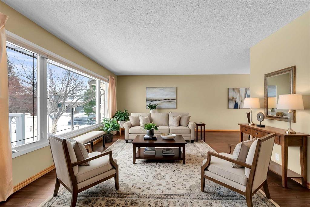 Your new home is a one owner, custom built, totally upgraded, family home ideally situated on a quiet crescent just steps away from a green belt (with a walking and biking path) in the highly sought-after community of Varsity. From the moment you arrive, the exceptional curb appeal will capture your attention, featuring the maintenance free brick and stucco exterior, oversized newer windows, doors and roof shingles, exposed aggregate driveway, walkway and more. From the moment you arrive, you'll be greeted by the bright and spacious living room and dining room that are enhanced by the elegant hand scraped hardwood flooring. The chef in you will love the gourmet kitchen that boasts an abundance of cabinetry and counter space, pantry with pull out drawers, stainless steel appliances, granite counter tops, an eating area and easy access to the south facing concrete patio and a beautifully landscaped yard - perfect for gardeners and outdoor enthusiasts alike. The upper level boasts 3 generously sized bedrooms, including the primary bedroom that offers a full ensuite with an oversize shower and a second full bathroom with a soaker tub. On the lower level you can unwind in the roomy yet cozy family room with a gas, corner, brick facing fireplace. This level also includes a fourth bedroom/office and a powder room that can easily be turned into a full bath. The basement is ideal for a rec room/games area, a cold room and tons of storage in the storage room and crawl space. This well-cared home has many other amazing features such as high end flooring throughout, custom blinds, newer interior and exterior doors, window shutters and much more. Don't miss the opportunity to be the next proud owner of this cherished home that is close to many great schools, tons of shopping, transit and the Dalhousie LRT, all other amenities, and quick access to downtown, the mountains and major thoroughfares. Please note that some of the photos are virtually staged.