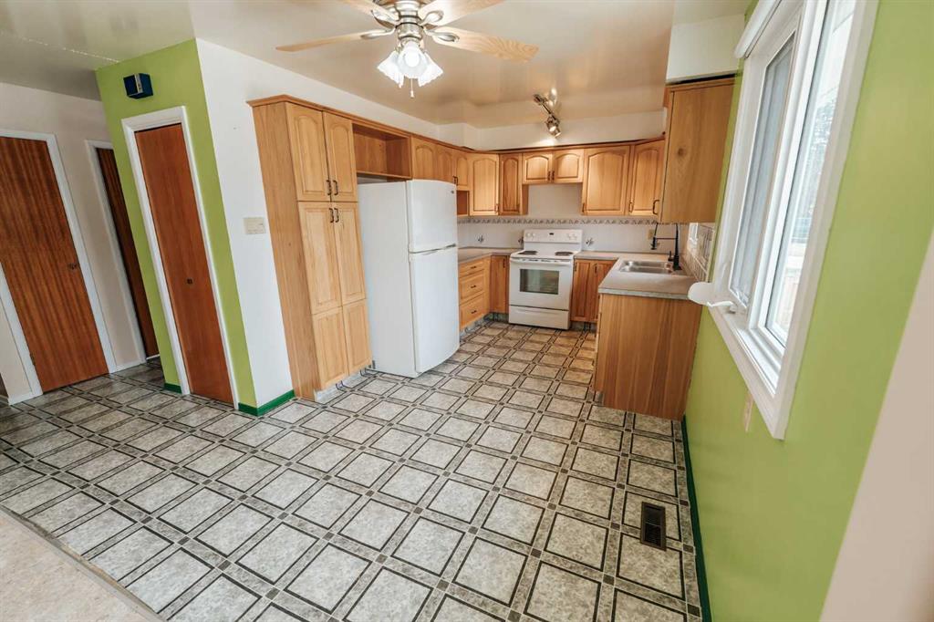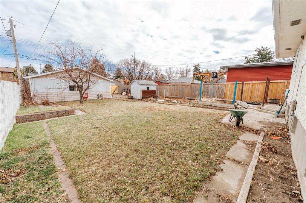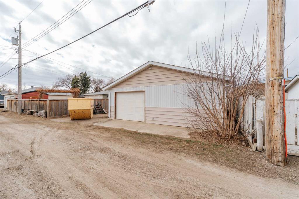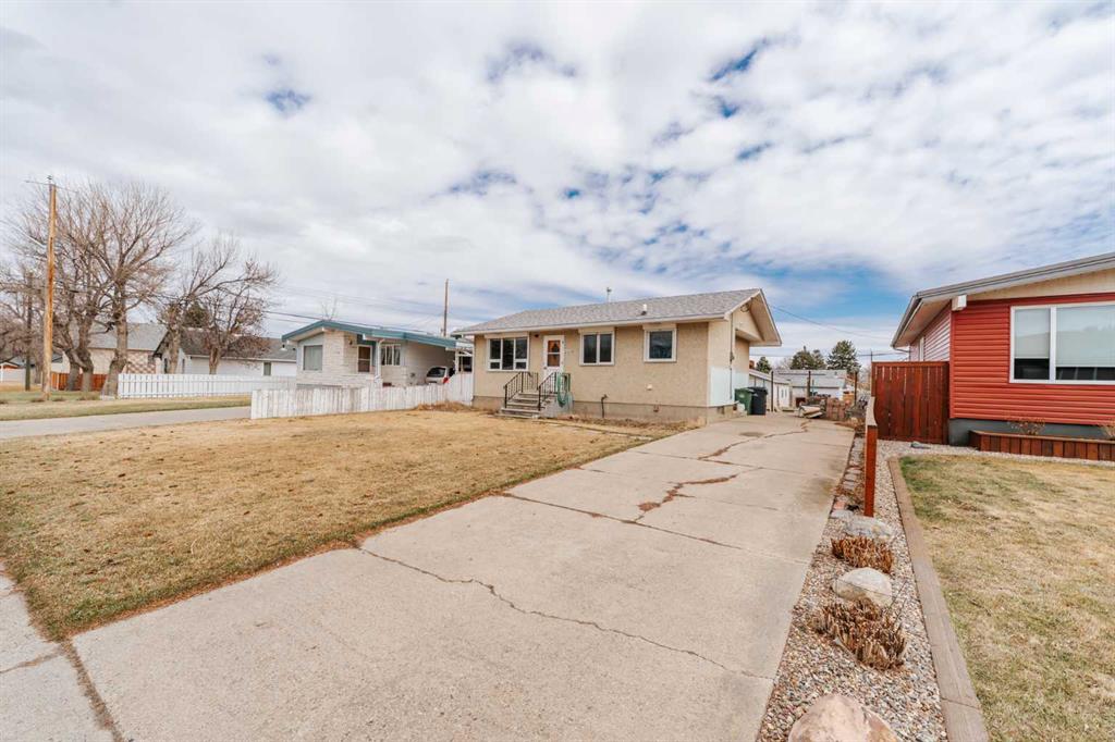 This 2 + 2 bedroom bungalow sits on an impressive 7000 sq. ft. lot, with spacious back and front yard that offers plenty of room for outdoor enjoyment, parking and the double heated garage. The main level features lots of natural light and comfortable living and dining areas with roll shutters on the front and maple tree kitchen cabinet. The basement features a functional layout and adds additional living space, along with good storage options. Another stand-out feature is the large 26 x 26 double detached heated garage, equipped with a high - quality heater ideal for projects or extra storage. The house has a concrete side driveway and additional parking space off the alley. Conveniently located close to community facilities, schools and across from Coaldale Mennonite Brethren Church. Shingles were replaced approximately 5 or 6 years ago. Installed underground sprinklers approximately 3 years ago and an apple tree. There is a single vehicle door at the back but we believe it is framed for a possible wider door. We believe hot water tank was replaced in 2022.
