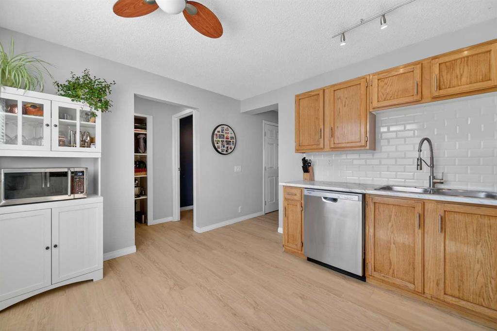 ***OPEN HOUSE, SATURDAY, APRIL 4th, 2pm-4pm***The curb appeal of this well maintained, low maintenance home draws you in with a welcoming front patio. Step inside to a bright and spacious main level, where large windows fill the home with natural light and new LVP flooring runs throughout the main level. The kitchen is both functional and inviting, featuring new countertops and backsplash, stainless steel appliances, and space for a breakfast nook, while a separate dining area makes it easy to host family and friends. Upstairs, you will find a versatile layout with a generous primary bedroom complete with a new triple glazed window and blackout blinds, creating a quiet and comfortable retreat. Two additional bedrooms offer flexibility for family, guests, or a home office. The bathrooms have been tastefully updated, adding to the home’s move-in ready appeal. The basement adds even more living space, with a wood slat ceiling that brings warmth and character. This area is ideal for a rec room, gym, or media space, along with laundry and additional storage. Outside, the backyard is designed for easy living and enjoyment, with a stone patio that creates the perfect setting for relaxing or entertaining. The south-facing yard brings in plenty of sunshine, while the pet-friendly astroturf run offers a great space for dogs. This property stands out with exceptional parking and storage options, including an oversized single detached garage with workspace, along with front and rear parking pads that provide up to four off-street parking spots. Located in a quiet, established neighbourhood, this home offers incredible access to outdoor living, just a few steps to Fish Creek Park and a nearby off-leash dog park. Everyday amenities, including groceries, dining, and services, are all within a quick drive or an easy walk. With recent upgrades including a new furnace (2025), improved insulation (2023), updated flooring, newer roof on home and garage (2021), and thoughtful interior updates throughout, this is a home that has been carefully maintained and is ready to be enjoyed from day one.
