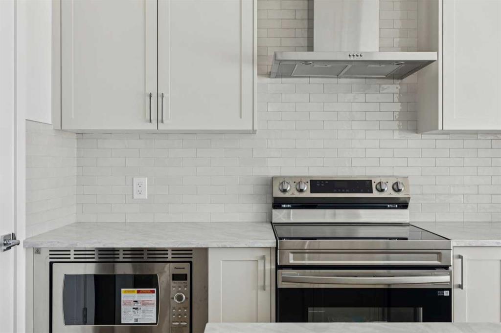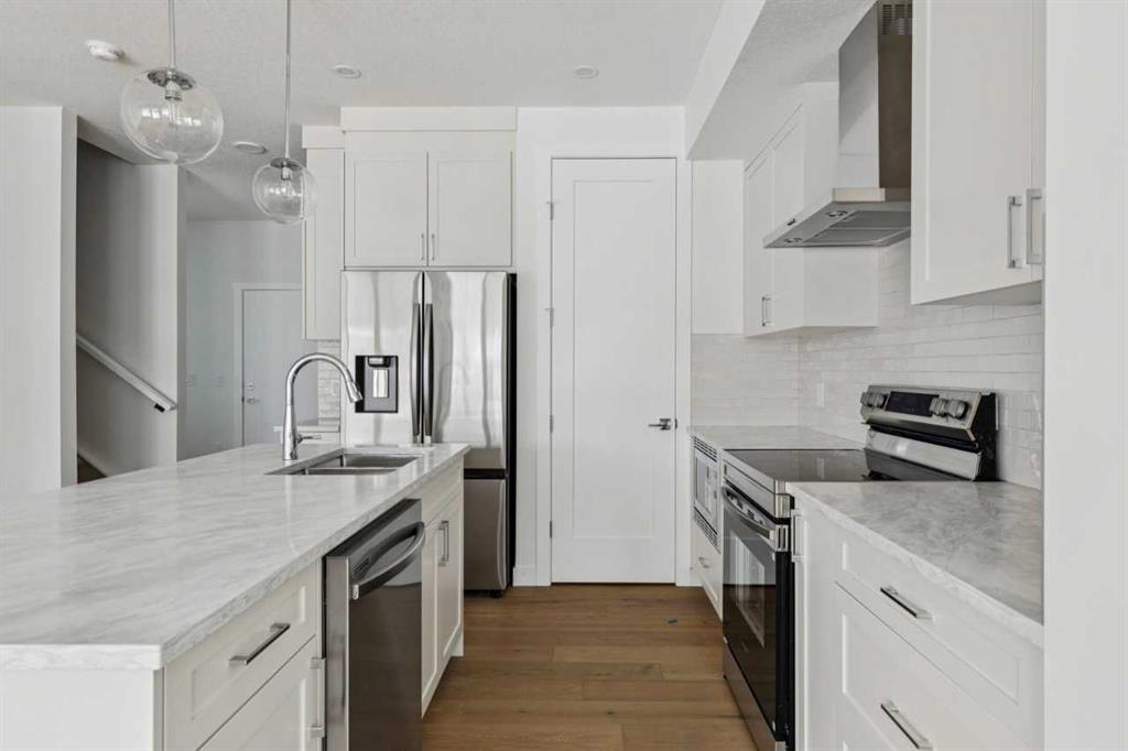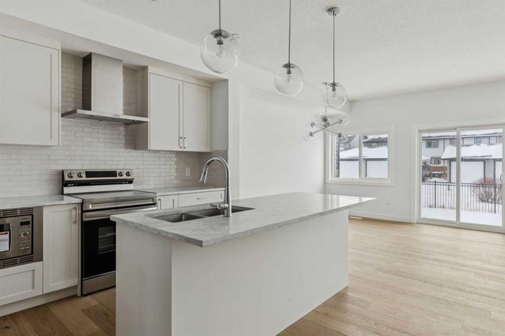 This home features over 1700 square feet of thoughtfully designed living space, featuring an open-concept main floor with LVP flooring throughout and a designer kitchen complete with quartz countertops, subgrant double bowl sink, ceiling height cabinets. The spacious living room includes large, expansive windows. Bathrooms feature quartz counters, upgraded tile flooring, and Delta Plumbing Fixtures. Ensuite includes double sinks, a large walk-in shower, and a separate water closet. Choose from three professionally curated designer palettes. Renderings and images are conceptual and intended for illustrative purposes only. Final construction, finishes, materials, and specifications may vary and are subject to change without notice (Photos representative). Refer to Palette Image for Unit Finishing Details.