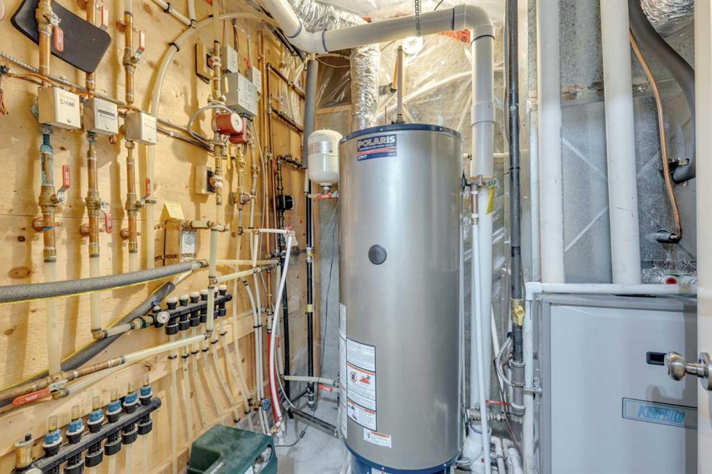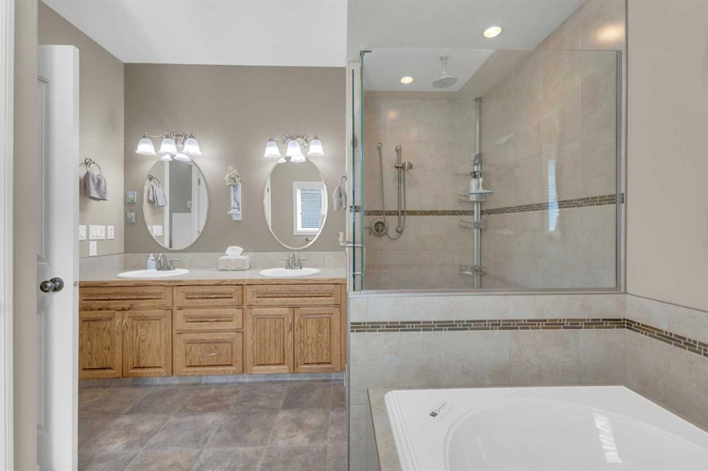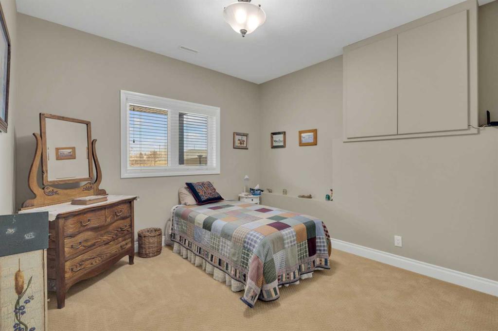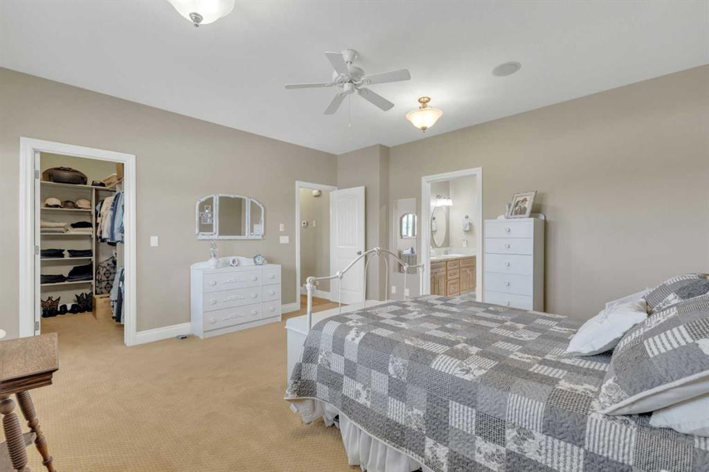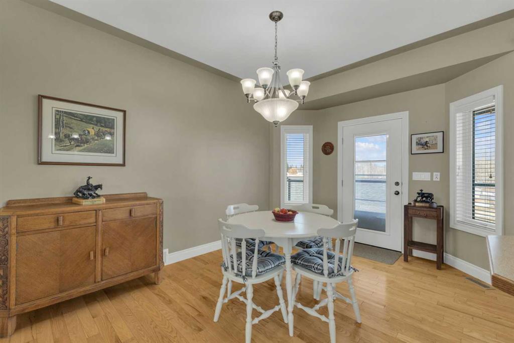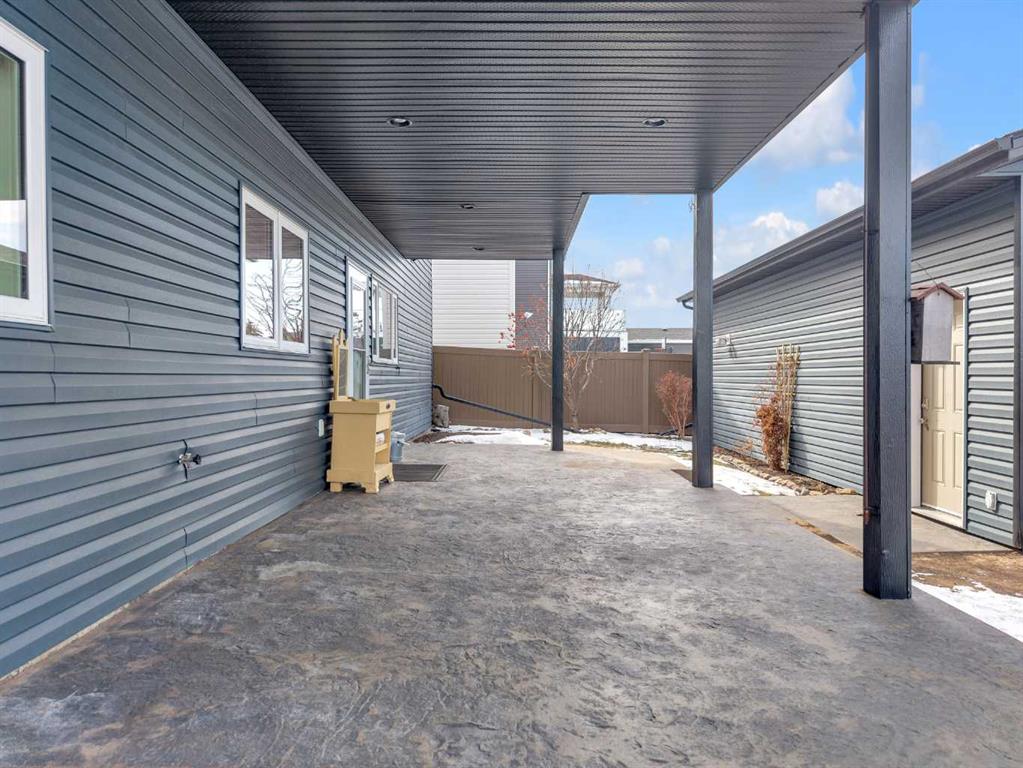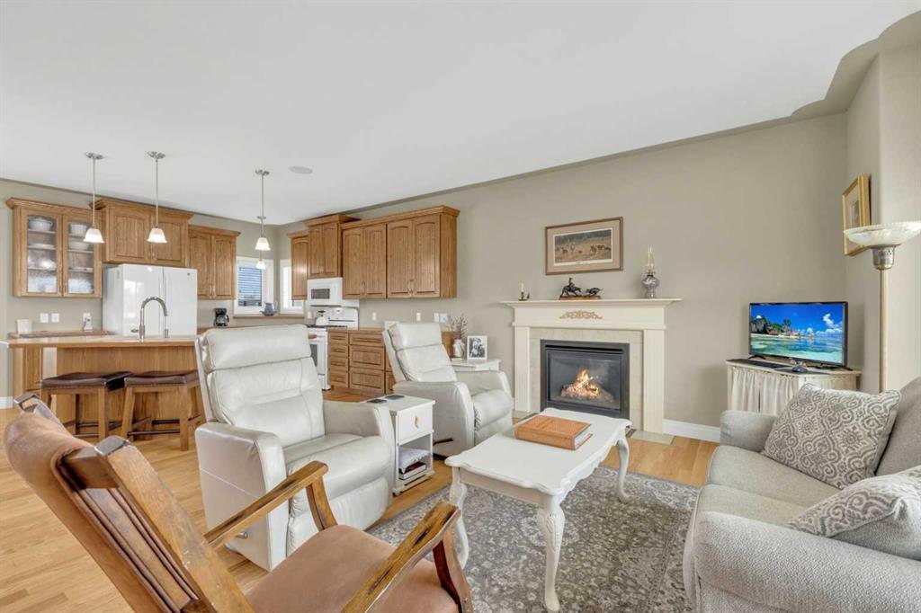 Custom-built executive bi-level in Delburne, just minutes from Fawn Meadows Golf Course. Built in 2010 and exceptionally well maintained, this home offers quality construction, a functional layout and a turnkey presentation with 9’ ceilings on both levels adding to the sense of space throughout. Main floor features hardwood flooring and a bright, open-concept living space with a gas fireplace adding warmth and ambiance. The kitchen includes a large island, gas range and ample cabinetry, with a spacious dining area that opens onto a private, duradek-covered 12x23 deck—partially covered and ideal for enjoying the west-facing yard and evening sun. The primary bedroom also offers direct access to the deck, along with a walk-in closet and a 5-piece ensuite with dual sinks, tiled shower and soaker tub. A den/home office and 2-piece bath complete the main level, offering flexibility for remote work or additional living space. The fully developed walkout basement includes in-floor heat, a large family/rec space with wet bar, wood-burning stove, two additional bedrooms, full bath and laundry. Thoughtful storage throughout, including multiple linen closets and extended under-stair space, adds to the home’s functionality. Walk out to a stamped concrete patio and a beautifully landscaped, vinyl-fenced yard. Heated attached garage plus a 24x30 detached shop with 220 power and in-floor heat—perfect for storage, projects or hobbies, with space to accommodate both vehicles and workspace needs. A well-cared-for property that shows beautifully.