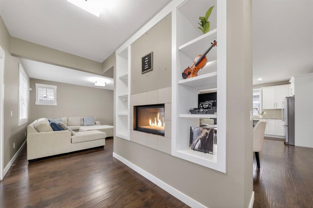 OPEN HOUSE THIS SATURDAY APRIL 4th From 12:00pm -3:00pm | Small town charm meets city convenience in this well maintained 2 storey home in the sought after community of Rainbow Falls. Offering over 2000 sq ft of above grade living space, this 3 bedroom 2.5 bathroom home is Very thoughtfully designed for both comfort and functionality. Even My photographer said so. :) The inviting south facing front porch adds to the curb appeal and is the perfect place to slow down and enjoy your morning coffee or share a little summer evening conversation with friends. Inside, you are welcomed by a warm and spacious layout featuring a double sided fireplace that connects the main living areas. What a smart placement for the Fireplace kudos to the builders and designers. The bright living room is filled with natural light, while the kitchen features white cabinetry, granite countertops, a large island, stainless steel appliances including a gas range, and a walk in pantry. A built in desk area or a very fancy junk drawer station. A generous dining space makes this home ideal for everyday living and entertaining. Upstairs offers a large bonus room, a spacious primary bedroom with a 5 piece ensuite and walk in closet, two additional bedrooms, a full bathroom, and convenient upper level laundry with sink. The basement is unfinished with rough ins in place, ready for future development. Enjoy the private fenced backyard and back deck with a Gazebo. Perfect for summer evenings. A 23 x 23 detached garage with paved alley access. Central air conditioning adds year round comfort. Located within walking distance to schools, parks, pathways, Chestermere Lake, and local amenities, this home offers an ideal lifestyle in a fantastic community. Note:Bar stools ,dining table, workout equipment, outdoor patio furniture and a big screen tv in the living room are not included but may be negotiable if Buyer wants.