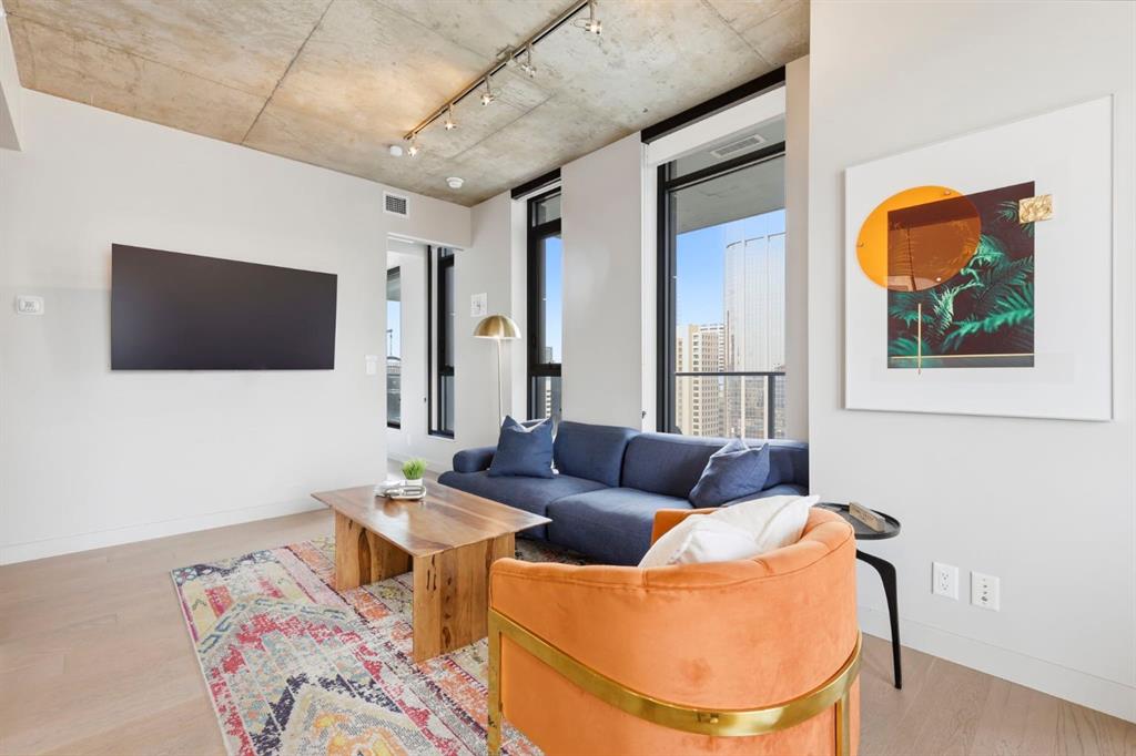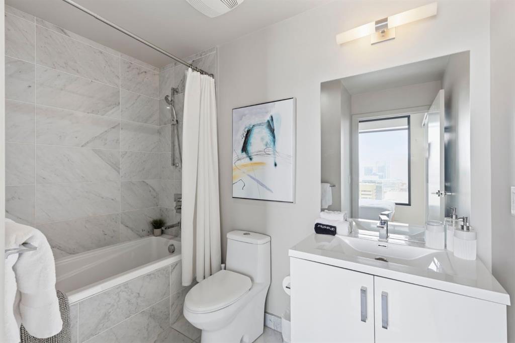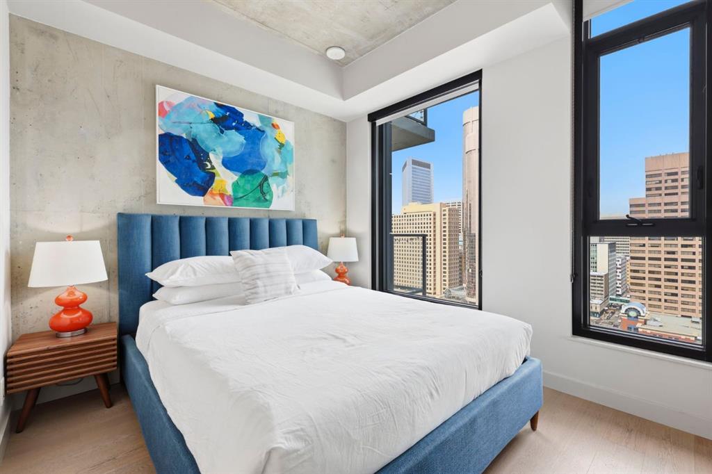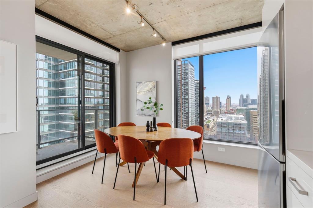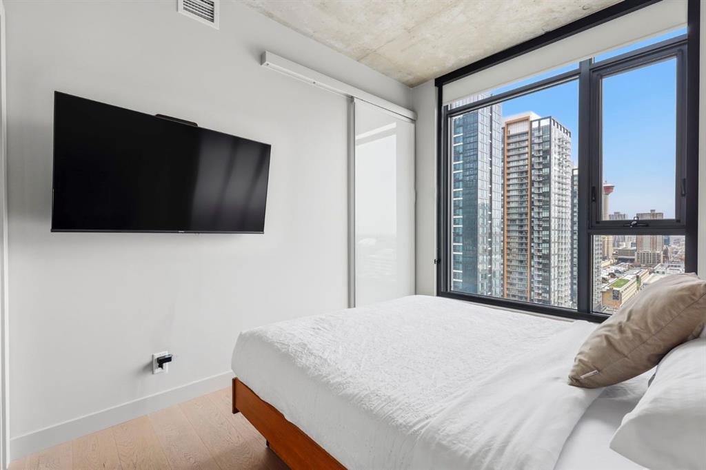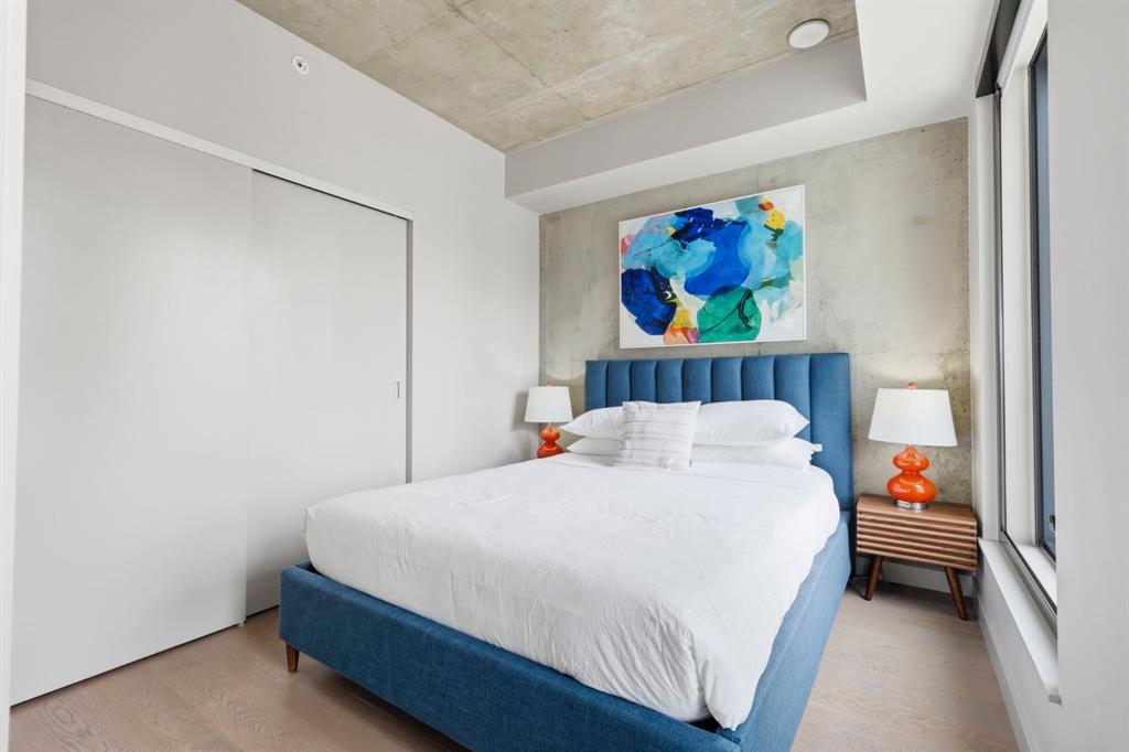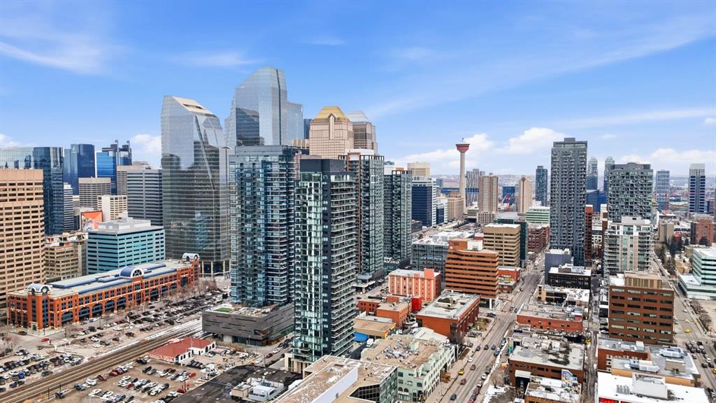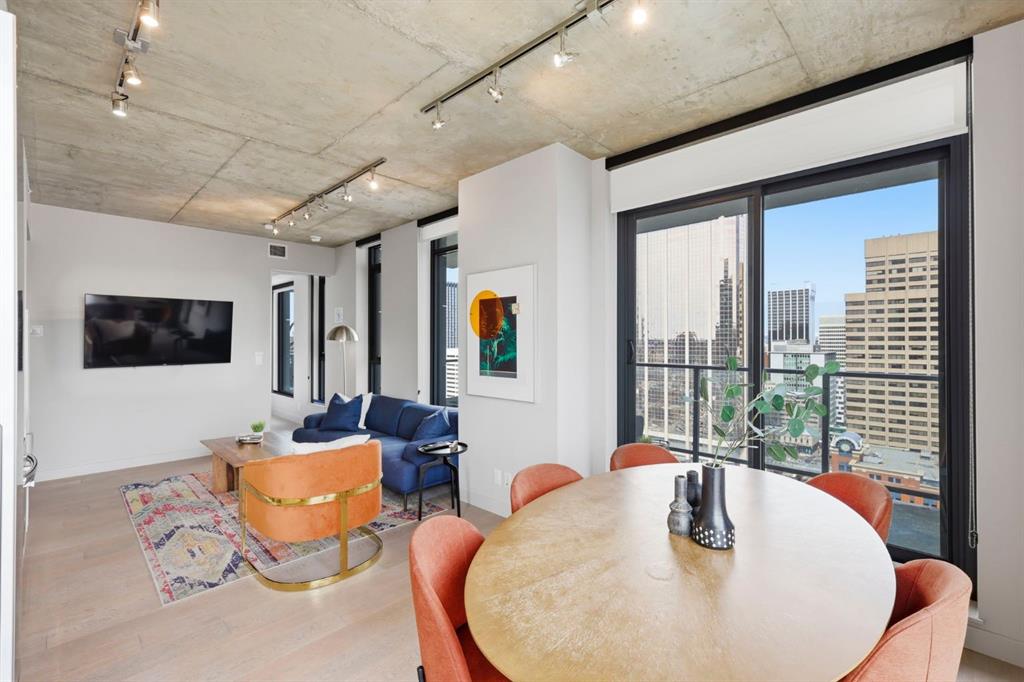 Welcome to 6th and Tenth, where stylish design, elevated living, and exceptional investment potential come together in one of Calgary’s most vibrant locations. Perched on the 19th floor, this striking end unit offers breathtaking panoramic views, enhanced privacy, and an abundance of natural light through dramatic floor-to-ceiling windows. Inside, the space is a true showpiece, featuring a sleek, modern interior with exposed concrete ceilings and feature walls, vinyl plank flooring, and tall ceilings, all creating a sophisticated, loft-inspired feel. The open-concept layout is both functional and beautiful, anchored by a designer kitchen with stone countertops, stainless steel appliances, and a gas cooktop, seamlessly flowing into the living and dining areas. Step out onto the expansive private deck and take in the incredible city skyline and mountain views - the perfect backdrop for morning coffee or evening cocktails. Urban living at its most impressive! Offered FULLY FURNISHED, this is a rare turnkey Airbnb opportunity - ready to generate income from day one or serve as your own luxurious city retreat. Additional features include in-suite laundry, central air conditioning, titled underground parking and titled storage unit. Residents of 6th and Tenth enjoy an exceptional lifestyle with access to premium amenities including a fitness centre, outdoor pool and sky lounge, concierge service, and a beautifully designed social room for entertaining. The building also offers the added convenience of garbage chutes on every floor. Located steps from Calgary’s best restaurants, cafés, shopping, transit, and the Stampede grounds, this is sophisticated inner-city living with unmatched energy, style, and flexibility. Don't miss out on this amazing opportunity! Click on the 3D tour icon for a virtual tour.