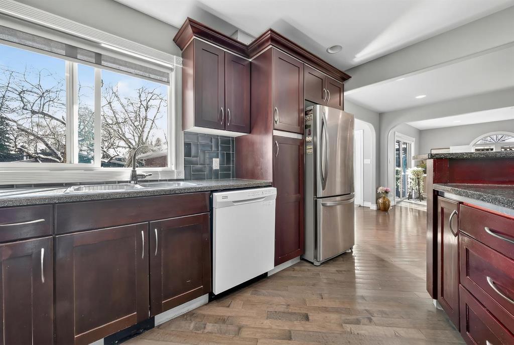 Welcome to an exceptional opportunity in the sought-after community of Chinook Park, where space, flexibility, and location come together to create a home that truly adapts to your lifestyle. This thoughtfully designed 4-level split offers over 1,700 sq ft above grade with multiple additional developed levels, making it ideal for larger families, multi-generational living, or anyone needing room to grow and live comfortably. From the moment you enter, the home opens into a bright, open-concept main level with hardwood floors, anchored by an expansive living room that offers both scale and warmth. The sun-filled dining area connects seamlessly to the south-facing deck, creating an effortless indoor-outdoor flow perfect for family gatherings, summer BBQs, or simply enjoying the backyard setting. The kitchen is functional and well laid out with ample workspace and storage, while the main floor office provides a dedicated area for working from home or managing a busy household. Upstairs, the home offers two generously sized bedrooms, each with its own private ensuite, along with a convenient guest powder room—delivering both privacy and practicality. The lower level continues this theme with two additional bedrooms, each also featuring their own ensuite bathrooms, a rare and highly desirable setup that works perfectly for extended family, older children, or guests who value their own space. The fully developed basement adds even more versatility with a large rec room, additional den, and extensive storage, utility, and laundry space, giving you the flexibility to create a media room, play area, fitness space, or additional living quarters. Outside, the south-facing backyard is surrounded by mature trees, offering both privacy and a peaceful setting to enjoy throughout the seasons. A double detached garage adds convenience and functionality, while the established community of Chinook Park places you close to schools, shopping, and major routes—making everyday life seamless. If you’ve been searching for a home that offers space, separation, and flexibility without compromise, this is a rare find that supports how families live today and grow into tomorrow. Book your private showing today and experience the potential of this incredible home.
