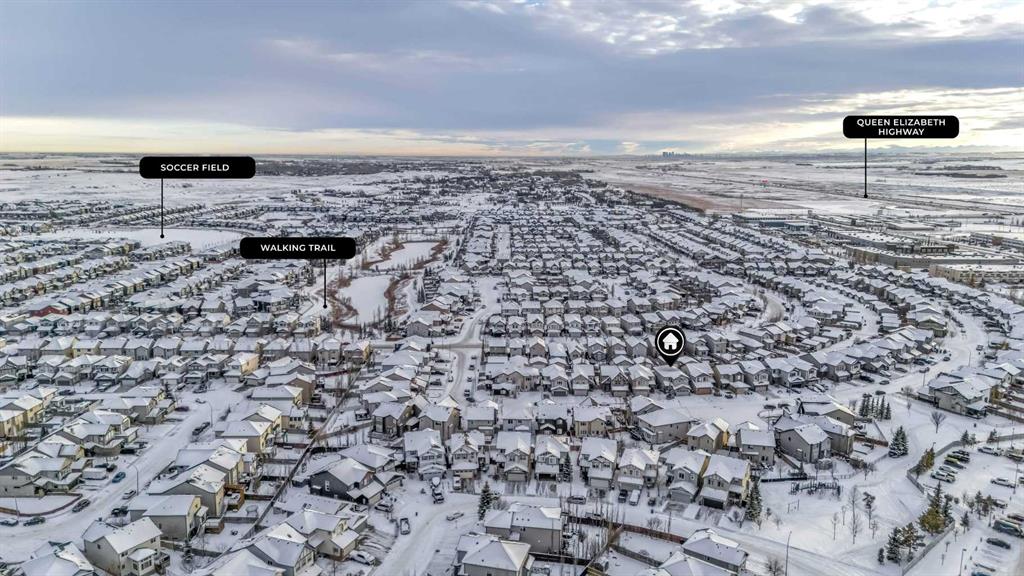 STUNNING FAMILY HOME IN A QUIET CUL-DE-SAC WITH OVER 2300 SQ FT + FULLY DEVELOPED BASEMENT! Welcome to this beautifully upgraded 2337 SQ FT HOME WITH A FULLY DEVELOPED BASEMENT, perfectly located in a SAFE AND PRIVATE CUL-DE-SAC, ideal for families seeking space, comfort, and functionality. The main floor features a bright and open layout with LARGE WINDOWS FOR AMPLE NATURAL SUNLIGHT, a DEDICATED OFFICE, and a spacious living area. The stunning KITCHEN WITH STAINLESS STEEL APPLIANCES, UPGRADED CABINETRY, and an OVERSIZED KITCHEN ISLAND WITH EXTRA STORAGE UNDERNEATH is perfect for both everyday living and entertaining. The WALK-THROUGH PANTRY adds convenience for easy grocery stocking. A 2-PIECE POWDER ROOM and a thoughtfully designed MUDROOM WITH BUILT-IN BENCH AND HOOKS complete the main level. Upstairs offers 4 SPACIOUS BEDROOMS PLUS A BONUS ROOM WITH VAULTED CEILINGS, providing plenty of room for the entire family. The PRIMARY BEDROOM FEATURES A 5-PIECE ENSUITE WITH DUAL VANITY, while a 4-PIECE MAIN BATHROOM serves the additional bedrooms. Enjoy premium upgrades including BUILT-IN SPEAKERS ON ALL LEVELS (BASEMENT, MAIN & UPPER FLOORS), as well as OUTDOOR SPEAKERS ON THE DECK, creating the perfect setting for entertaining indoors and out. The home also features LUXURY VINYL PLANK (LVP) FLOORING THROUGHOUT, offering durability and waterproof convenience. The FULLY DEVELOPED BASEMENT includes an additional BEDROOM, a WET BAR, FULL BATHROOM, and BUILT-IN SHELVING, making it ideal for guests, extended family, or entertaining. Step outside to your private backyard with a DECK, GAZEBO, AND RV PARKING WITH BACK ALLEY ACCESS—a rare and valuable combination. The home also includes a FRONT ATTACHED DOUBLE CAR GARAGE WITH ADDITIONAL STORAGE SHELVING. Located directly across from a KIDS’ PARK, and just steps away from a BEAUTIFUL WALKING TRAIL WITH TWO LARGE PONDS RIGHT BEHIND THE HOME, this property offers the perfect balance of nature and convenience. Enjoy WALKING DISTANCE TO KINGSVIEW MARKET for all your daily needs. LOCATION IS EVERYTHING. Enjoy an effortless commute with quick connections to QEII, putting Calgary just minutes away and CrossIron Mills even closer. Whether you're exploring nearby walking paths or accessing public transit, everything you need is right at your doorstep. This home truly offers the perfect blend of SPACE, UPGRADES, LIFESTYLE, AND LOCATION. DON’T MISS THIS INCREDIBLE OPPORTUNITY!