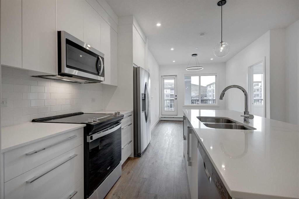 Move-in ready corner unit on the third floor featuring 3 bedrooms, 2 full bathrooms, 2 titled parking stalls, and exceptional building amenities. Ideally located in a private corner of the building with no neighbours on either side, this beautifully designed home offers both comfort and privacy. Soaring 9’ ceilings, oversized windows, and modern finishes create a bright, open space filled with natural light. The contemporary kitchen showcases ceiling-height, soft-close cabinetry, quartz countertops, a large island with ample seating, and a full stainless steel appliance package (including a fridge with ice and water). A versatile nook adjacent to the island with additional cabinetry adds extra functionality—perfect for a dining area, home office, or creative space. The inviting living room is ideal for relaxing or entertaining and opens onto an impressive 30-foot west-facing balcony, complete with soffit lighting and a gas hookup for your BBQ—perfect for enjoying outdoor living, imagine morning coffee in the sunshine and relaxing sunsets in the evening. The thoughtfully designed layout separates the primary bedroom from the secondary bedrooms. The spacious primary suite easily accommodates a king-sized bed, features a walk-through closet, and is complemented by a stylish 3-piece ensuite with quartz countertops, undermount sink and an oversized shower. On the opposite side of the unit, you’ll find two generously sized bedrooms with large windows and ample closet space, along with a modern 4-piece bathroom featuring a deep soaker tub, quartz countertop, and undermount sink. Additional highlights include a large coat closet and a convenient in-suite laundry room with stacked washer/dryer tucked off the foyer. This unit also has the added rare bonus of TWO titled parking stalls, one underground, and one right outside the front entrance. Residents enjoy access to fantastic amenities, including a fitness centre (located in the 3000 building), pet wash station (yes - Harlow is a pet-friendly community!), bike storage, and a beautifully appointed lounge/party room. Unbeatable location with everyday conveniences just across the street—child care, dental, coffee shops, salons, and more-Fish Creek Park and the Bow River-plus quick access to major routes including Macleod Trail and Stoney Trail. Some photos have been virtually staged.