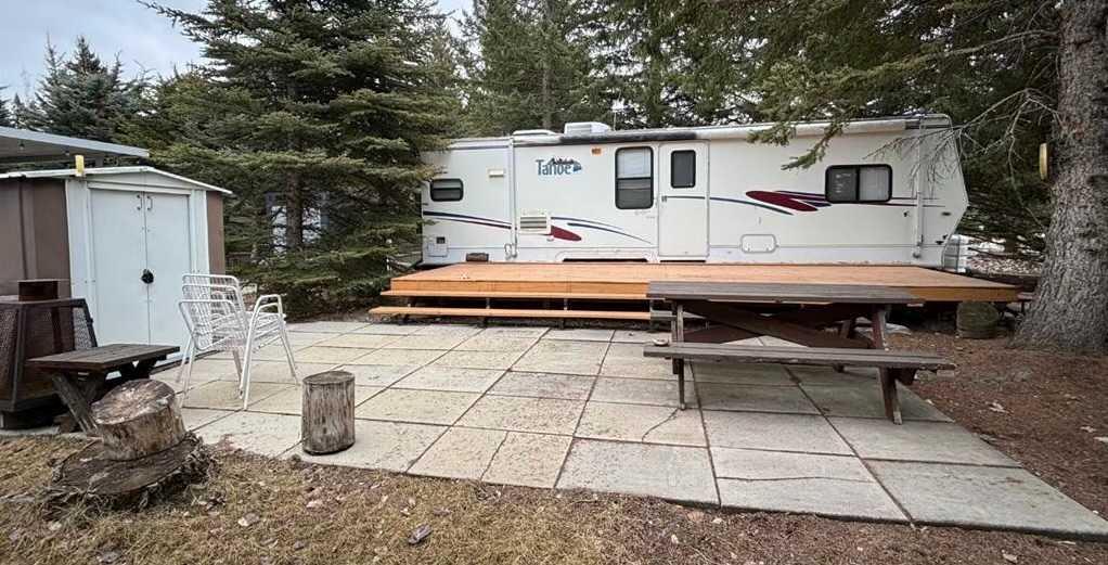 Escape to your own private retreat just minutes away from 3 golf courses in the sought-after Tall Timber Leisure Park—only one hour from Calgary. 6 TIMBER AVENUE is a titled RV lot that offers an exceptional opportunity to enjoy a relaxed, resort-style lifestyle close to home. Just bring your RV! Thoughtfully prepared and ready for enjoyment, the property features a double graveled parking pad, mature trees providing natural privacy, a 24' x 8' deck, and a beautifully arranged patio space complete with a firepit and a tin shed for additional storage. Whether you’re entertaining or unwinding, this outdoor setting is designed for comfort and ease. Ideally situated on the east side of Sundre, you’re just minutes from local amenities including shopping, dining, grocery stores, and three highly regarded golf courses, with quick access to the stunning West Country. Tall Timber Leisure Park offers an impressive collection of resort-style amenities, including an indoor pool, hot tub, community centre, two playgrounds, volleyball court, basketball and pickleball courts, horseshoe pits, ball diamond, bocce ball lanes, and disc golf. Enjoy direct access to the Red Deer River, along with convenient on-site laundry, shower facilities, and boat/ATV storage. Seasonal living is complemented by utilities and secure, year-round swipe card access. The annual condo fee includes water, power, sewer, garbage services, and unlimited use of all amenities. A vibrant social committee hosts a variety of curated summer events, enhancing the welcoming and community-focused atmosphere. Experience elevated leisure living at Tall Timber—where comfort, convenience, and lifestyle come together.