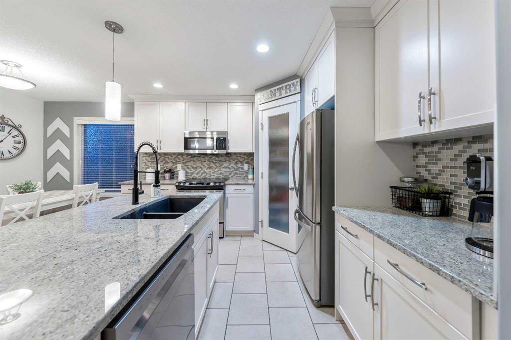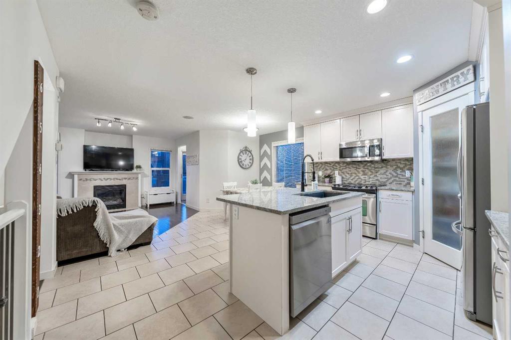 Welcome to this immaculately maintained Morrison-built two-storey home in the highly sought-after lake community of Auburn Bay. Offering approximately 1,460 sq. ft. above grade, this beautiful property immediately stands out with its exceptional pride of ownership, thoughtful updates, and impressive curb appeal. From the moment you arrive, you will appreciate the professionally landscaped yard, raised garden beds, and eye-catching stamped concrete walkway that create a warm and inviting first impression. Inside, this home was upgraded well beyond the builder’s base model, with many enhancements that continue to add style and function throughout. The main floor features a bright and welcoming layout with hardwood and tile flooring, pot lighting, stainless steel appliances, granite countertops, an upgraded kitchen sink and faucet, and extra cabinetry extended flush to the ceiling for added storage and a more refined finish. The living and dining spaces are designed for comfortable everyday living and easy entertaining, while the large raised maintenance-free deck with gas hookup extends your living space outdoors beautifully. Upstairs, you will find three bedrooms, including an extra-large primary retreat complete with a walk-in closet and private 4-piece ensuite. A second full 4-piece bathroom, upper floor laundry station, and spacious landing complete the upper level, offering excellent functionality for families. The unfinished basement is wide open and ready for your future plans, featuring an oversized window and the opportunity to add approximately 700 sq. ft. of additional living space. This home also offers several important recent updates, including a new hot water tank installed in January 2022, newer dishwasher, new microwave at the end of 2025, new washer and dryer at the end of 2025, new electronic door locks, and a new kitchen faucet installed in 2026. Located in one of Calgary’s most popular family communities, Auburn Bay offers year-round lake access, outstanding recreation amenities, nearby parks, and close proximity to both public and Catholic schools. This is a fantastic opportunity to own a truly move-in ready home in a community known for its family-friendly lifestyle and strong sense of community. Call today!