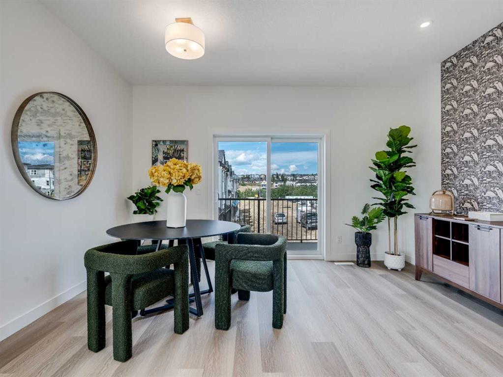 "First-time Home Buyers save 5% off the listing price" Immediate Occupancy! Discover the charm and convenience of our Juniper Townhomes — a collection of stylish heritage-style row townhouses near the heart of our beautiful Environment Reserve Park! This Heritage model B (Corner unit) offers the perfect blend of comfort and function, ideal for families and professionals alike. With 3 bedrooms, 2.5 bathrooms, and a versatile main-floor den, this spacious home is designed for modern living. Upon entry, you'll find a bright, ground-floor den/home office featuring a large window, closet, and a convenient powder room. Enjoy a professionally landscaped front yard, a single attached garage, and additional driveway parking. The open-concept main floor boasts 9' ceilings and is filled with natural light, creating a warm and inviting space for everyday living or entertaining. The modern kitchen features quartz countertops, a breakfast bar, professional stainless steel appliances, and a chimney-style hood fan. Sliding doors open to a full-sized balcony — ideal for relaxing or dining outdoors. Upstairs, you'll find two spacious bedrooms, including a primary suite with a double access closet and a private ensuite featuring a stand-up shower and sliding glass door. A second full 3-piece bathroom serves the additional bedroom, which can easily double as a home office. The upper level also includes a conveniently located washer and dryer, a linen closet, and thoughtful storage throughout. This home is located in vibrant Springbank Hill and offers easy access to Aspen Landing, Rundle College, Griffith Woods, Ambrose University, restaurants, and senior care facilities. * The GST is included in the price. * All Interior photos taken from our Show Home #2227-81St SW.
