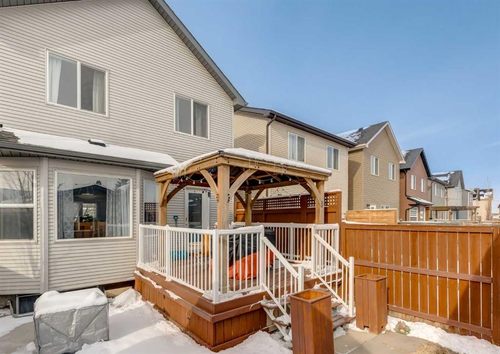 Great Value! This impeccably maintained 4 BEDROOM and 4 BATHROOM detached home is located in the sought after, family friendly LAKE COMMUNITY of AUBURN BAY. This 2 Storey residence offers everything you are looking for including a FULLY FINISHED BASEMENT, an OVERSIZED GARAGE, CENTRAL AIR CONDITIONING & LAKE ACCESS for the family! With 2,098 SQ. FT. of finished living space, the main level features an open concept layout with HARDWOOD FLOORING throughout. The kitchen is equipped with STAINLESS STEEL APPLIANCES, a center island with a BREAKFAST BAR, and a dedicated dining area. The living room is centered around a GAS FIREPLACE, and the main floor is completed by a mud room and 2 piece bathroom. The upper level contains three bedrooms. The PRIMARY BEDROOM includes a 4 PIECE ENSUITE and a walk in closet. An additional 4 piece bathroom serves the other two bedrooms. The FULLY FINISHED BASEMENT adds a great RECREATION ROOM, a fourth bedroom, and a full 4 piece bathroom. The home is also upgraded with a HOT WATER ON DEMAND boiler system. The backyard features a DECK WITH A PERGOLA and leads to an EXTRA WIDE detached double garage ($26'0" \times 20'1"$). This property is within WALKING DISTANCE to ST. GIANNA SCHOOL and AUBURN BAY SCHOOL. Residents enjoy year round LAKE ACCESS for swimming, boating, and skating. The AUBURN HOUSE facility provides incredible AMENITIES including a gymnasium, tennis courts, spray park, and picnic areas for the ultimate family lifestyle. This vibrant community is built around the 43 ACRE FRESHWATER LAKE, offering a true resort feel right at home. Close to SOUTH HEALTH CAMPUS and SETON shopping, this home offers an excellent price point and WONT LAST LONG!