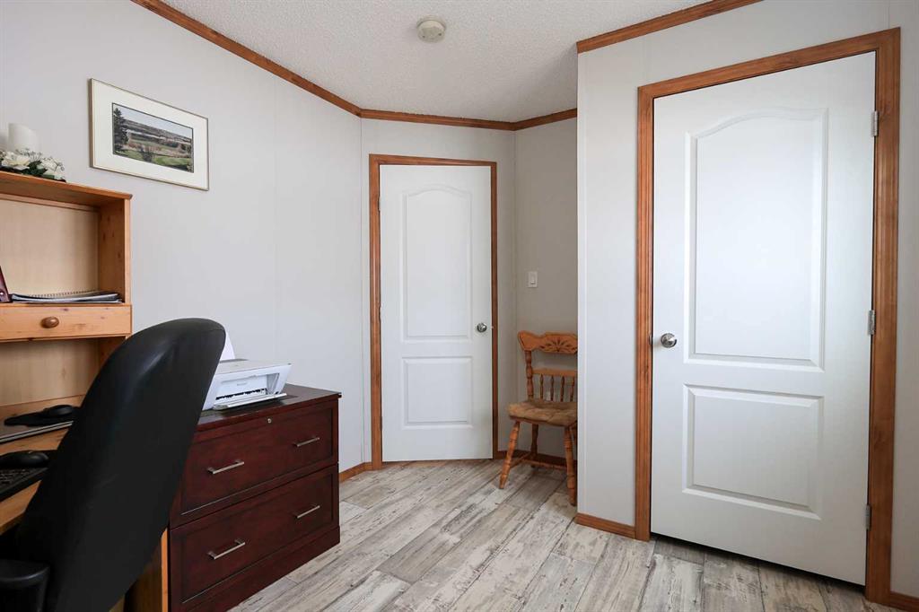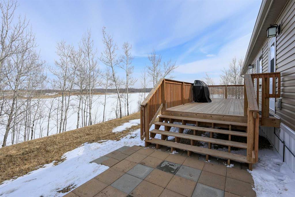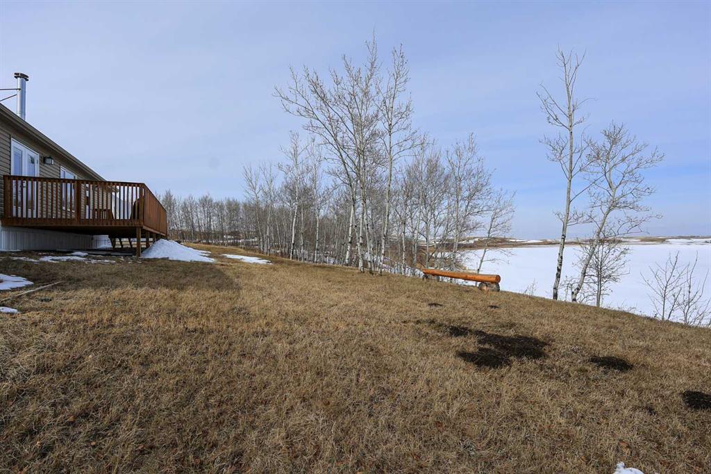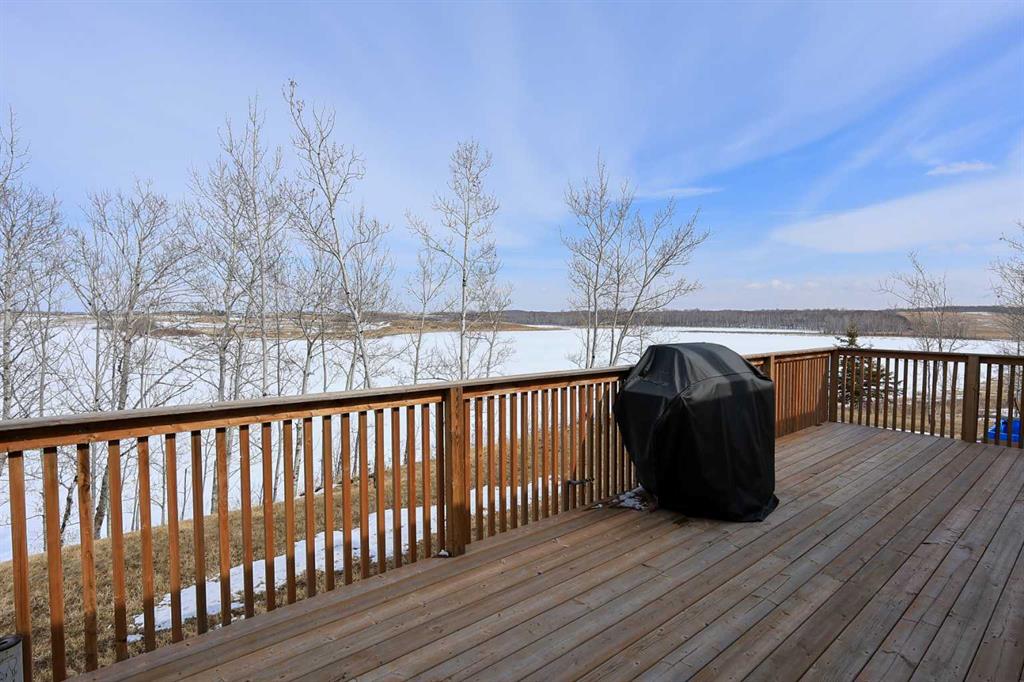 8.8 ACRES OVERLOOKING HORSESHOE LAKE ~ 3 BED, 2 BATH W/1280 SQ FT ON ONE LEVEL ~ HEATED 54' X 30' HEATED SHOP W/MEZZANINE & FULL BATHROOM ~ Beautiful lake views welcome you to this well cared for property ~ Expansive east facing deck leads to the foyer and open concept main living space with vaulted ceilings and vinyl plank flooring throughout ~ The living room has a large picture window with lake views and a cozy wood burning fireplace ~ The kitchen offers warm stained cabinets, ample counter space, island with an eating bar, and a west facing window above the sink ~ Easily host large gatherings in the dining room with garden door access to the deck ~ The primary bedroom can easily accommodate a king size bed, has a large walk in closet and a bright 4 piece ensuite ~ 2 additional bedrooms with ample size closets are conveniently located next to the 4 piece main bathroom ~ Large laundry room with space for storage has a second entrance with a west facing deck ~ 54' x 30' heated shop has a high ceilings, finished hobby room with a closet, a full 4 piece bathroom, and a mezzanine ~ Outside this peaceful property features rolling hills and mature trees, a 3 tiered garden, rose bush, rhubarb and strawberries, plus a cleared walkway and driveway to the lake ~ Located close to Alix with easy access to Red Deer ~ Pride of ownership is evident!