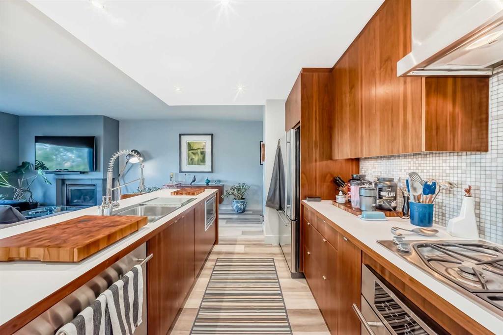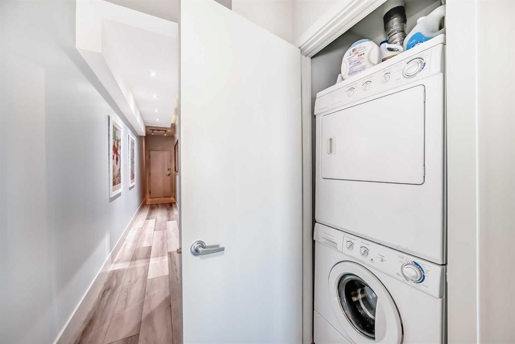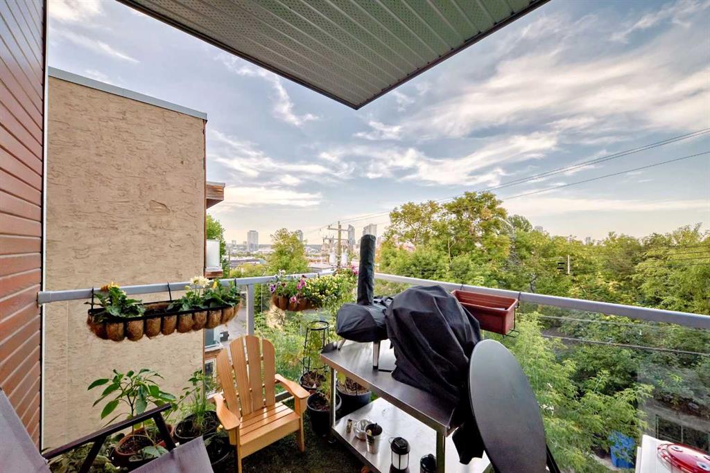 Rare corner unit in Bankview. Welcome to FLAT17, a well-managed boutique building! This second-floor corner end unit offers a functional open layout with large windows, amazing sunlight, excellent privacy, and no nearby high-rise buildings overlooking the space. Enjoy beautiful downtown views from the living room, plus seasonal fireworks right from home. The unit has been meticulously maintained with numerous recent upgrades, including new wall A/C (2025, under warranty), fresh paint throughout (2025), new garburator (2025), new deck covering (2025), new American Standard Tofino dual-flush toilets in both bathrooms (2025), new low-decibel exhaust fans (2025), updated bathroom and kitchen faucets (2025), and luxury vinyl plank flooring (2023). Additional features include stainless steel appliances, a natural gas stove with custom exhaust fan, underground heated parking, and a separate storage unit. FLAT17 offers secure access and an unbeatable inner-city location just steps to 17th Avenue shops and restaurants, schools, transit, and major routes including Crowchild Trail, Glenmore Trail, and Deerfoot Trail. A perfect opportunity for first-time buyers, students, or investors seeking comfort, convenience, and vibrant urban living.