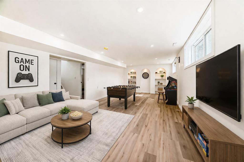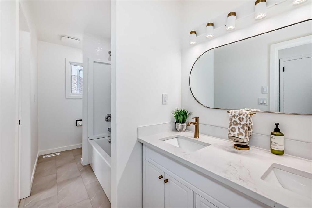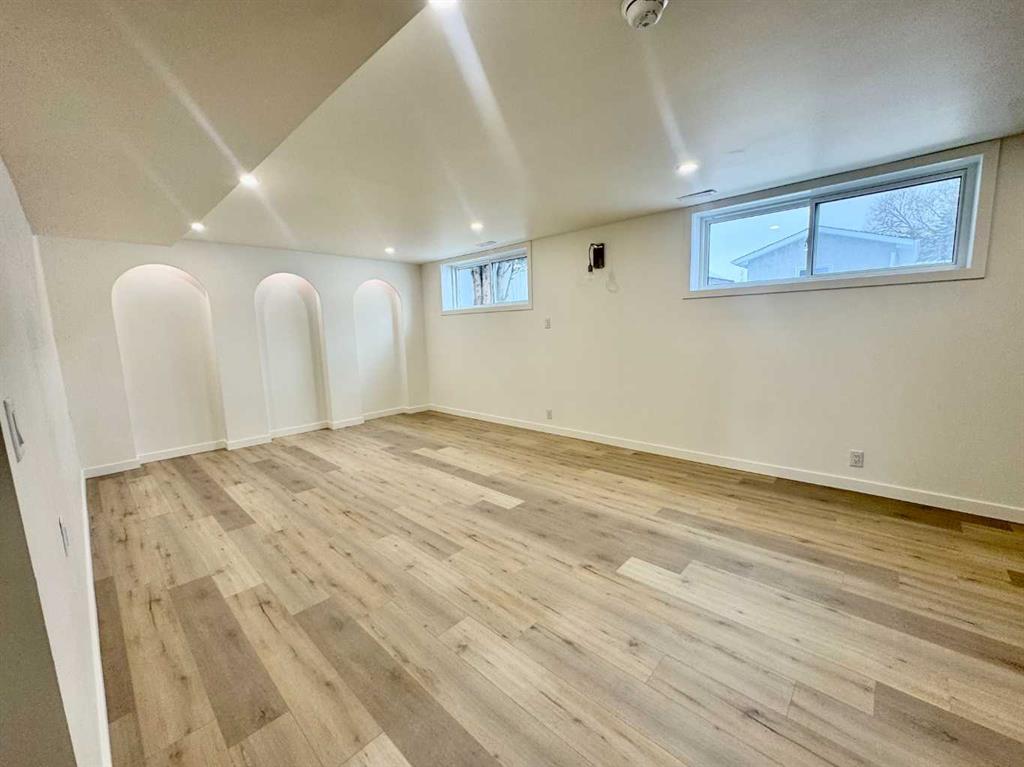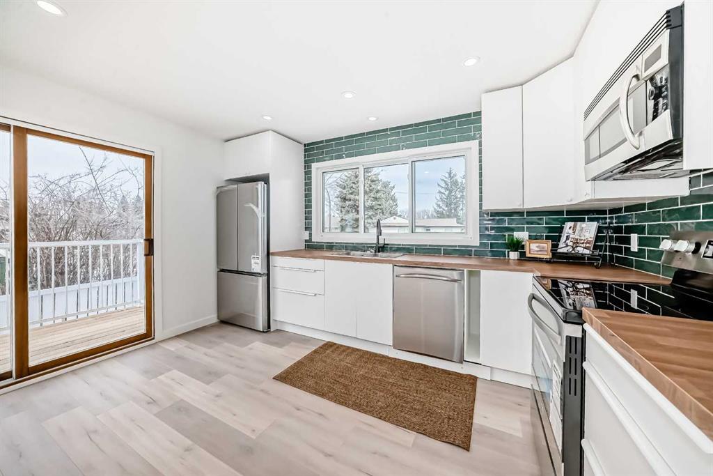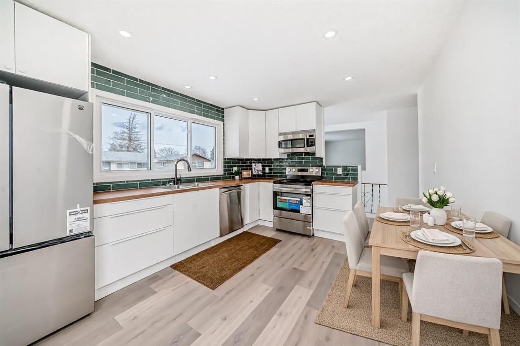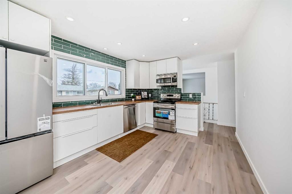 Welcome to this stunning, Extensively renovated mid-century modern home, where timeless design. Thoughtfully updated from top to bottom, this property offers exceptional quality, style, and functionality. From the moment you arrive, the curb appeal stands out with fresh exterior paint, cedar accents, a brand-new roof and shingles, and a custom front door with keyless entry. A new deck off the patio doors creates the perfect space for barbecue season while the freshly painted fence completes. Inside, the home has been fully transformed with upgraded laminate flooring throughout, including the stairs with custom nosing.. The bright, modern kitchen featuring new cabinetry with soft close hinges, full tile backsplash, stainless appliances, a vented convection microwave, and a clean, functional layout ideal for everyday living and hosting. Both bathrooms have been beautifully renovated with clean lines and warm finishes. The main bathroom showcases a double vanity with custom quartz countertops, custom tile work, and champagne bronze fixtures. The lower level bathroom continues the same quality with custom tile surround and a solid surface countertop. Comfort and efficiency have been carefully considered with a New electrical panel, New HVAC for both bathrooms, utility room and kitchen, improved attic insulation (R50). Plumbing has also been fully updated with pex throughout, offering peace of mind for years to come. Additional upgrades include a new garage door and lighting throughout. The furnace, hot water tank and windows are newer, adding even more value! This is a great opportunity to own a beautifully modernized mid century home that perfectly blends character with contemporary upgrades to simply move in and enjoy. Located close to schools, parks and easy access to the hi way or the heart of Red Deer and nestled amongst fantastic neighbours.