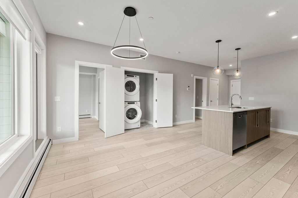 Welcome to your new condo at Skyview North! This beautiful 2-bedroom unit in the vibrant Skyview Ranch Community combines modern design with everyday convenience. The generously sized primary bedroom includes a walk-through closet leading to a private ensuite, while the second bedroom offers ample space for guests or a home office. The kitchen, designed with the home chef in mind, features stainless steel appliances and a large island with a breakfast bar - perfect for entertaining or casual meals. Additional highlights include wide plank flooring, contemporary lighting, in-suite laundry, and a private balcony off the living room, ideal for relaxing. Skyview North is perfectly located near Sky Point Landing, with easy access to shopping, parks, and playgrounds, plus, seamless commuting via Stoney and Deerfoot Trails.