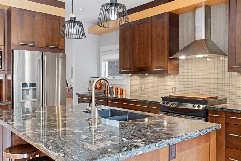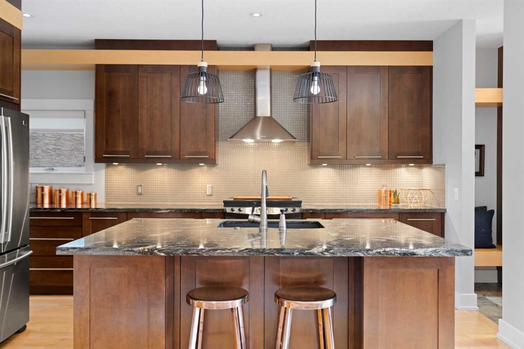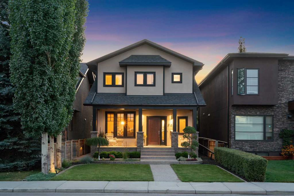 Warm, refined, and impeccably designed, this executive custom-built inner-city home sits on a rare OVERSIZED 30-FT LOT, offering a seamless blend of sophistication, comfort, and thoughtful craftsmanship throughout. A bright foyer welcomes you into a well-appointed main floor with a dedicated private office and a formal dining room, ideal for hosting and elevated entertaining. At the centre, the chef-inspired kitchen features an expansive island with integrated seating and concealed storage, GRANITE COUNTERTOPS, a gas range, full-depth fridge, built-in microwave, and a discreet APPLIANCE GARAGE. A BUTLER’S PANTRY adds additional prep space and connects effortlessly to both the dining areas. The open-concept living room is both warm and elevated, centred around a gas fireplace with custom built-ins and curated art lighting and opens onto a flat, ground-level WEST backyard—perfect for seamless indoor-outdoor living. A functional mudroom with custom cabinetry completes the main level. Upstairs, the primary suite feels like a true retreat. The VAULTED bedroom is spacious and calming, while the ENSUITE brings in natural light through a SKYLIGHT and offers a spa-like setup w/ a STEAM SHOWER, jacuzzi tub, in-floor heat, and a make-up station, plumbed for a second sink. A fully built-out walk-in closet includes custom shelving and dedicated jewellery drawers. Two additional bedrooms are bright and well-sized (one w/ a walk-in closet), paired w/ a modern main bath and convenient upper laundry w/ built-in sorting stations. The basement is fully developed and finished to the same elevated standard. Custom concrete HEATED FLOORS run throughout, paired w/ a second gas fireplace, custom cabinetry, and a full bar complete w/ sink, full-sized fridge, and convection microwave. A CLIMATE-CONTROLLED WINE ROOM adds a striking focal point, and can be kept as a showpiece or reimagined as a home gym, private office, or hobby space. There’s also a large bedroom, full bathroom, and storage, including a pantry under the stairs. Outside, the low-maintenance backyard is designed for elevated living, complete with TREX decking, pergola seating, gas lines for a BBQ & outdoor heater, ideal for effortless entertaining. IRRIGATION & ambient landscape lighting enhance the space, creating a refined setting for summer evenings. The yard is fully levelled & professionally engineered for proper drainage. Mechanically, the home is well maintained, w/ A/C, serviced furnace systems, in-floor heating zones, and a sump pump w/ battery backup. A heated garage with an epoxy floor completes the home. Set in KILLARNEY, just minutes to downtown with easy access to Bow Trail, Crowchild Trail, and the Westbrook LRT. Walk to parks, recreation, and 17th Avenue’s restaurants and cafés. Families will appreciate the close proximity to Killarney School, Holy Name School, and Ernest Manning High School. A complete inner-city package that delivers on space, finish, and everyday livability.