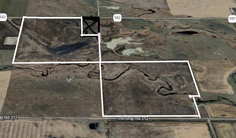 PARCEL 1 0F 2 ADJOINING QUARTERS, that must sell together with a combined acreage of 292.57 on the whole half section. A rare opportunity to increase your land holdings with a large block of arable land in the Didsbury/Linden grain belt. Parcel #1 has 136.44 acres. The partially fenced, paved access on Hwy 582 East of the Didsbury overpass. Surface lease annual income of $2825. Beautiful building sites and a portion of the Lone Pine Creek in one corner. Both parcels have had over $200,000 worth of earthworks related drainage improvements, utilizing GPS machine control technology providing for more arable land on each parcel. Seller would rent back land if buyer wishes! Whether you are looking for a multi generational opportunity, expanding your holdings or wishing to invest in Alberta's strong agricultural market, make sure to check out these two parcels. Both quarters are situated on paved roads, with easy access to and services to the property line. With a shortage of farmland available in the area, these are highly desirable and productive quarter, especially when paired together. Opportunities like this do not come along often - two adjoining full quarters, improved, accessible, and ready for their next owner. See MLS #A2298299 SW 14-31-27 W4 for the other parcel.