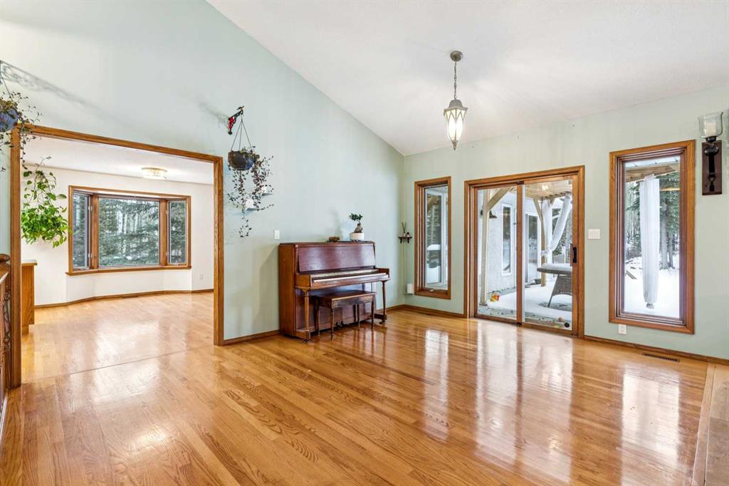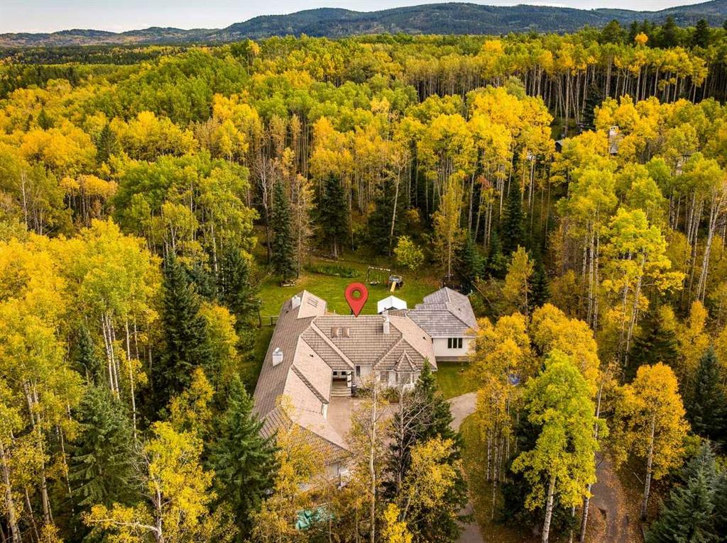 OPEN HOUSE SAT APRIL 4 2-4PM | Set on two fully treed private acres backing directly onto trail systems leading into Kananaskis. Enjoy a stroll with natural rivers, streams, and quiet forests. This extraordinary bungalow offers over 6000 square feet of solid, enduring construction allowing you the opportunity to own ample space and quality that cannot be recreated at this price point. Your gigantic main living area draws the eye upward with high vaulted ceilings. Natural oak floors throughout can be reimagined in any stain, and the entertainment area has been designed with a sunken floor to add dimension while you are warmed by the Napoleon wood burning fireplace - one of three fireplaces (2 gas) in the home. The large wood clad windows and sliding doors draw the beauty of the serene landscape in with a color palette that blends with the natural beauty surrounding the property. This solid home has been thoughtfully designed and built with extended cottage overhangs and stone exterior to keep the elements out and your warmth inside in winter, paired with beautiful bay windows to draw in natural air cooling during summer months. All oversized, recently upgraded appliances are ready for your family including chef grade dual-wall oven, fridge, dishwasher and ample laundry walk-in ready to keep the family fun tidy with ease. The home has been upgraded with 3 new, zoned, gas-fired furnaces ensuring individual comfort in the dining, family and sleeping areas. With the home's natural flow, enjoy entertaining in the many living areas combined with a brand new tucked away wooded hot spring inspired master suite with spa that could easily be doubled in size with the adjacent bedroom/den. Walk out into nature from both the east and west wings of the home from one of 3 glass patio doors giving access to the enormous 700 sq/ft deck, complete with covered gazebo and pergola. 2 oversized double garages combined for a massive ~1200 sq/ft of storage and shop space. Be a part of K-country living and check out Elbow Falls or the world class hiking, biking and skiing trails of West Bragg Creek. Your reimagined country estate awaits! Make sure to ask your Realtor to forward the floor plan, full list of FEATURES and IMPROVEMENTS, RPR and all supplemental information that can be found in supplement documents.