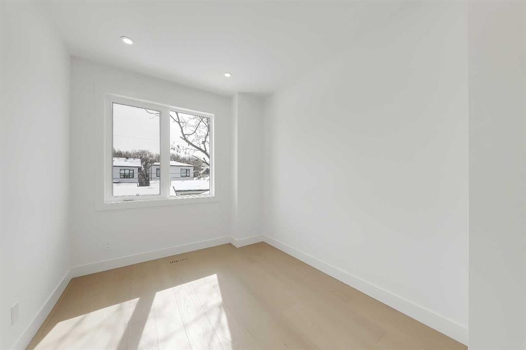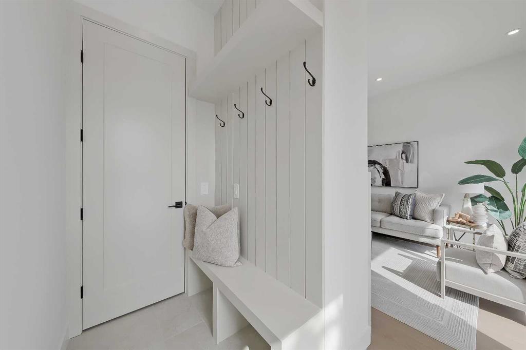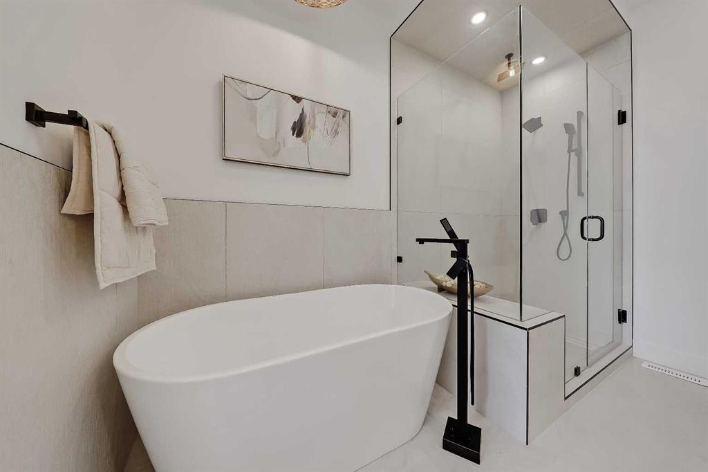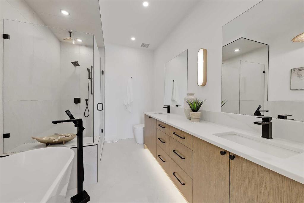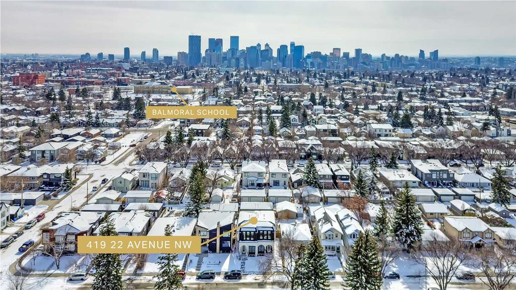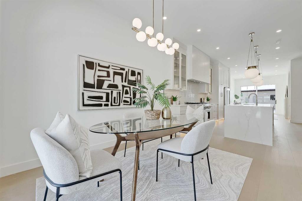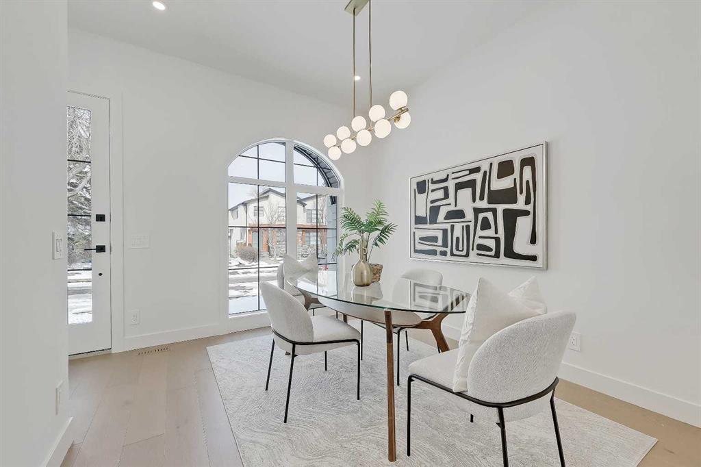 Warm, refined, and effortlessly livable, this brand-new luxury infill in Mount Pleasant, Calgary blends clean-lined contemporary design with thoughtful everyday function. Designed for modern family living, this two-storey home with a legal basement suite offers bright, open-concept living in one of Calgary’s most desirable inner-city communities. Step inside from the covered front entry to a welcoming FOYER with clean sightlines into the main living space. The sun-filled DINING AREA overlooks the front streetscape through oversized windows, creating a bright setting for everyday meals and hosting. This space flows seamlessly into a stunning open-concept CHEF’S KITCHEN, anchored by an oversized island with seating, quartz countertops, abundant lower drawers, and full-height cabinetry for a clean, modern look. The upgraded stainless steel appliance package includes a gas range, French door refrigerator, built-in microwave, and dishwasher. At the rear, the LIVING ROOM centres around a sleek gas fireplace with a designer tile surround. A custom built-in with a soft arched detail adds architectural character, complemented by integrated shelving and subtle lighting. Large rear windows bring in afternoon sun and open onto the SOUTH-facing backyard and patio, creating a natural extension of the living space, ideal for summer evenings and outdoor dining. A functional rear MUDROOM with bench and walk-in closet keeps daily routines organized, while the main-floor POWDER ROOM continues the elevated finish palette with quartz counters and designer lighting. Upstairs, the PRIMARY SUITE is a true retreat with a vaulted ceiling and a generous walk-in closet with built-in organization. The spa-inspired ENSUITE features a double vanity, freestanding tub, and glass-enclosed shower with bench and dual shower heads. Designer tile and light-toned quartz create a calm, timeless feel. Two additional BEDROOMS offer flexibility for family, guests, or a home office. They share a full bathroom finished with modern tile and large-format flooring. The upper-level LAUNDRY ROOM includes added cabinetry for convenience. The fully developed lower level features a LEGAL BASEMENT SUITE complete with a full kitchen, living area, separate laundry, and full bathroom. Ideal for rental income or multigenerational living, it maintains the same high-end finishes found throughout. Located in Mount Pleasant NW Calgary, just blocks from Confederation Park, enjoy access to walking and biking paths, playgrounds, green space, and golf. Nearby 4th Street NW and Centre Street offer local cafés, restaurants, and daily amenities, while quick access to 16th Ave and Deerfoot Trail simplifies commuting. Close to King George School, Saint Joseph, École de la Rose Sauvage, Crescent Heights High School, SAIT, and the University of Calgary, this is a well-connected, established inner-city community.